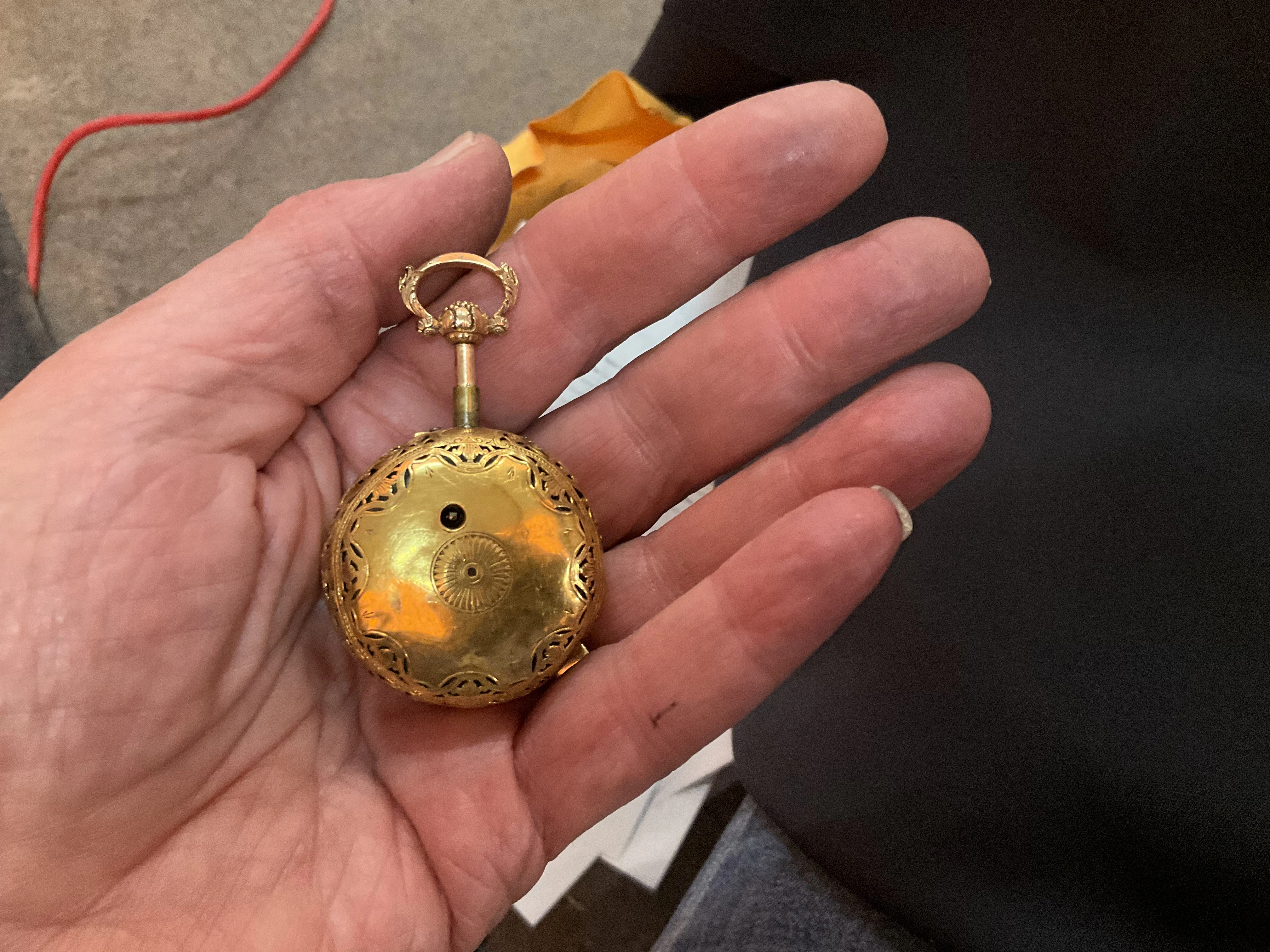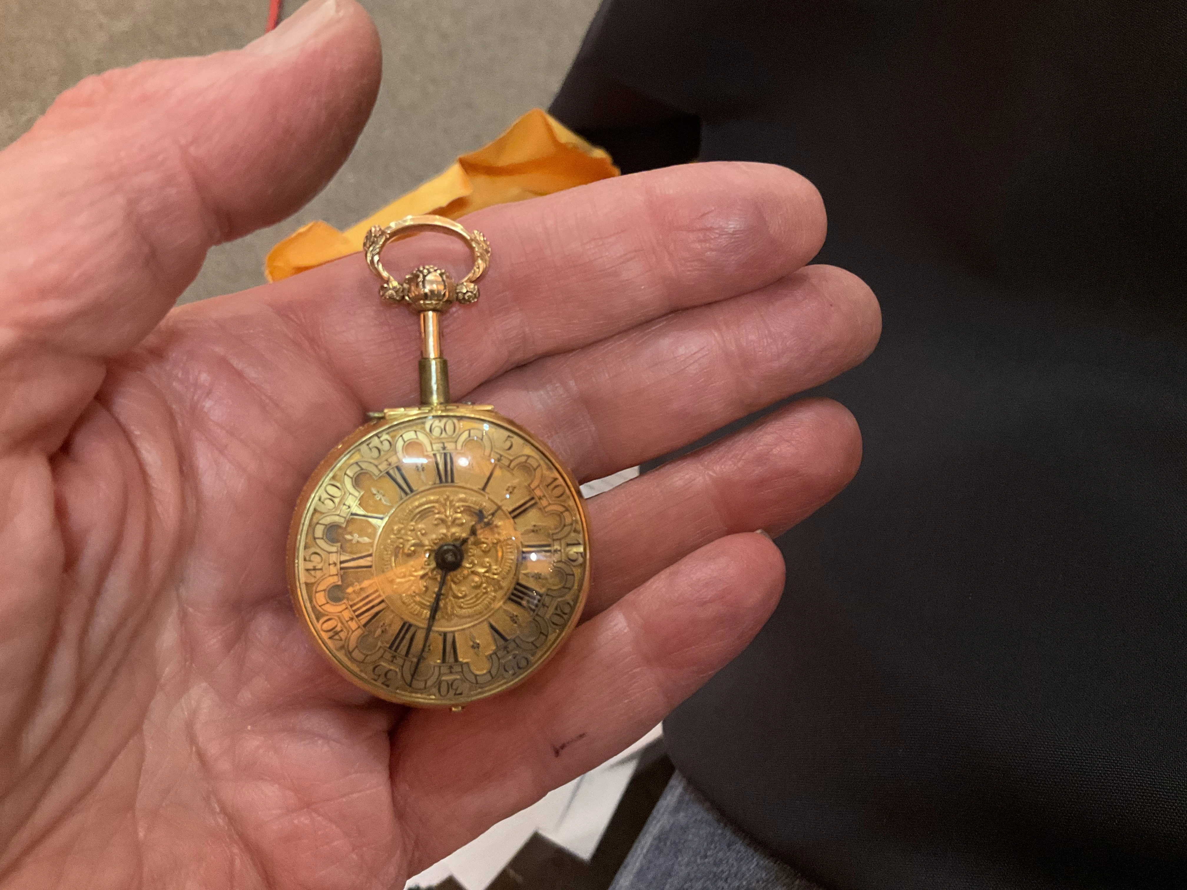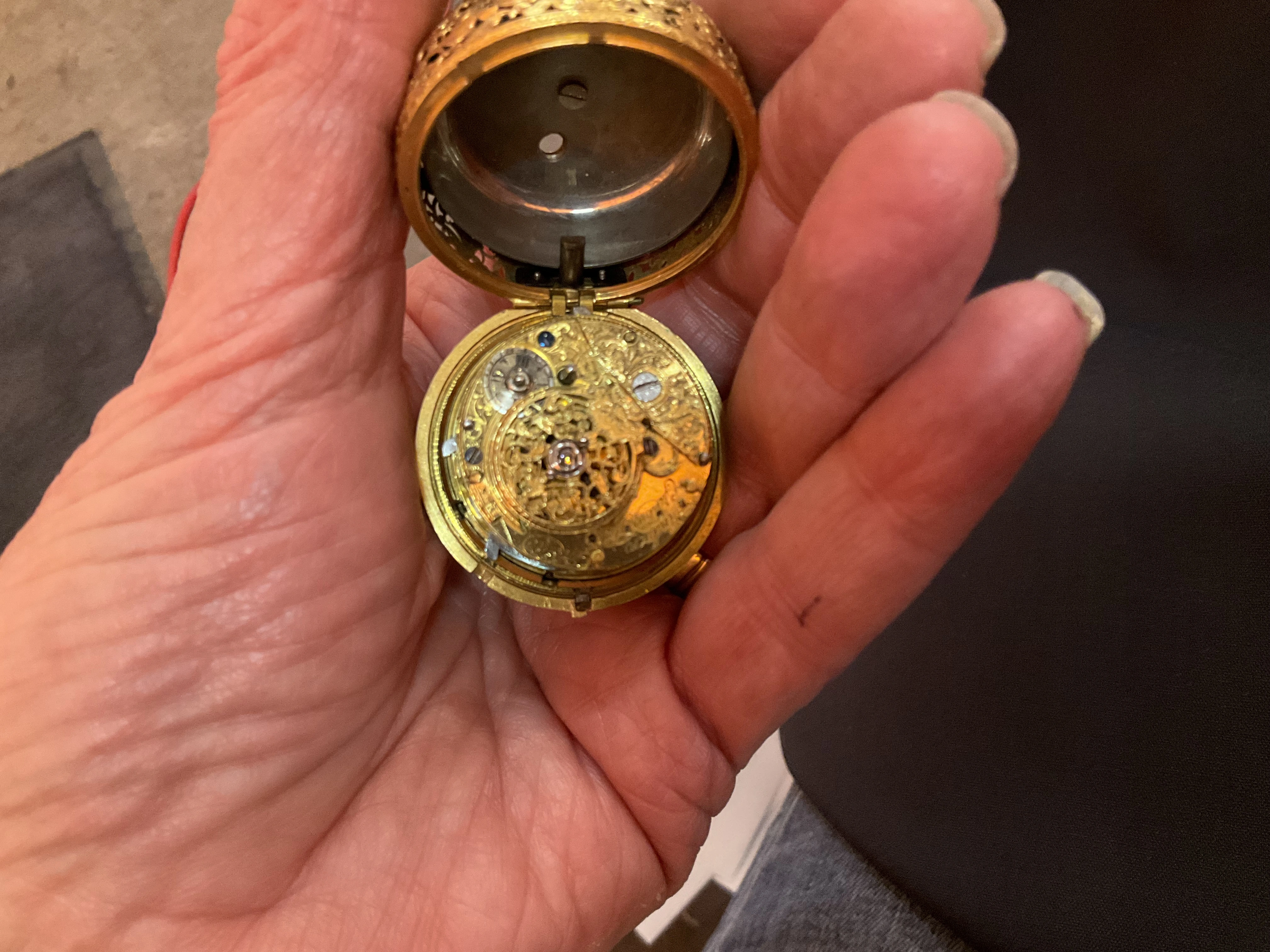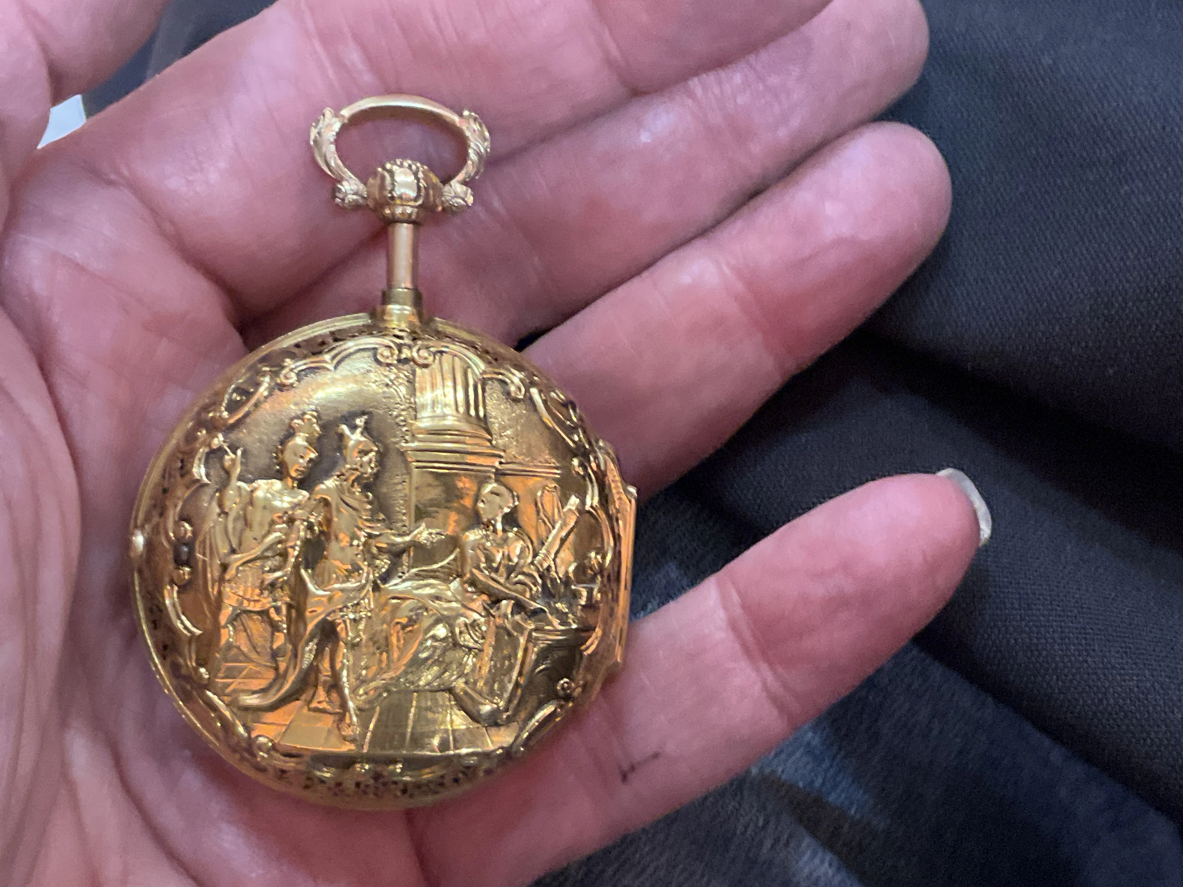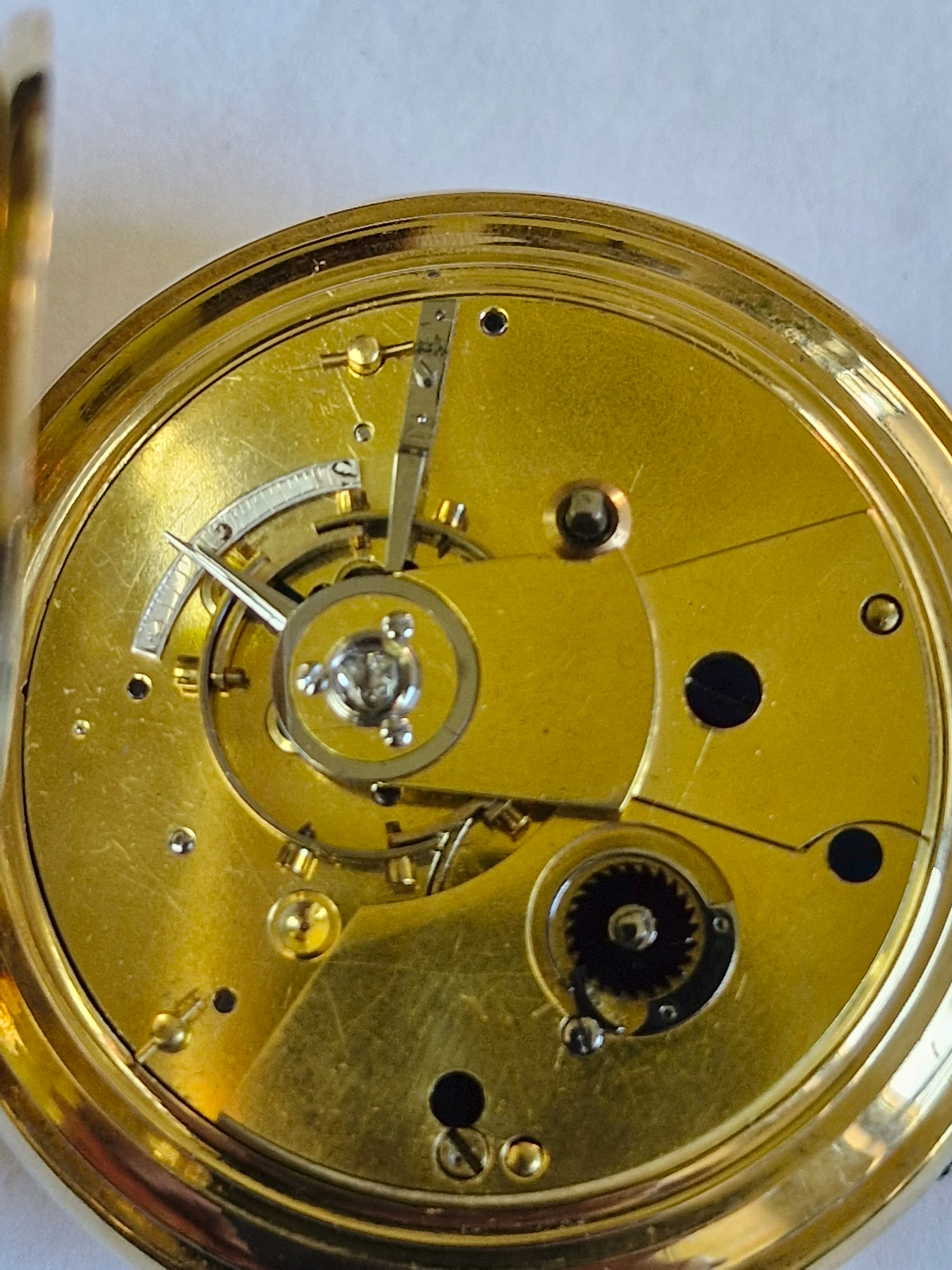 English gold watch cases of that era had to comply with the "old standard" of 22K, not 18K. The lower 18K gold standard was allowed from 1798 on.