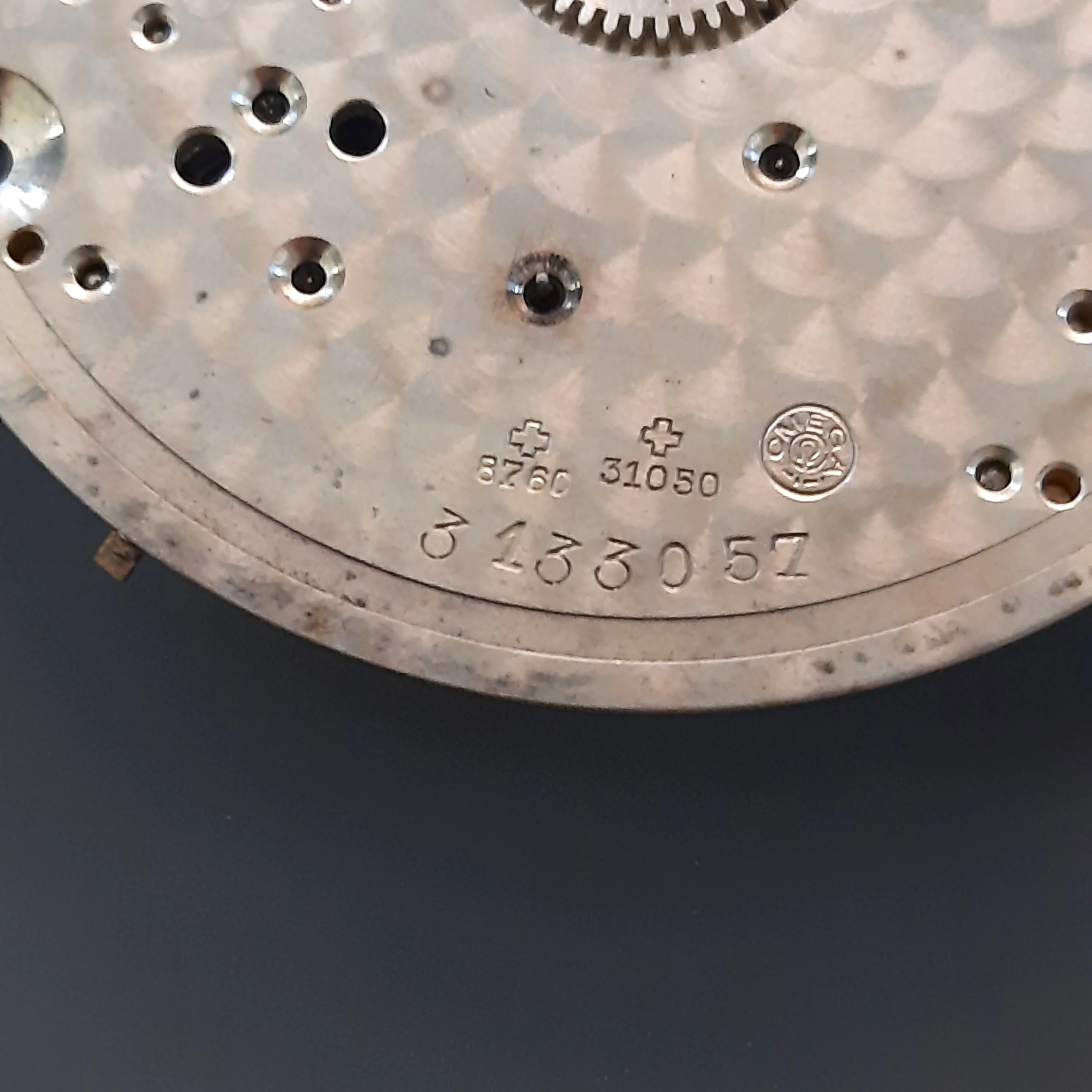 The number 057 stamped into the underside of the balance cock ties in with the serial number of the movement. This tells me that the balance cock is original to the movement.