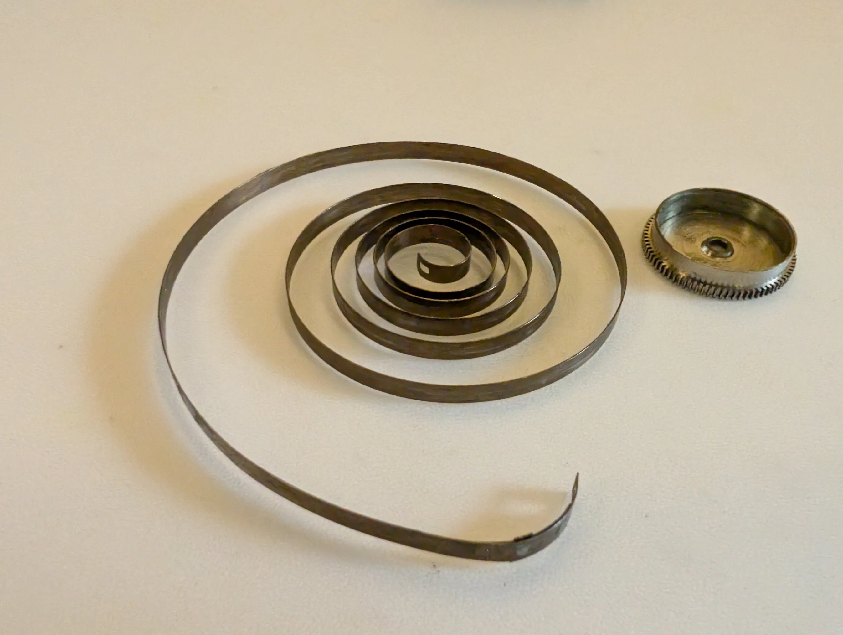 The old mainspring barely uncoils once it's free of the barrel