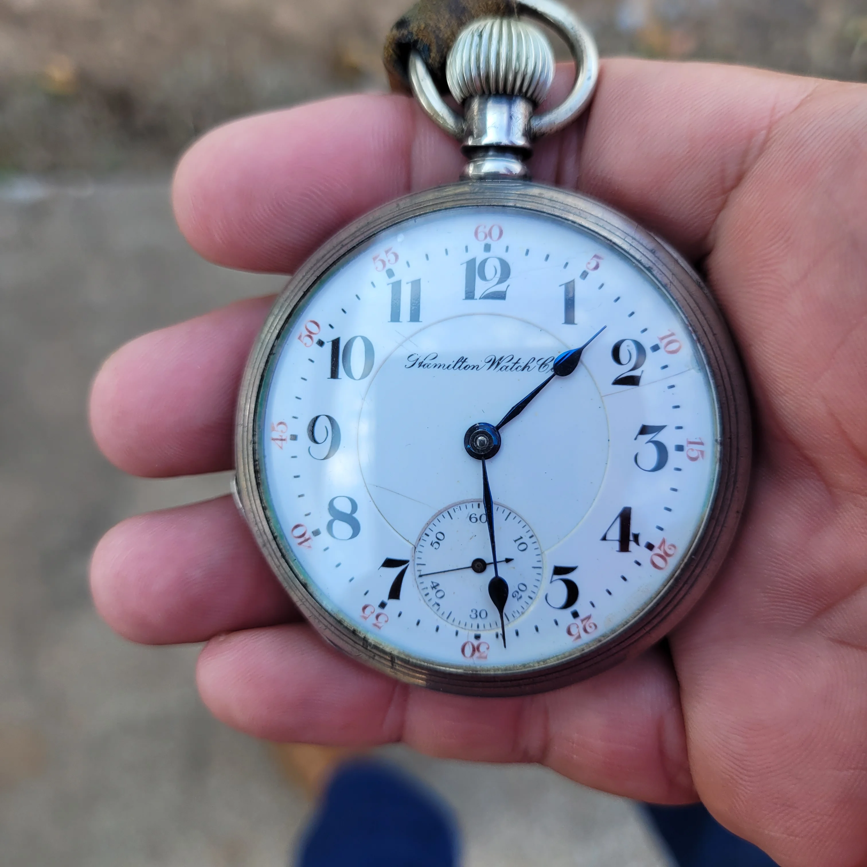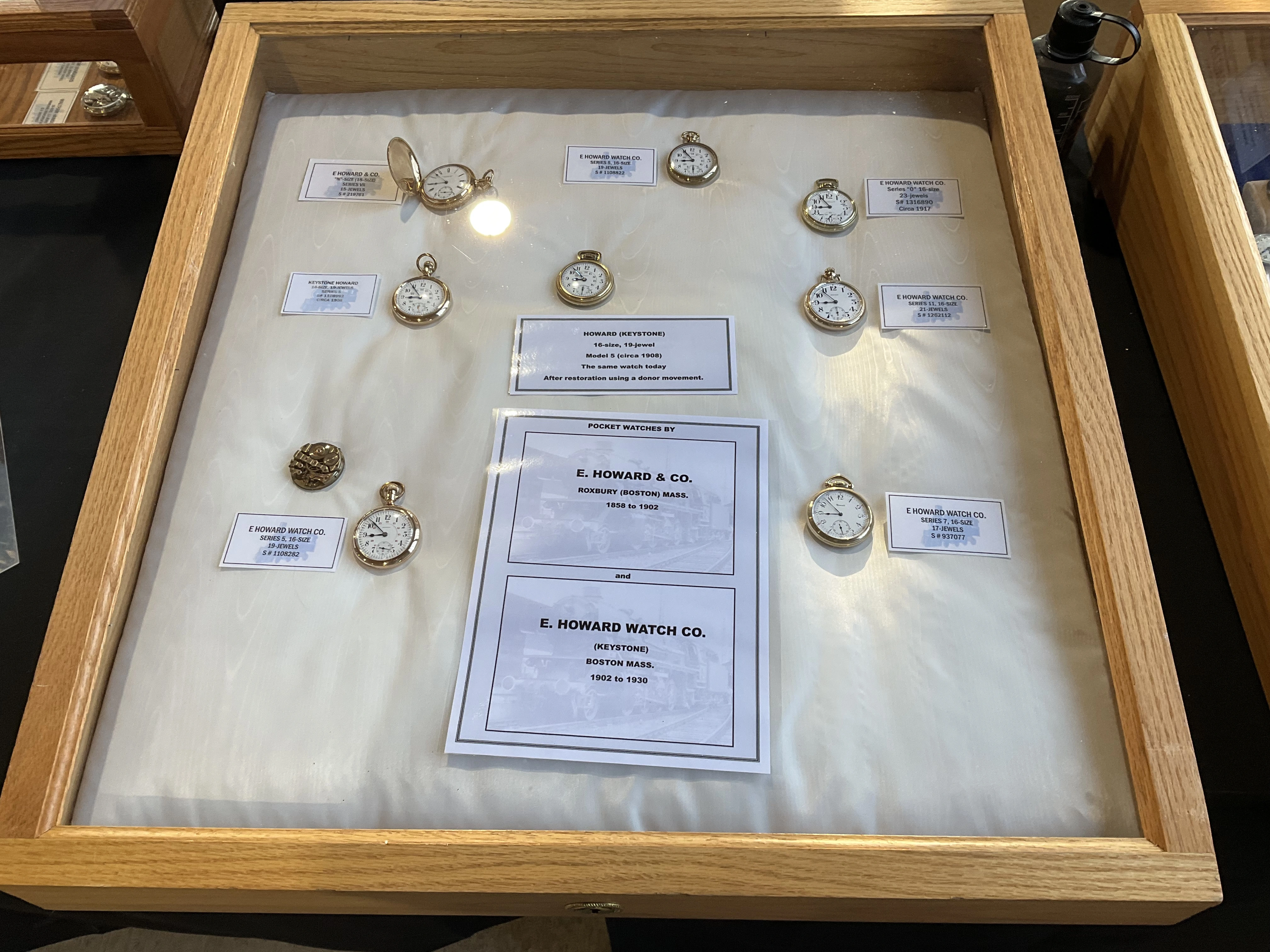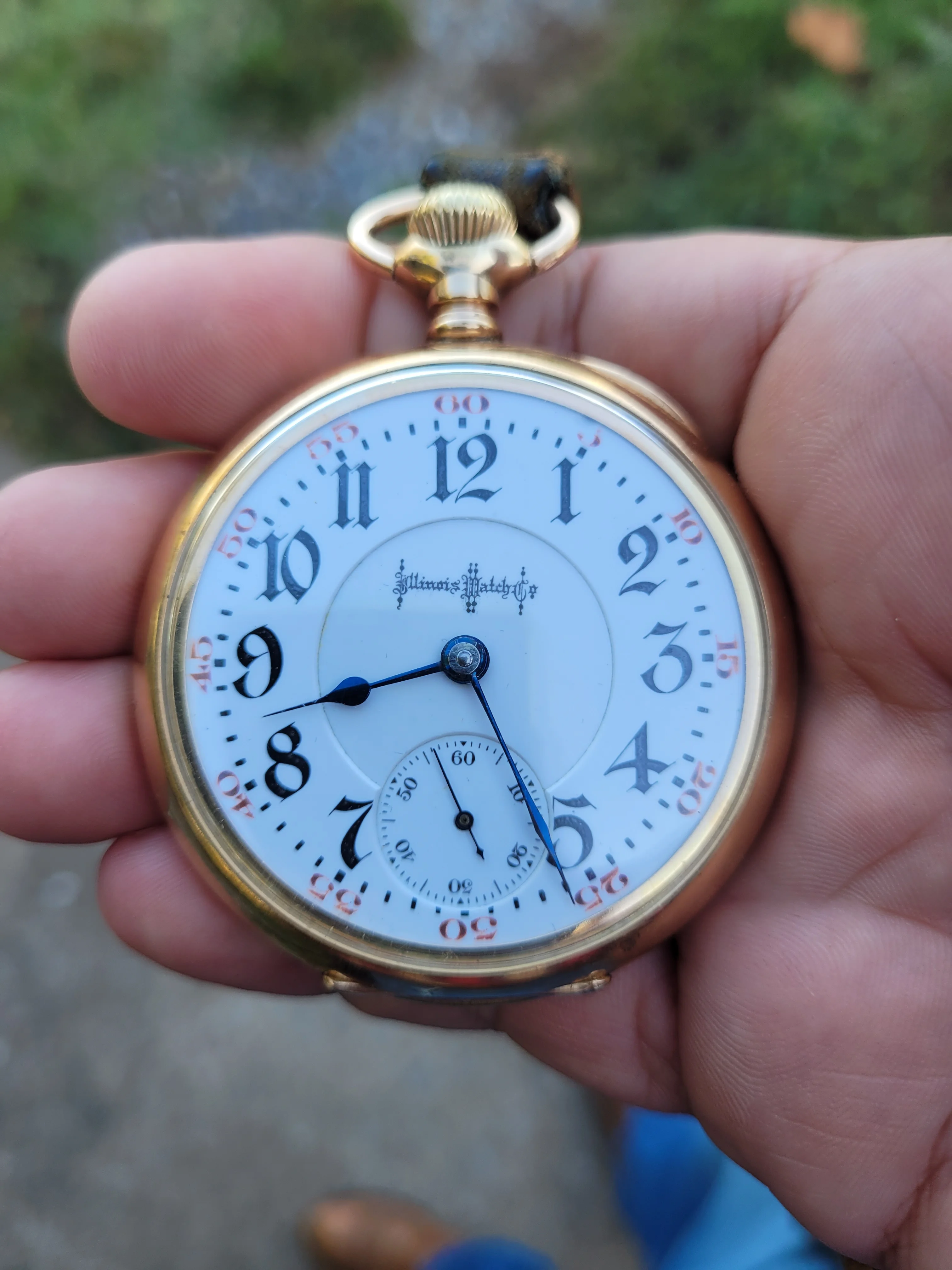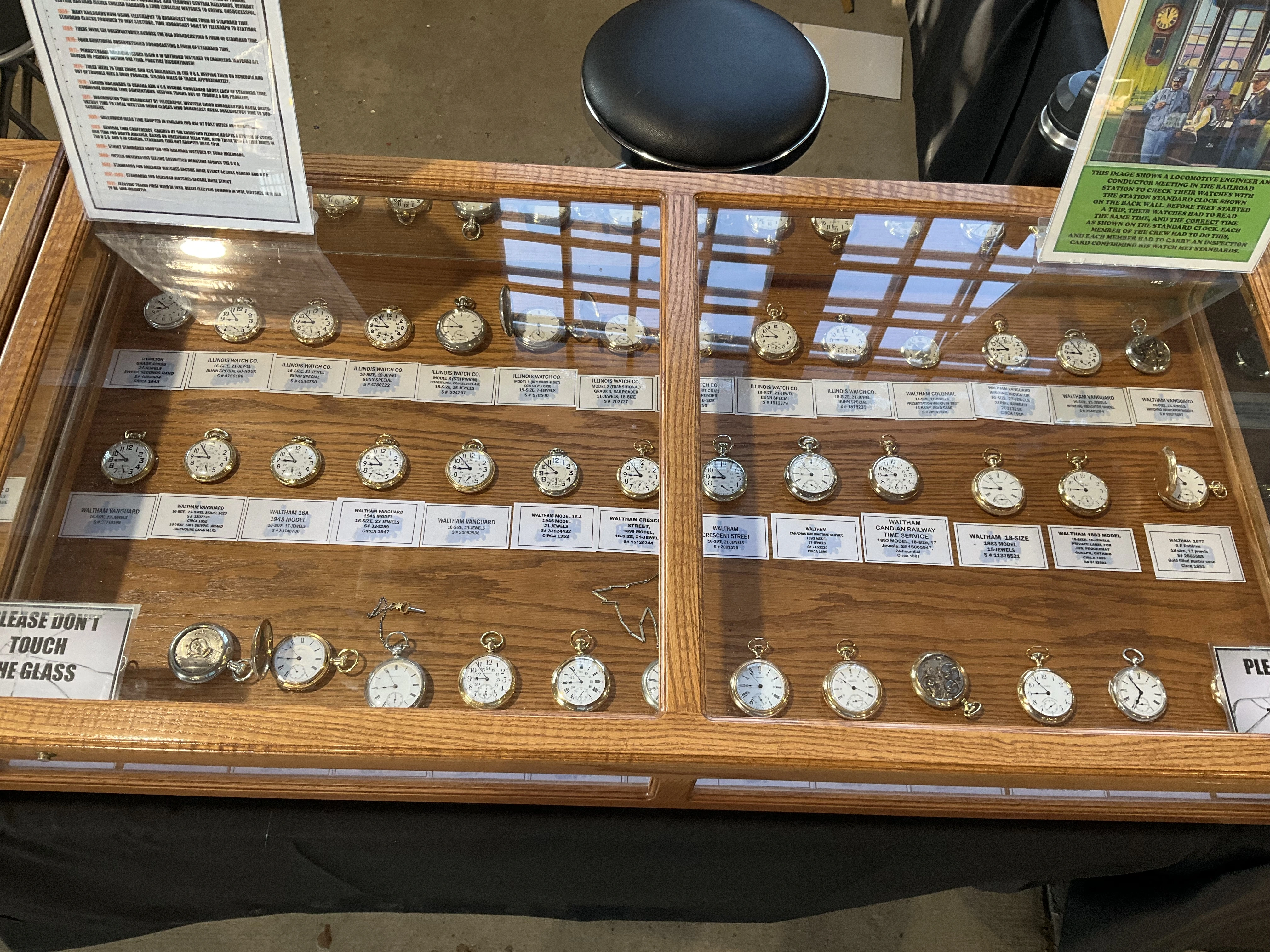 路I think I have the details correct. B W Raymond was the chap who helped set up the land deal where Elgin initially built its factory. Your Elgin is a manual winder. These are free sprung. That is, there is no traditional regulator on them. The arms on the balance wheel are in the shape of two semi-circular volute curves, each with a tiny weight on them which are moved over the balance arms, speeding up or slowing down the rate. These watches are not designed to be shock resistant, but the unusual balance arms are known to flex a bit in the event of a blow. In the photo I showed, there are 4 Accutron 214 models like yours. These were not the first railroad standard wrist watches, but they revolutionized the market for wrist watches for railroaders. They were the first widely accepted, and very successful railroad standard wrist watches. I have often had occasion to wonder how these Accutrons performed for crews that operated diesel/electric locomotives.