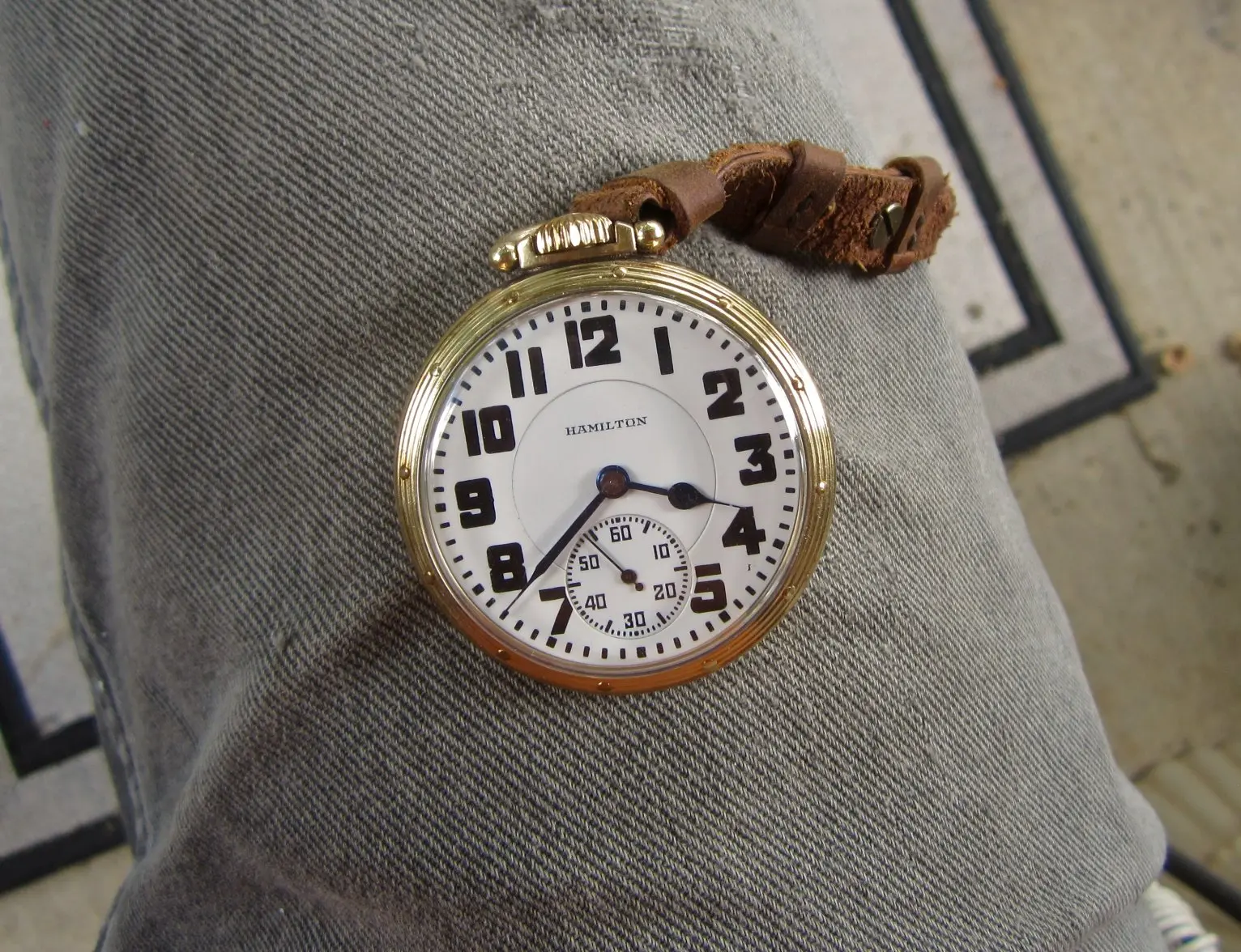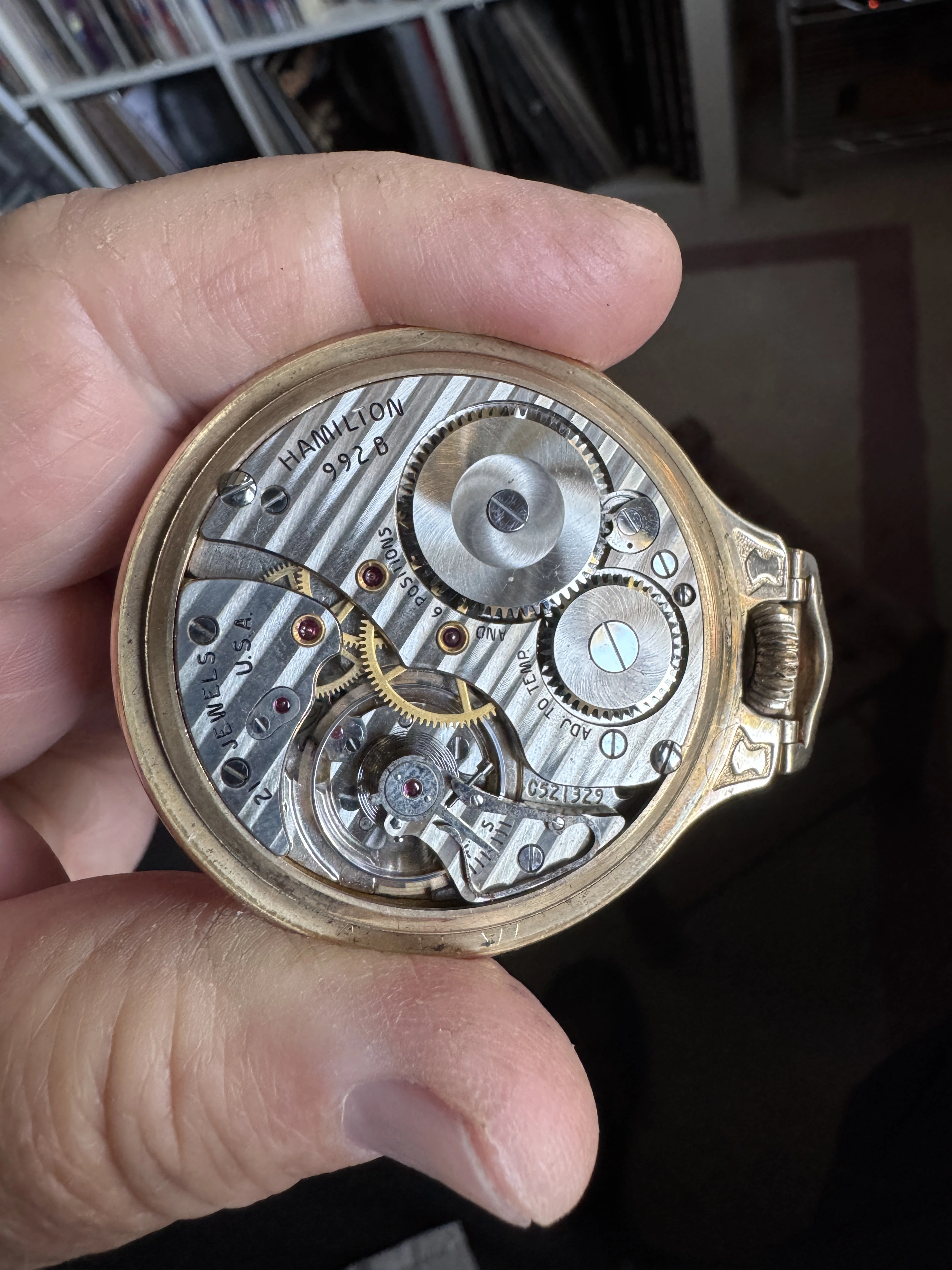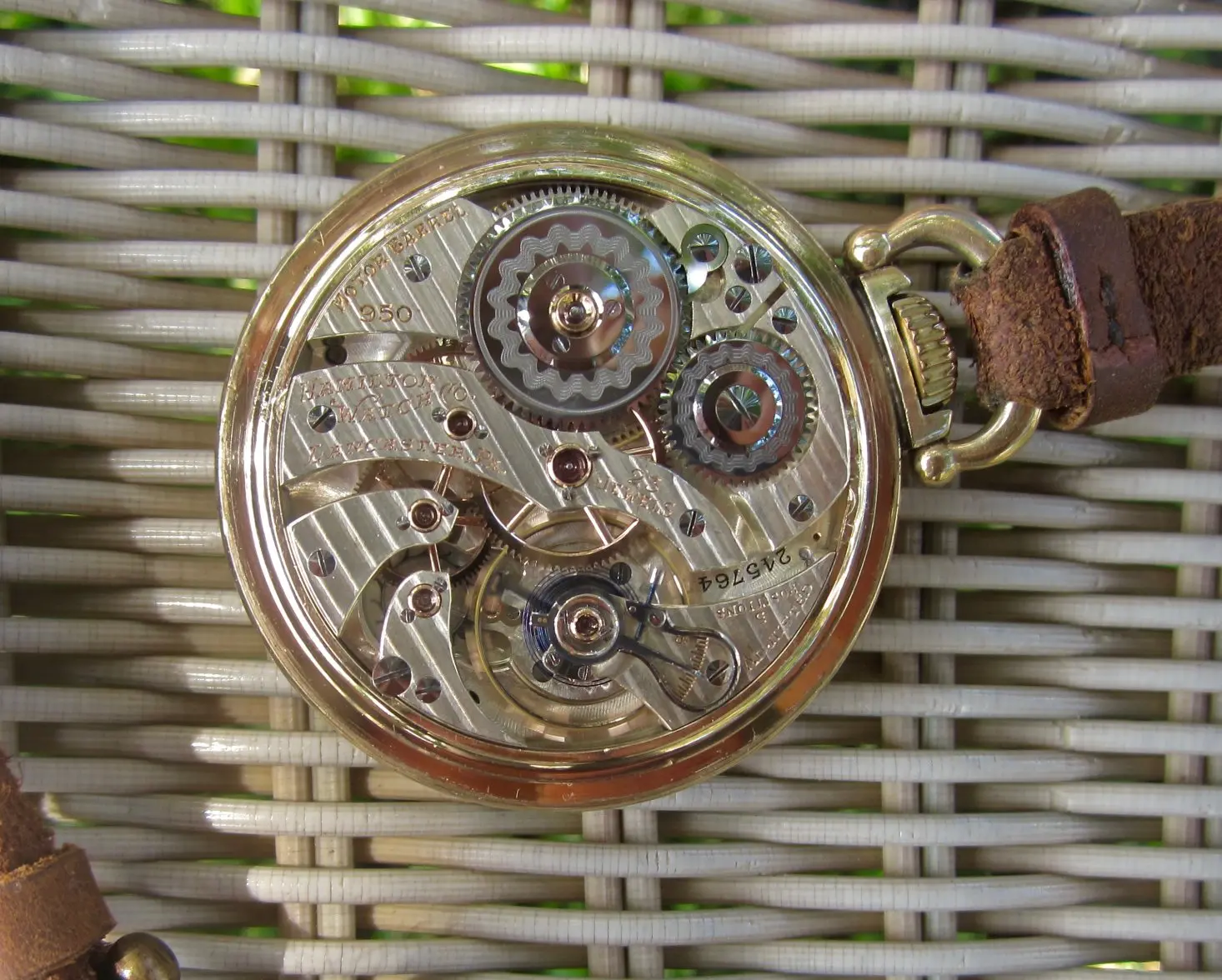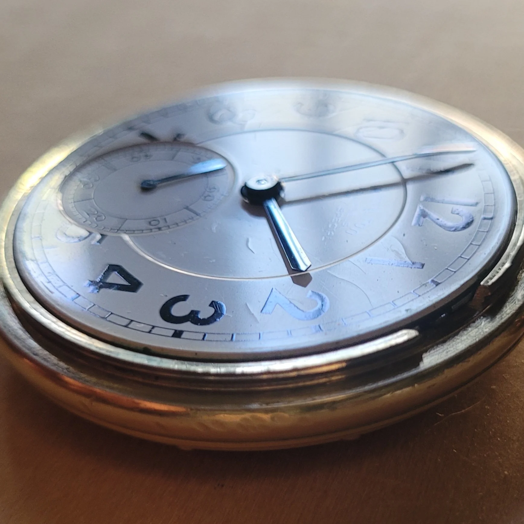 Earlier in this thread, I posted a picture of my Hamilton 950B which has had a double sunk vitreous enamel dial fitted to it. It came to me with a melamine dial which was factory original. When the vitreous enamel dial became available, I liked it better. I have saved the original melamine dial. I am showing my Hamilton 950B with the vitreous enamel dial again, along with a picture of the original melamine dial. The 950B posted by @Waltesefalcon sure appears to me to have a vitreous enamel dial, not melamine. You sure it is melamine?