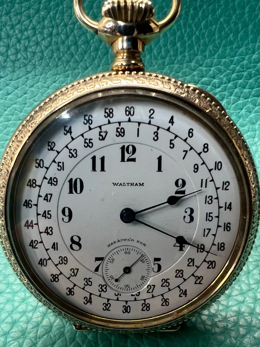 It is a Waltham Vanguard grade 1892 Size 18 from 1900 with a RARE dial by Ezra C. Fish, also known as "Staggered marginal minute dial".