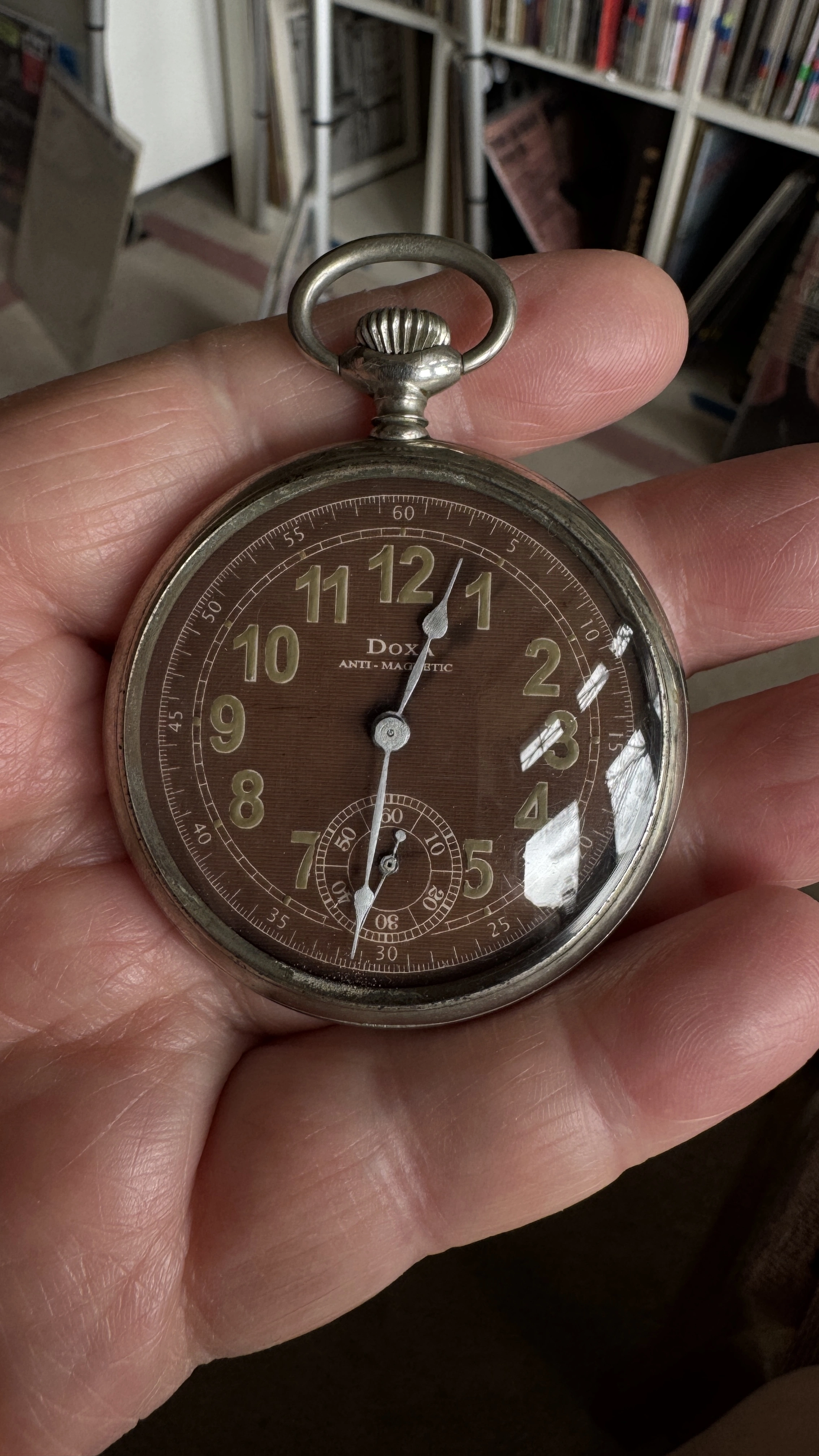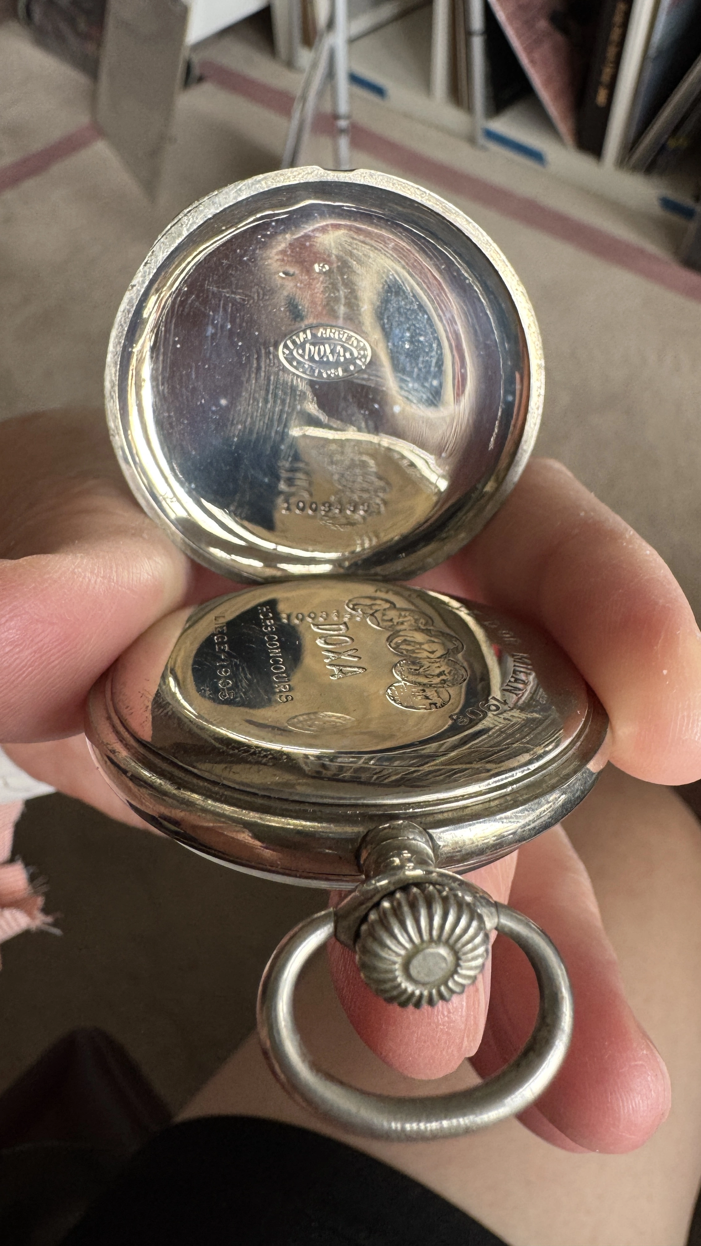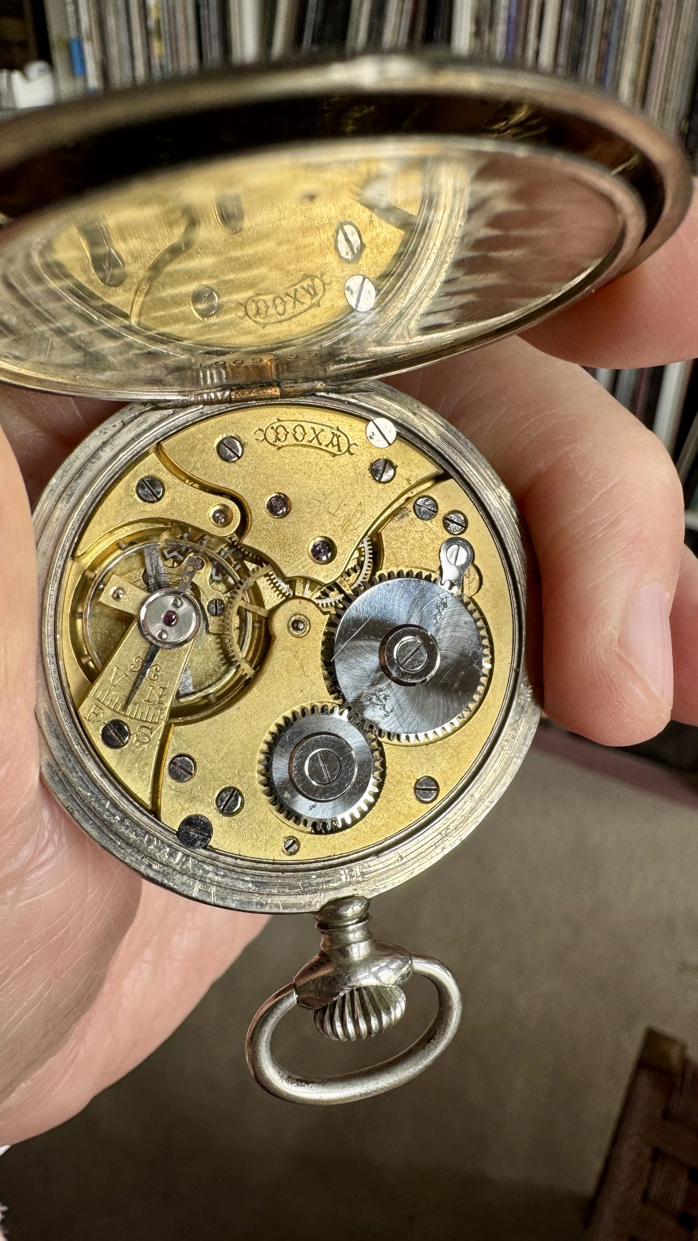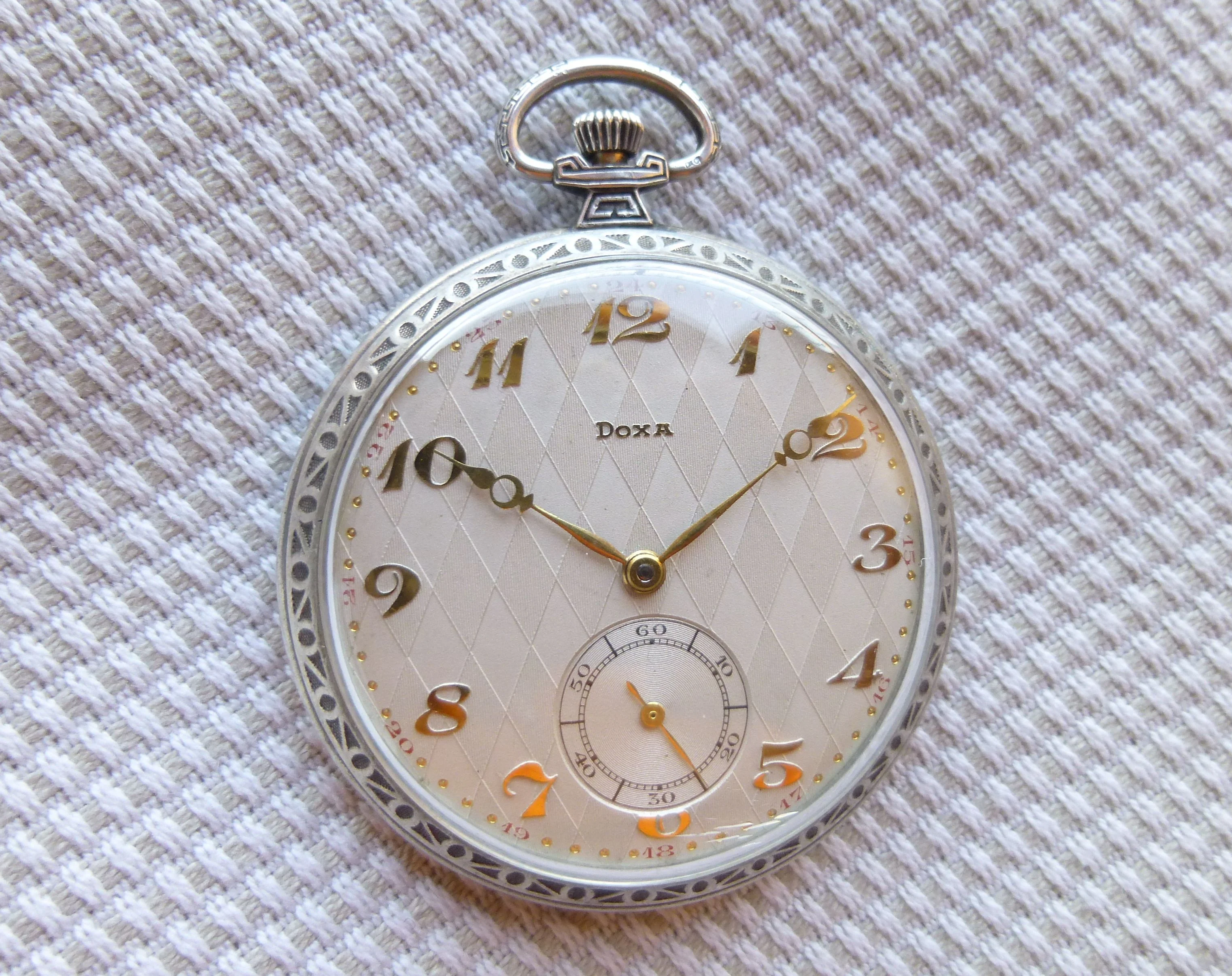 ·The Doxa pocket watch you are showing is very similar to a commercial Doxa I have in my collection in a 14K gold open faced case dating to what I thought was the 1930s. The intriguing piece of info is that my movement and yours do not seem to have a serial number.....do you know what Doxa was doing in the 30s and 40a with regard to serial numbers?