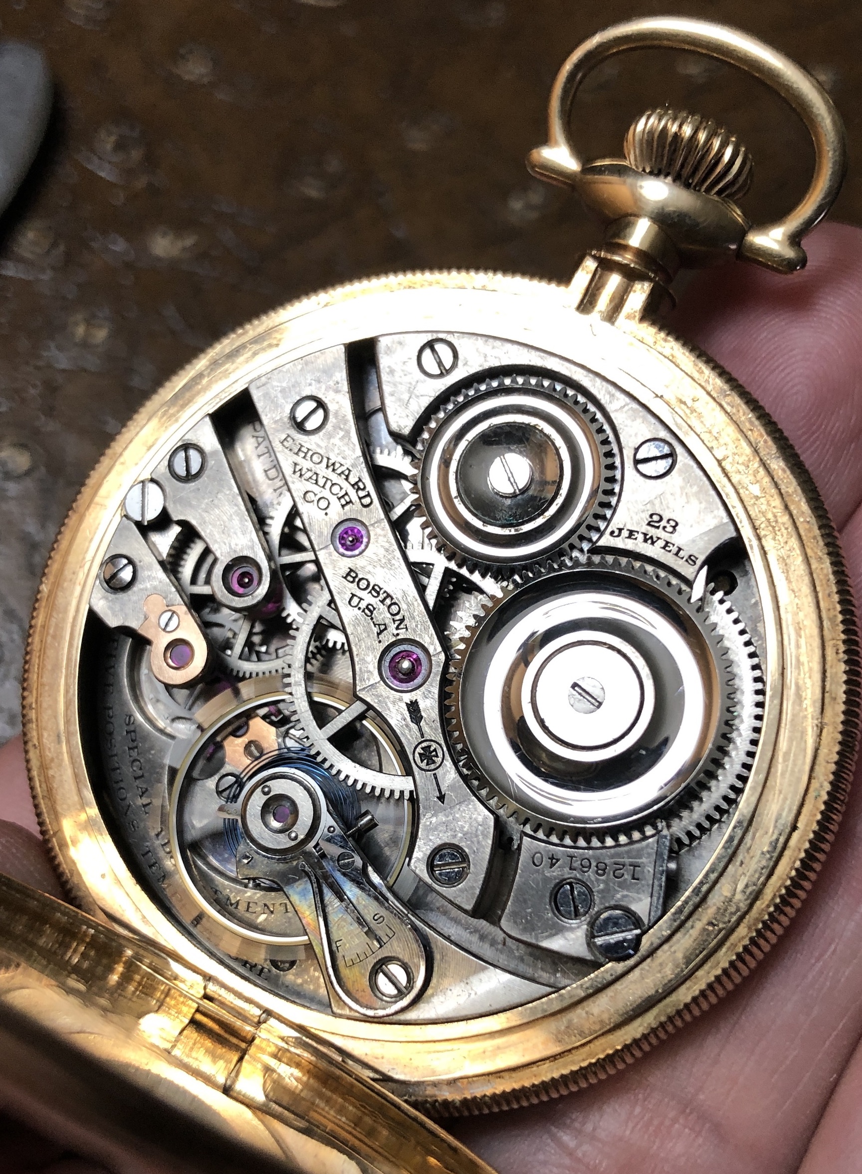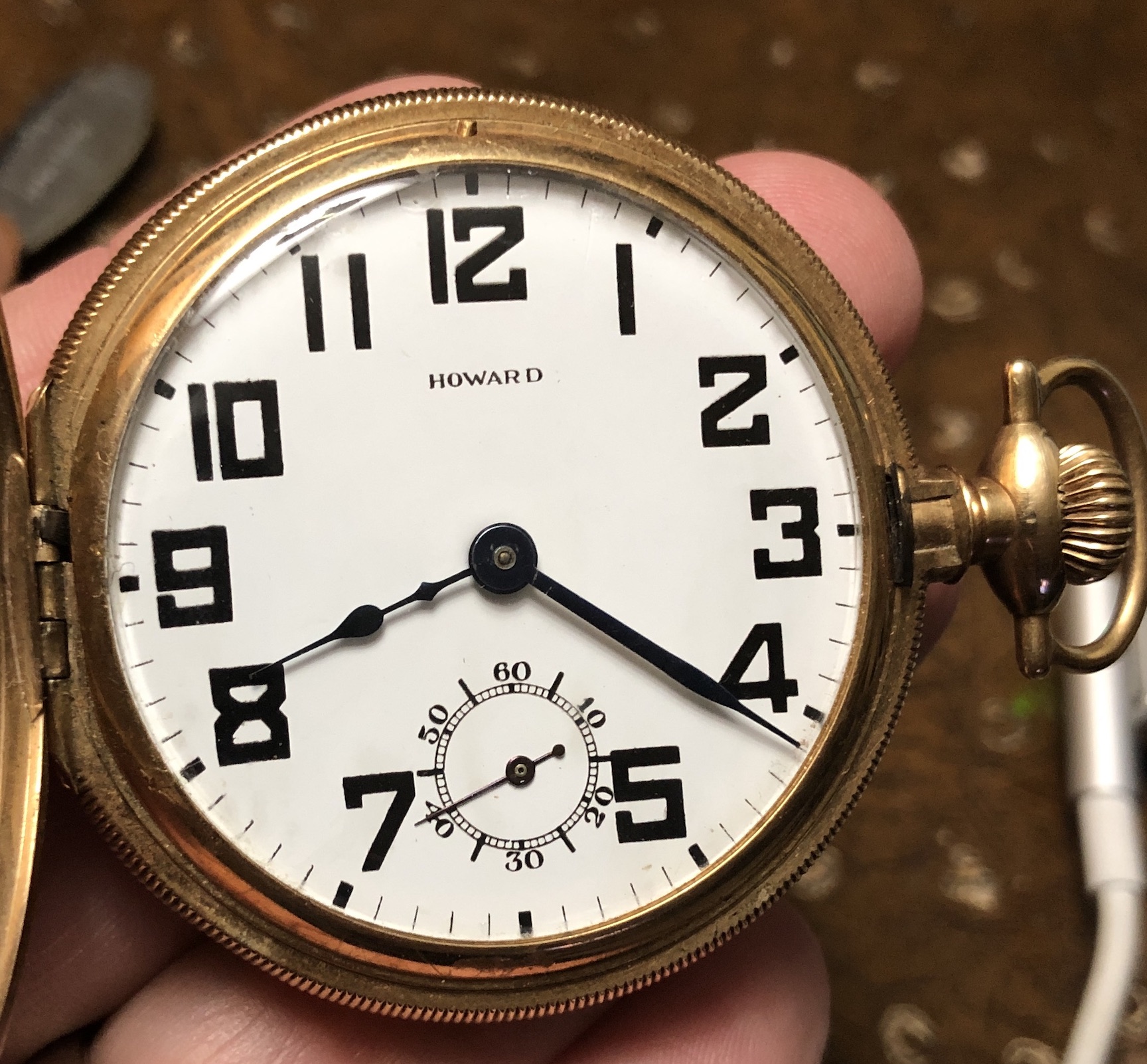 A series “0”, 23-jewels, hunter case, no less. Indeed a rare bird, that one! You did well to find a Howard dial that fits the hunter cased model. Movement is not marked Series “0”, which apparently is not uncommon. Here’s the skinny on it.