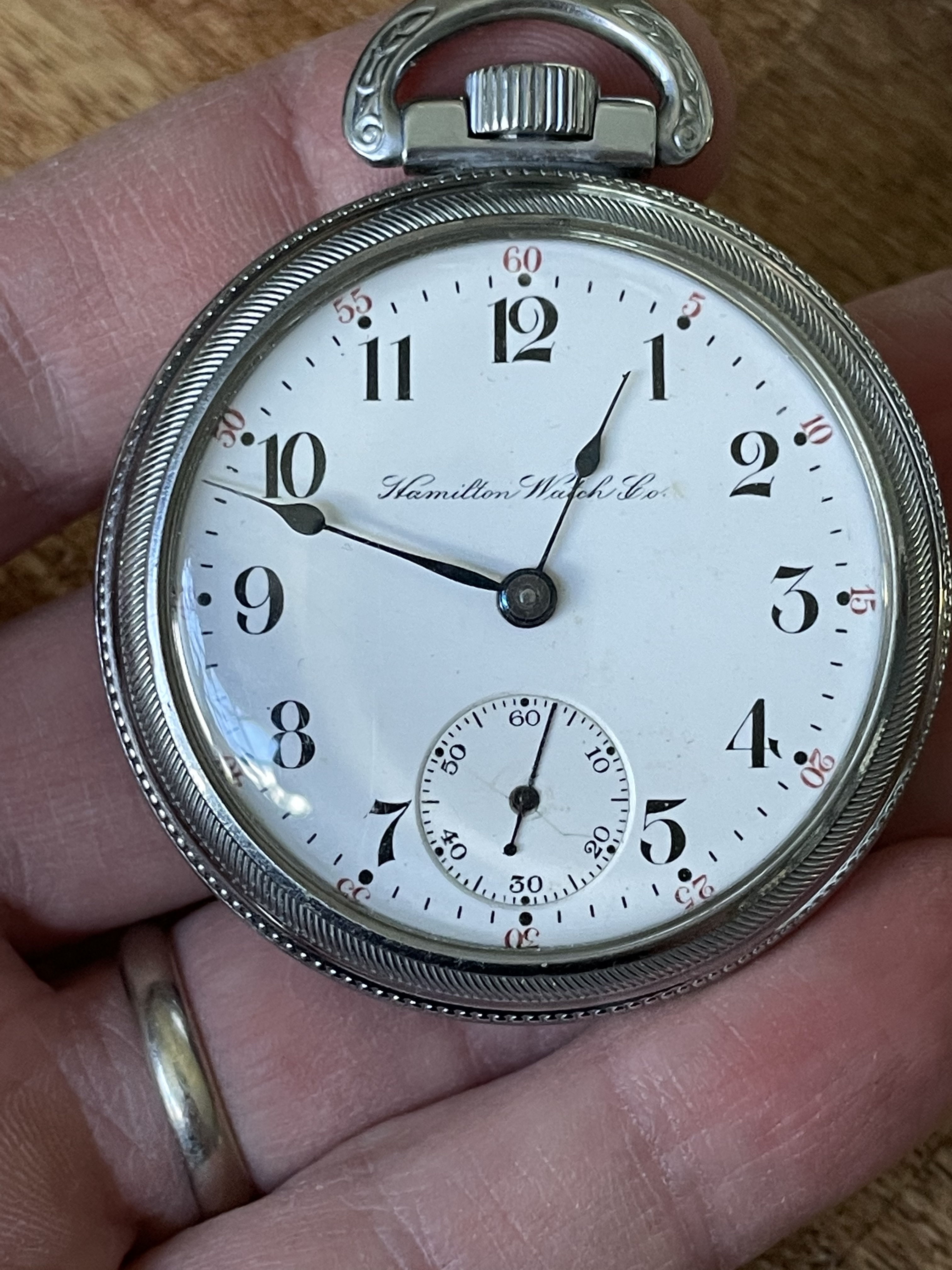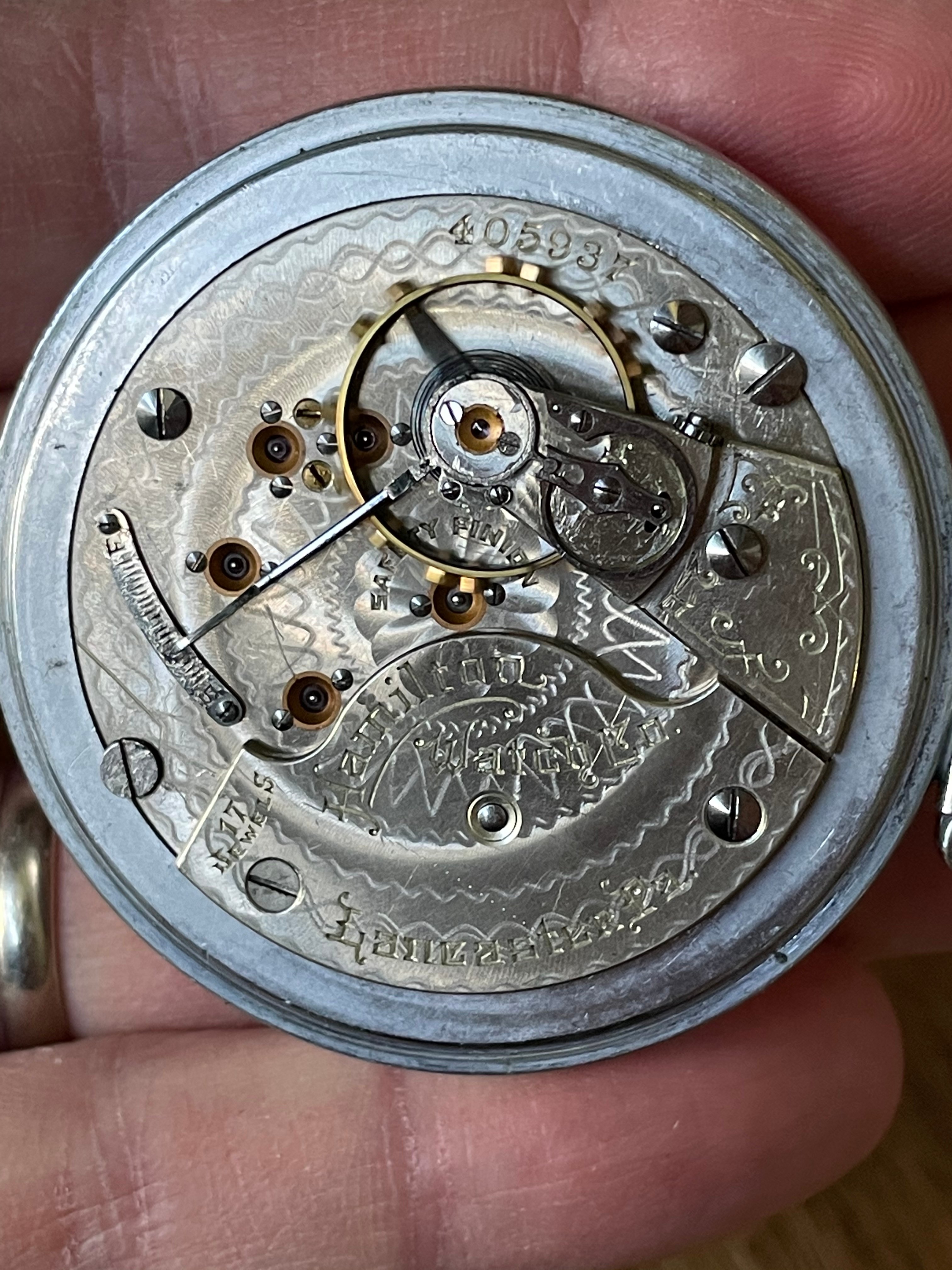·Here is the watch that took me down the rabbit hole into this hobby were I collect just about any thing that tells time that interest me. I never had a lot of money in my youth so really could not do a hobby plus I use to party it away in my teens until age 27. First real job I got after active Duty Navy were I slowed down my party habits were I had money to spend I was walking by a pawn shop this is around 1987 I walk in and checked out pocket watches they had all ways wanted to collect those for some reason. Bought this beater none fancy a working mans watch when it was made a Hamilton 992 did not cost me a lot. But it took me down the rabbit hole were I got this bad habit of buying any thing that tells time and got into the history of timepieces. I have slowed down on pocket watches and went on to other types of timepieces collection sort of into military collecting and some times other stuff that catch my attention if the price is right did buy a WW1 Zenith corps of engineers pocket watch recently first pocket watch I bought in years. Here are a few photo's of the Hamilton. Any one else still got there first pocket watch they ever bought ? This one was made around 1918.
