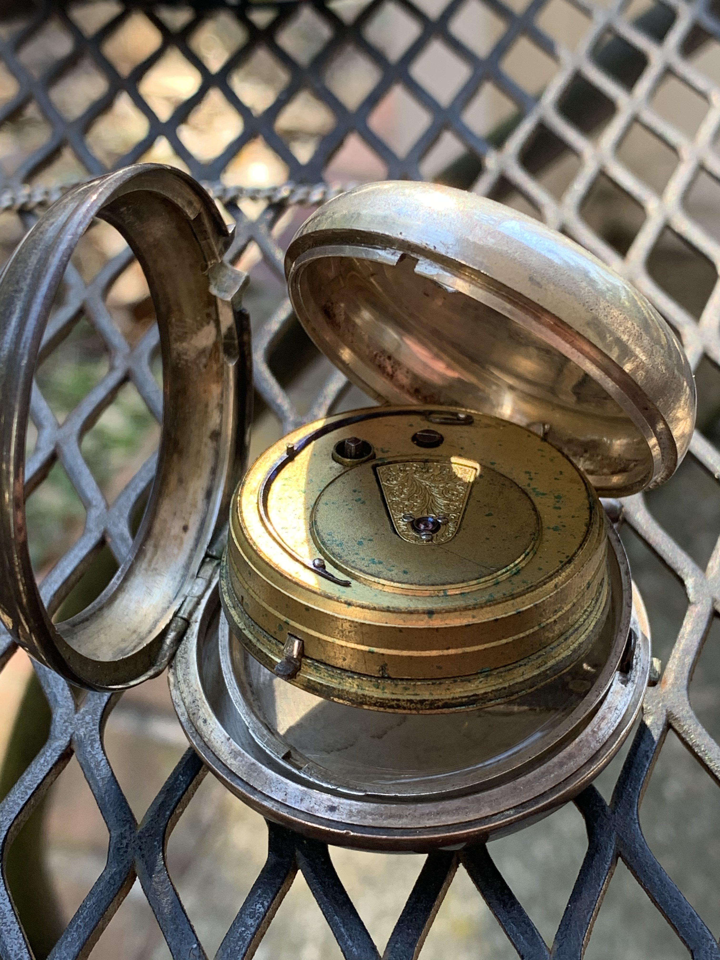 Your English pair cased watch appears to be an English lever, fusee, unfortunately with an anonymous movement. The case was hallmarked in Chester (England), in (it appears to be) 1842-43. The case makers mark could be T.H, in which case it could have been made by Thomas Howl, 32 Norman鈥檚 Buildings, St. Luke鈥檚. It could be I.H in which case it might be by John Harris, 6 York St., Butts, Coventry. Both makers were active at about the time the watch was hallmarked. Information courtesy of Phillip Priestley鈥檚 excellent volume on English watch case makers.