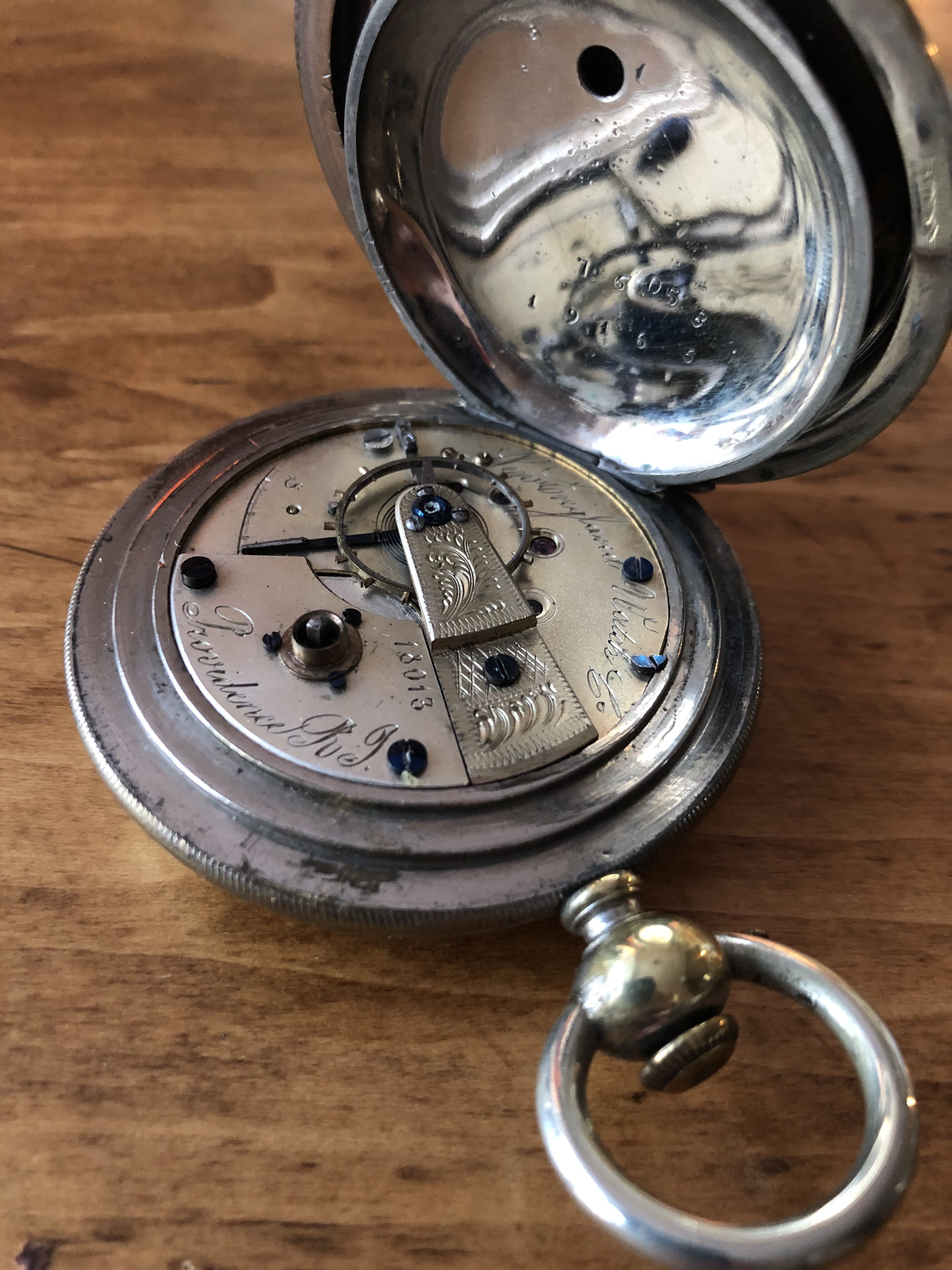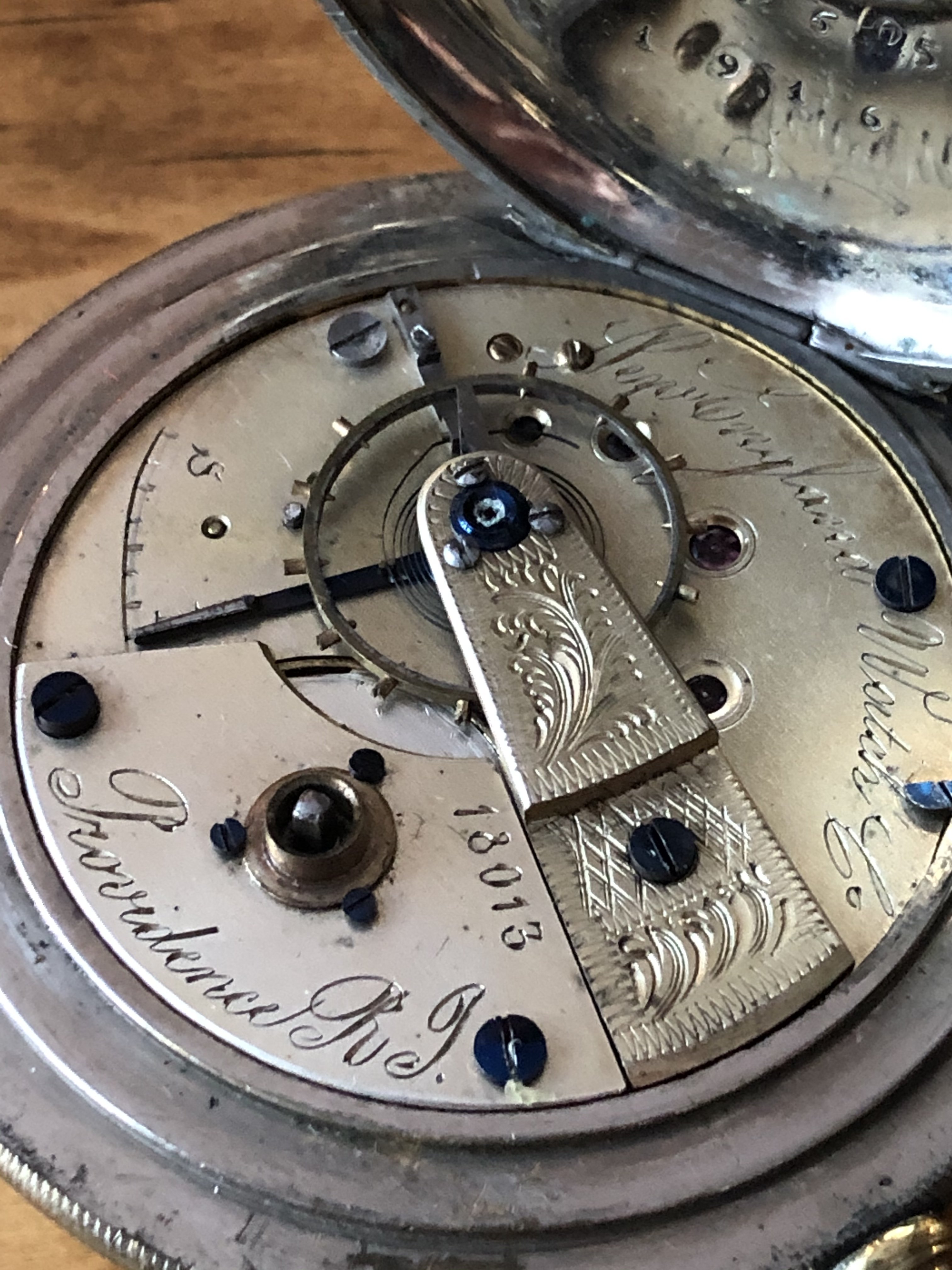 Might it be possible that your “New England Watch Co.” is a Swiss fake? It doesn’t bear any resemblance to any of the New England Watch Co. models in my reference. The New England Watch Co. arose from the Waterbury Watch Co., and both companies only produced “popular priced” watches (read as “cheap”), and both were located in Waterbury, Conn., not Providence R I. Is there something I am not seeing? Yours doesn’t bear any resemblance to Waterbury movements, either. The watch business in that era was full of contradictions.