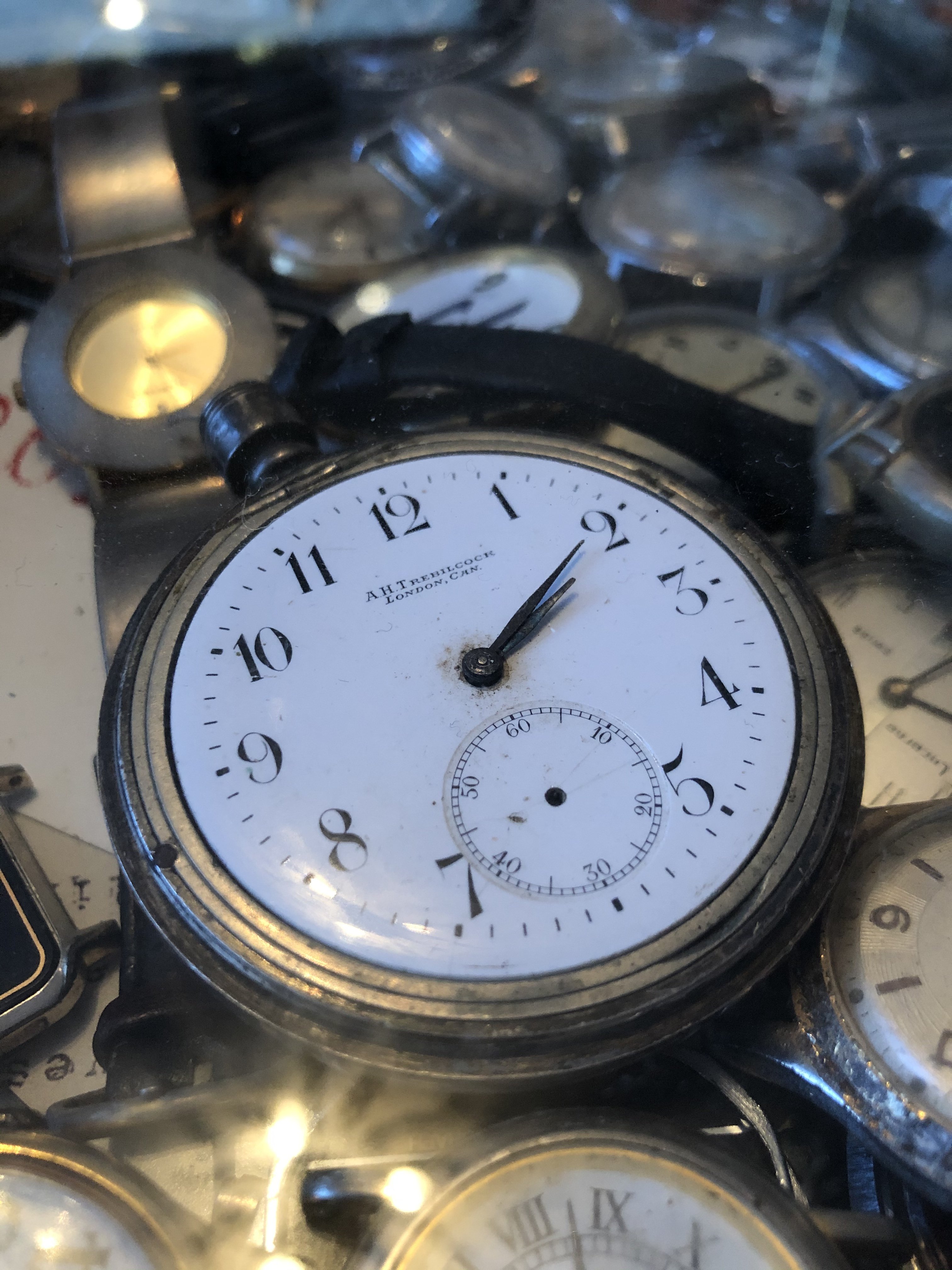 There are 3 in my home and 2 others - a size 12 Waltham gf hunter that my daughter wears on a slip chain and a size 14 gf Omega that my son has. The 3 remaining ones are all serviced and functional. None are particularly noteworthy, although the Waltham has a nice inscription and was presented by the town upon return from WWI.