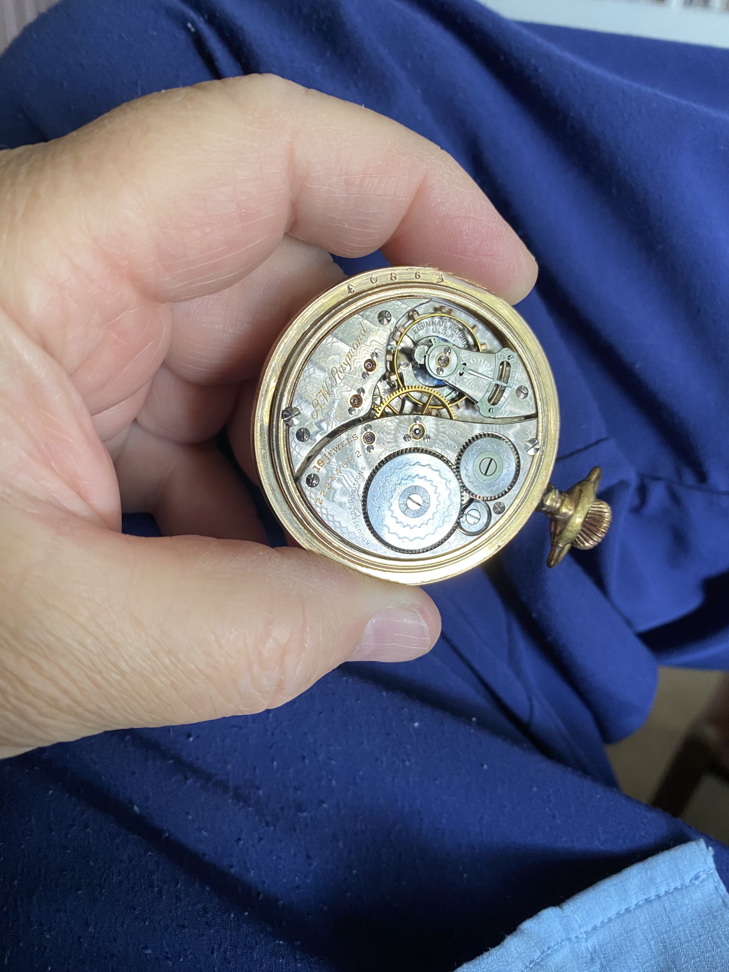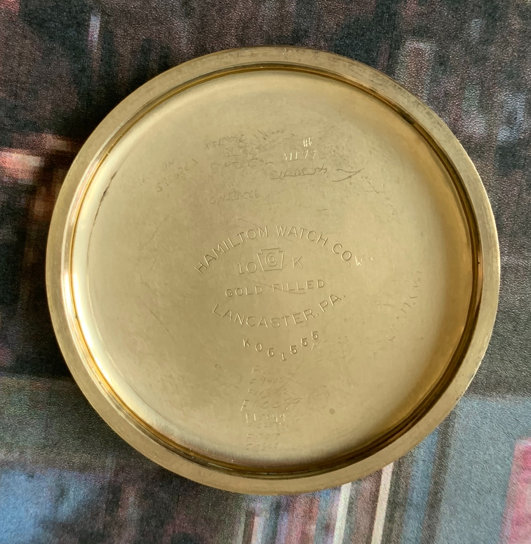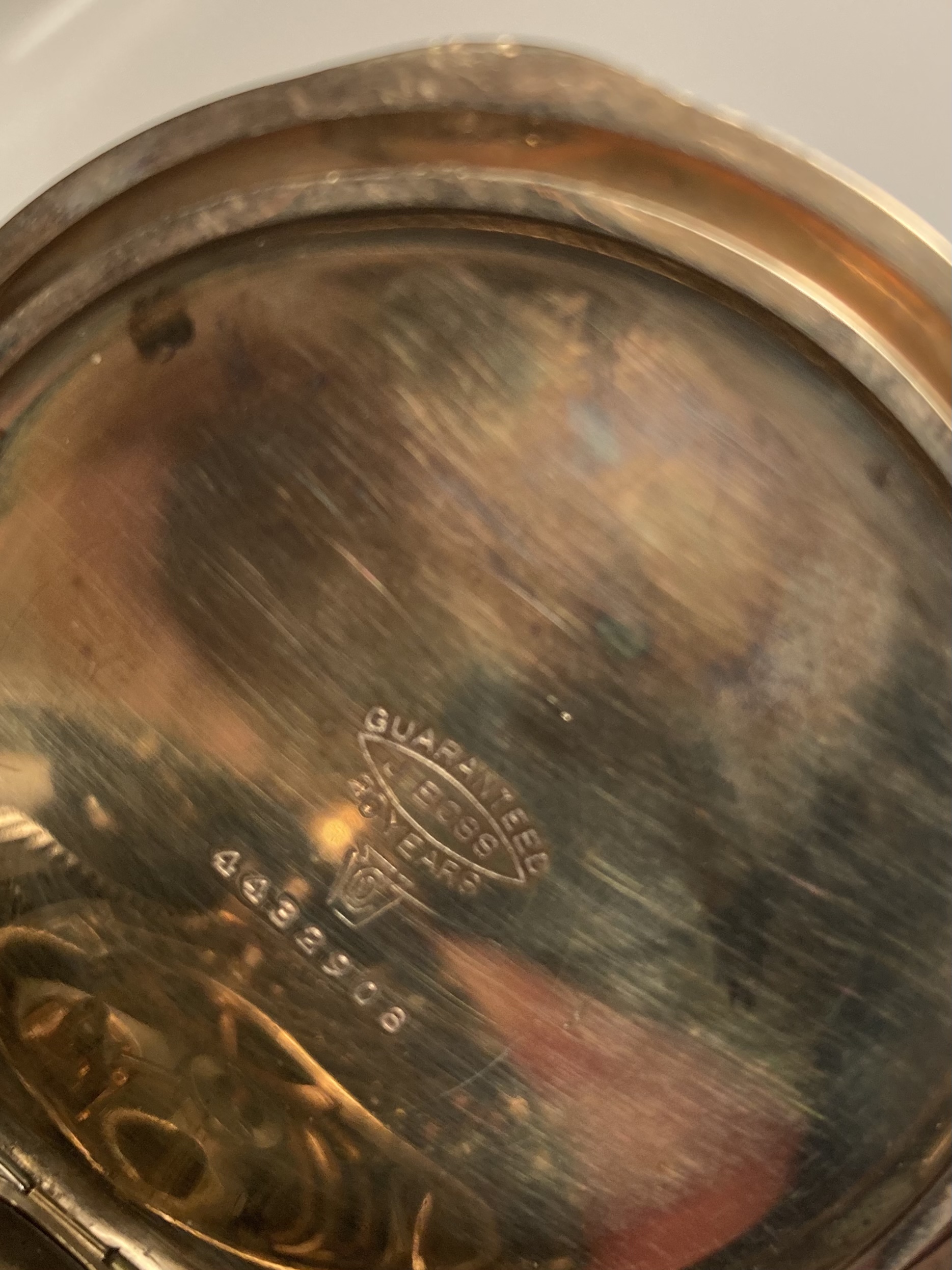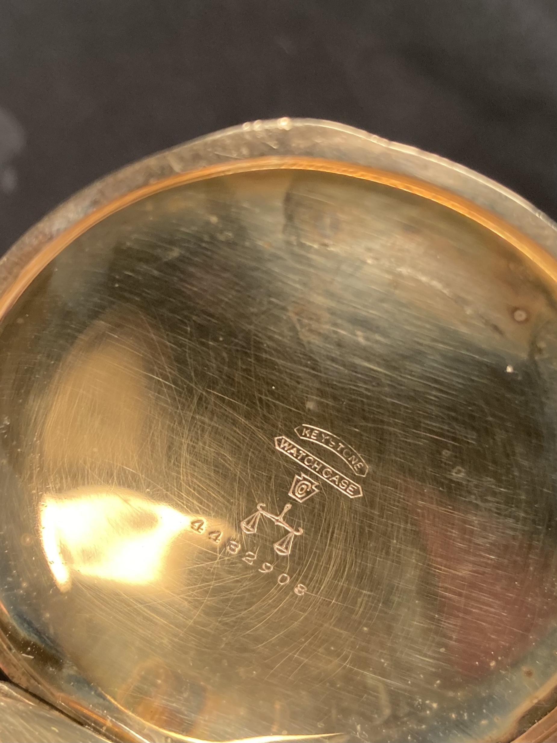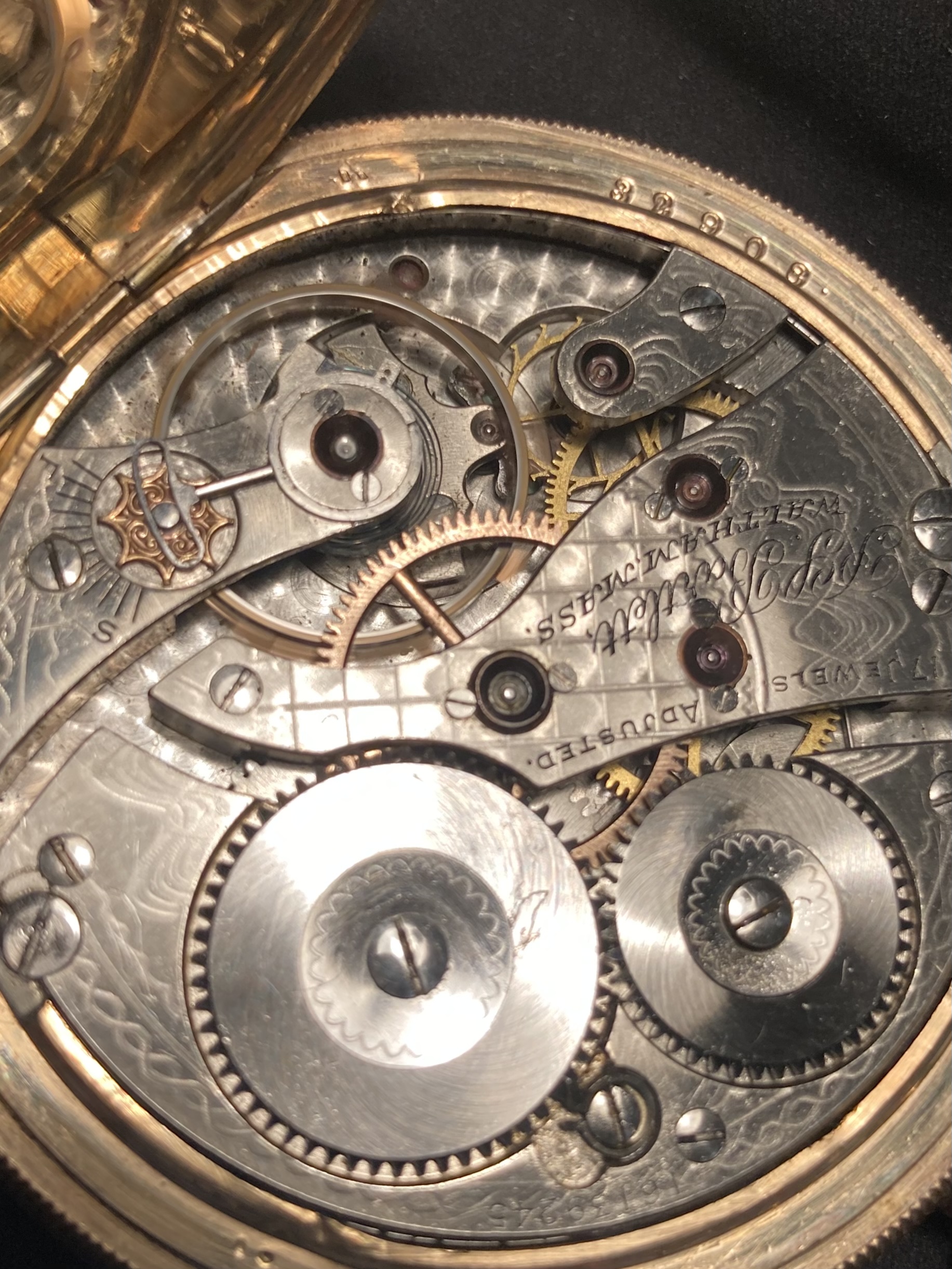 ·A lot of the information given in the data I’ve posted for your two Walthams did come from information compiled by Waltham. But some of the information has been gleaned from the Waltham records by avid collectors and others who have analyzed factory records. This is true with most of the records from most of the American watch factories. As to the matching numbers on the components of the 14-karat case..........case makers did the same with gold filled, sterling, and base metal cases. In fact, if you were to see your two Walthams dismantled, you would the the movement serial number stamped into all the plates and bridges (but not the wheels and internal parts). This was all done to keep these parts together during the manufacturing process. It may take weeks, or even months, from the time a particular movement was started, until it was finished. These parts had to stay together during the process. Aren’t pocket watches interesting?