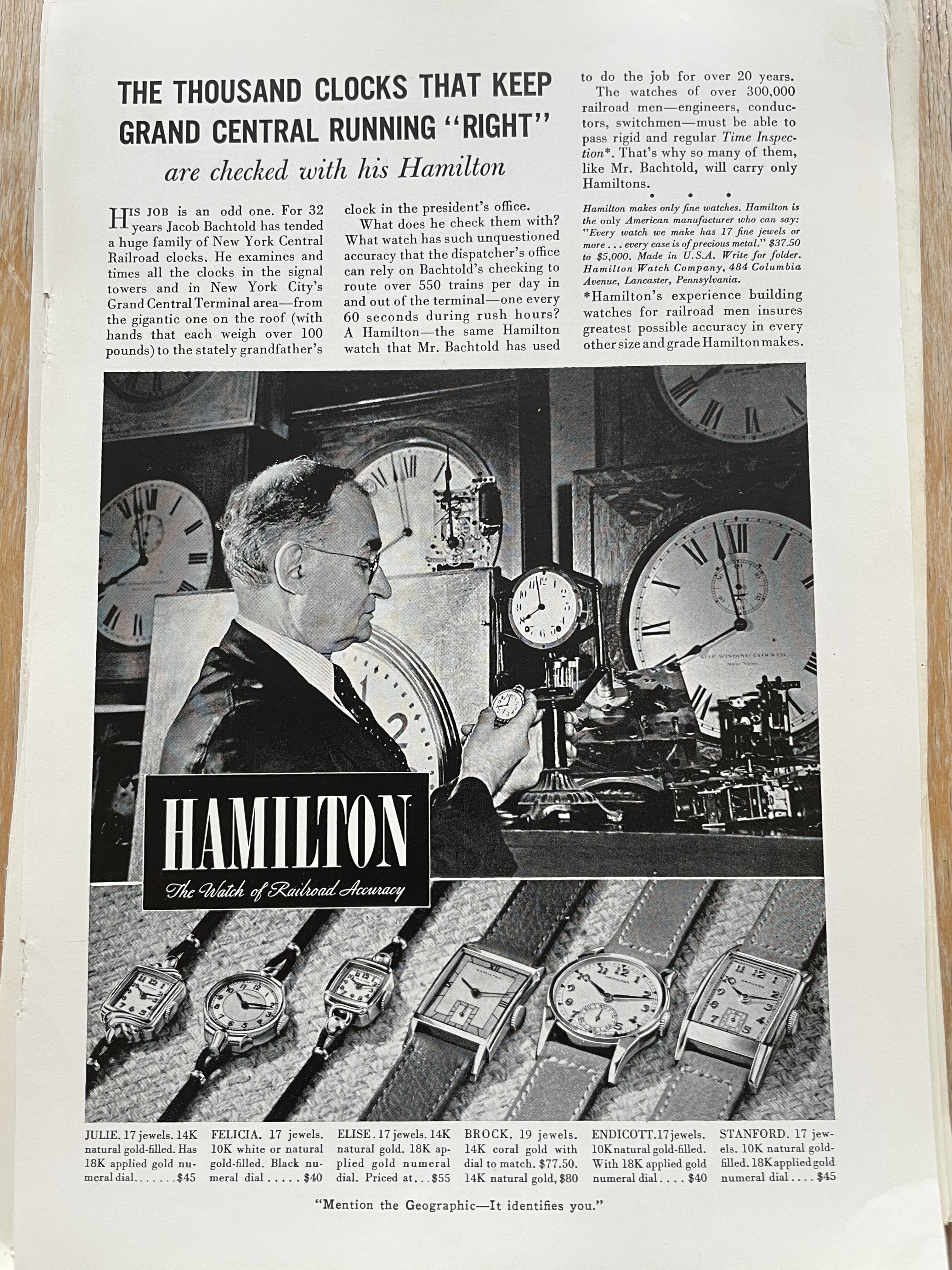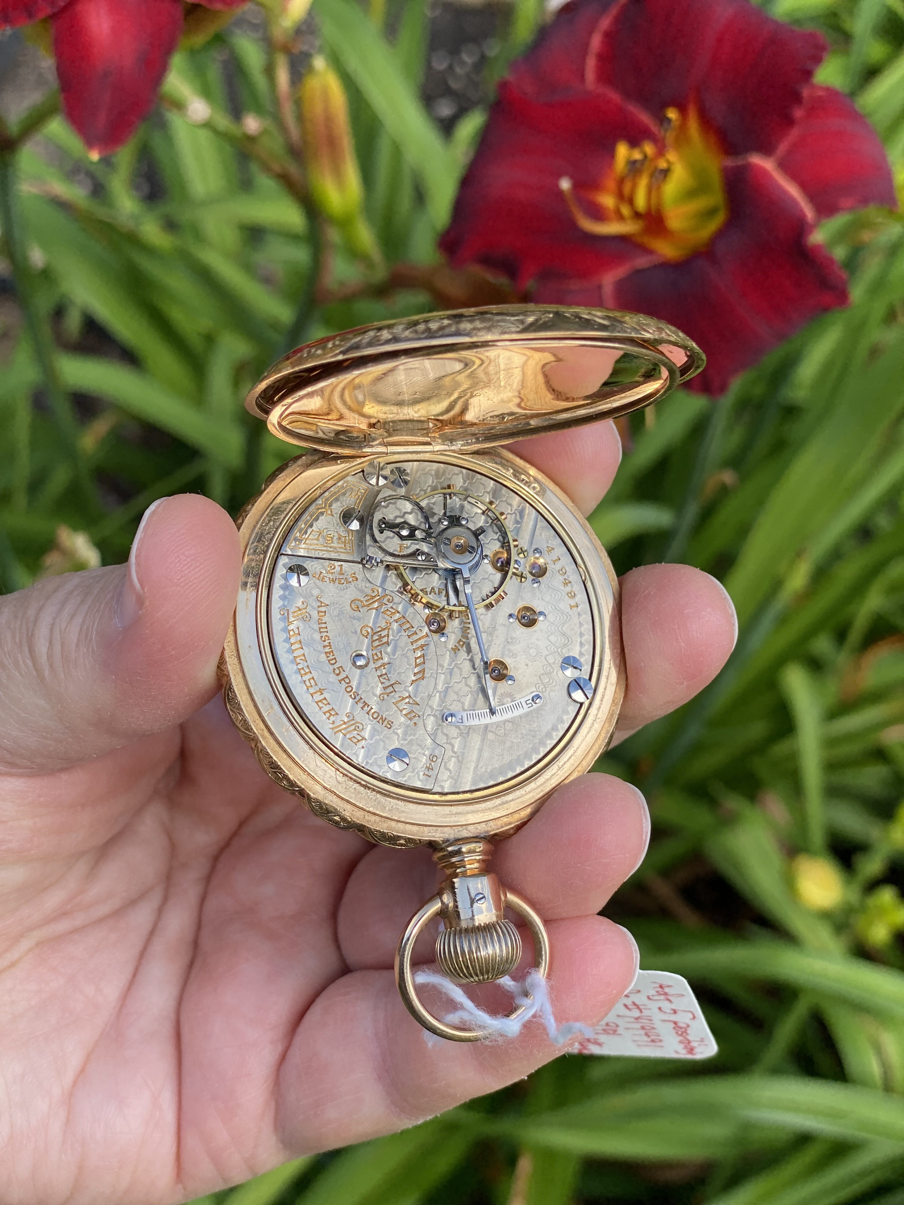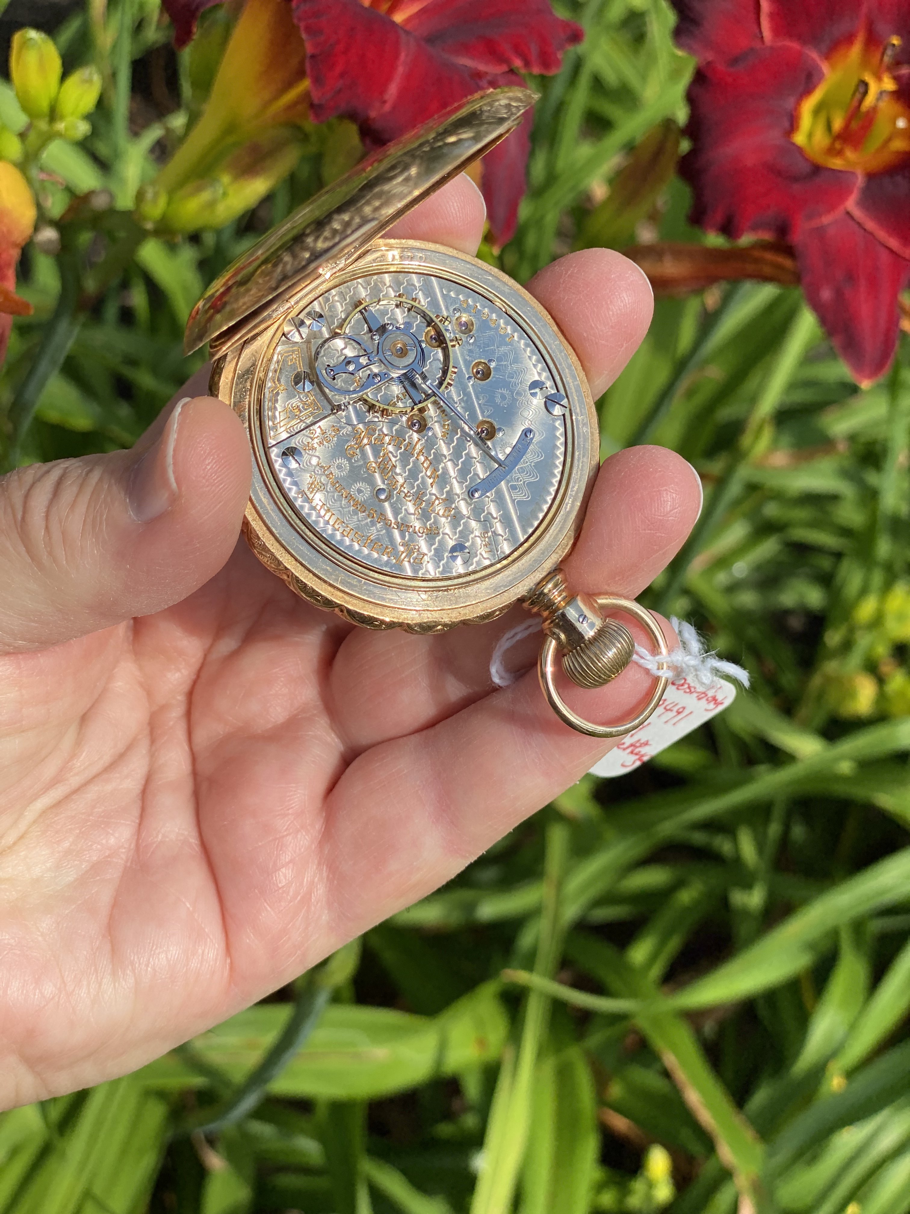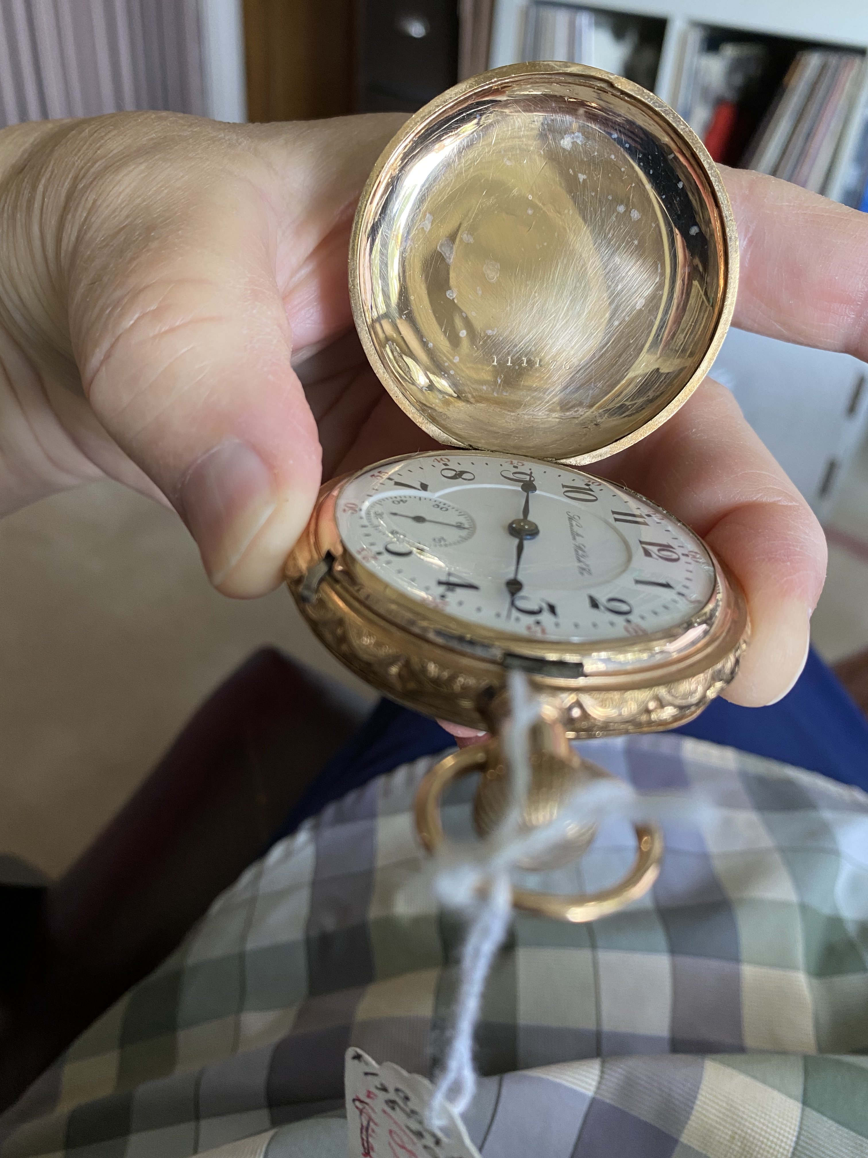Several months ago, I got a phone call from one of the watch repair fraternity in town, enquiring if I had a regulator arm for a Hamilton, 18-size, grade 940 pocket watch. He was servicing his customer’s pocket watch, and lost the regulator arm. After days of sweeping, probing with magnets, and otherwise scouring his shop, he was not able to find the part. I took a look at the watch while in his shop, and thought to myself that I had the part he needed. When I got to my shop, I checked. I have a totally ratched Hamilton grade 940 which long ago was relegated to “parts only” status, and I had the regulator arm he needed. I phoned him, and told him that I had the part. He told me he wanted to buy it. I told him that I don’t sell antique watch parts, but I would supply the part IF I got the whole job! Not what he wanted to hear!