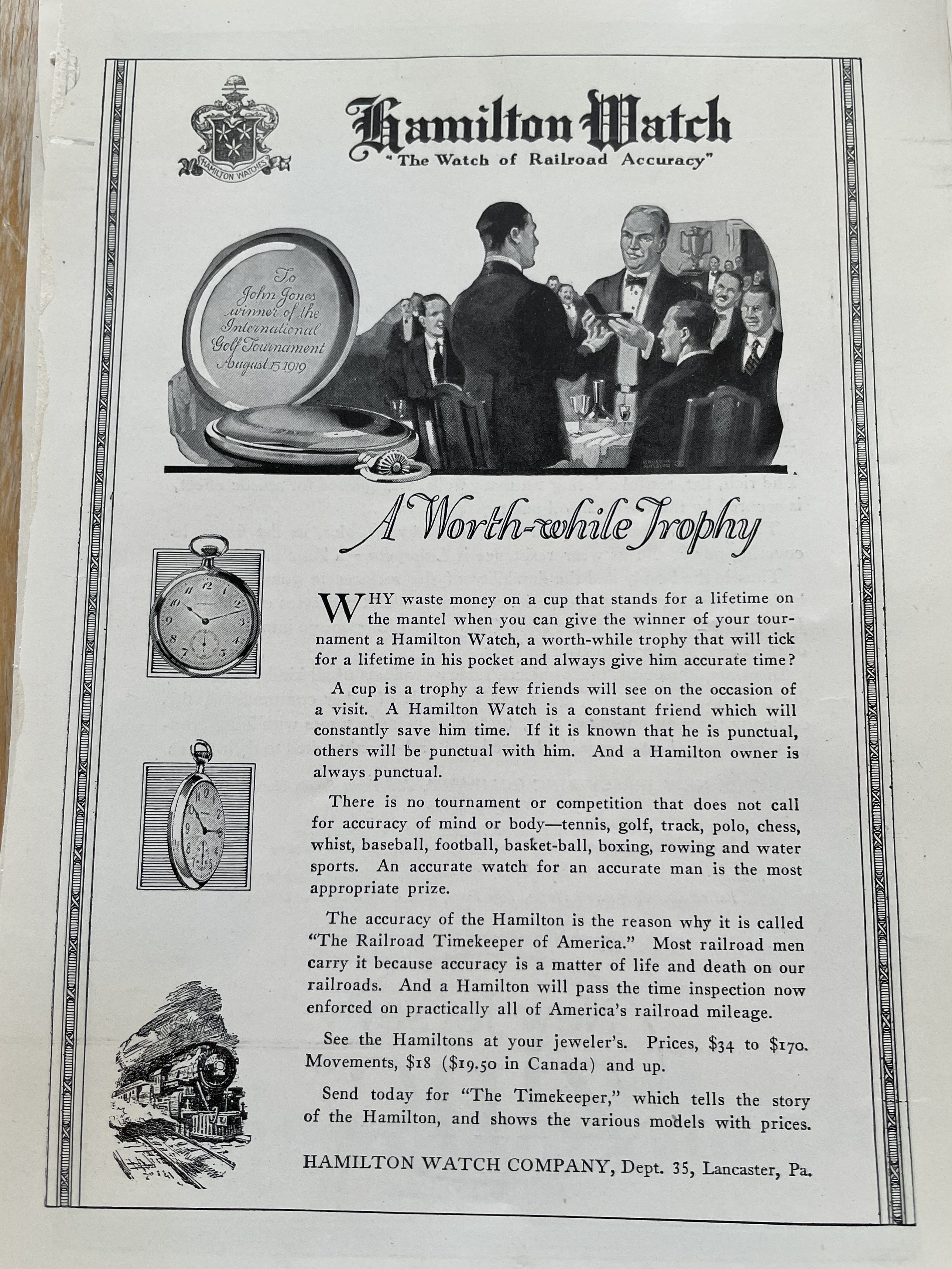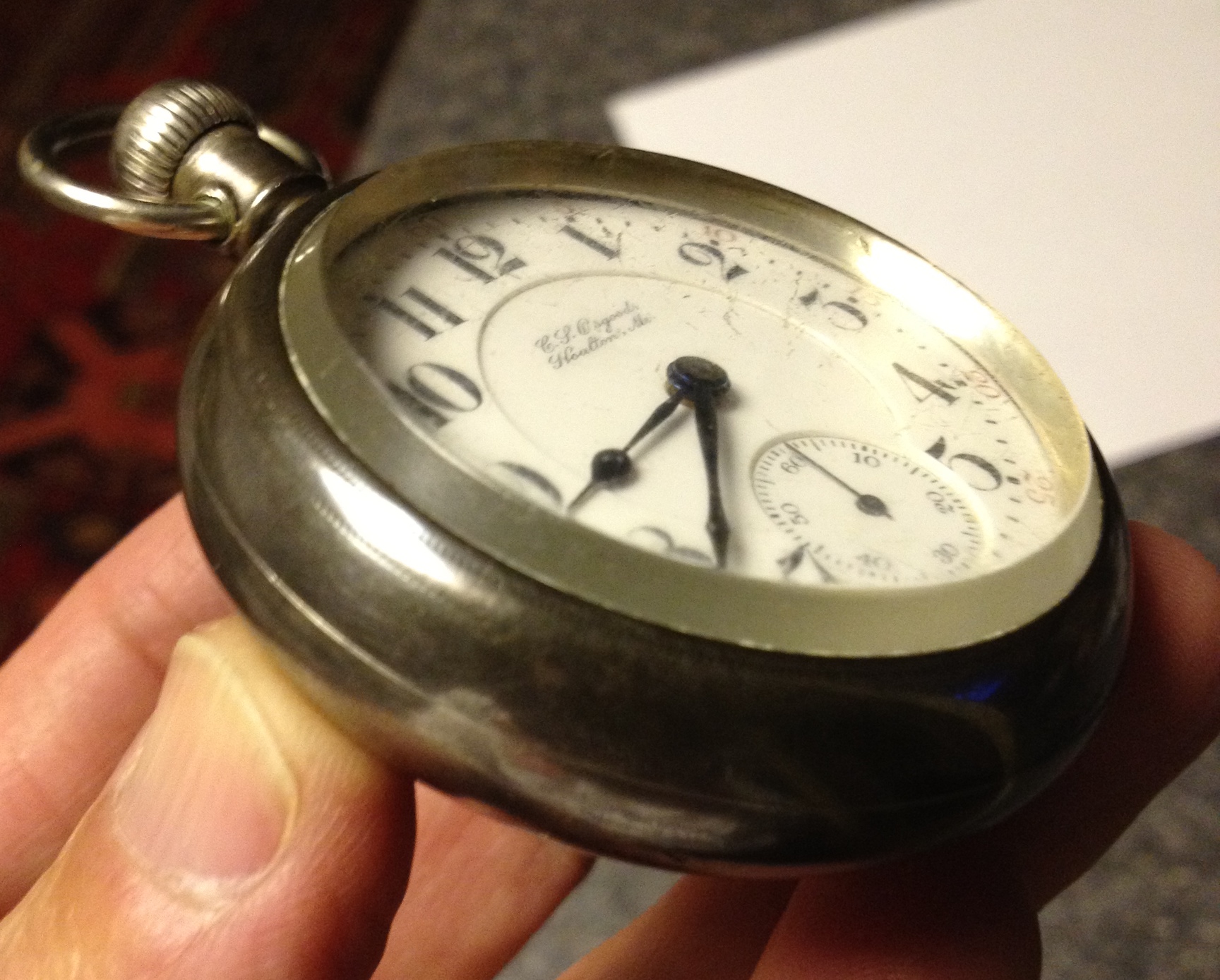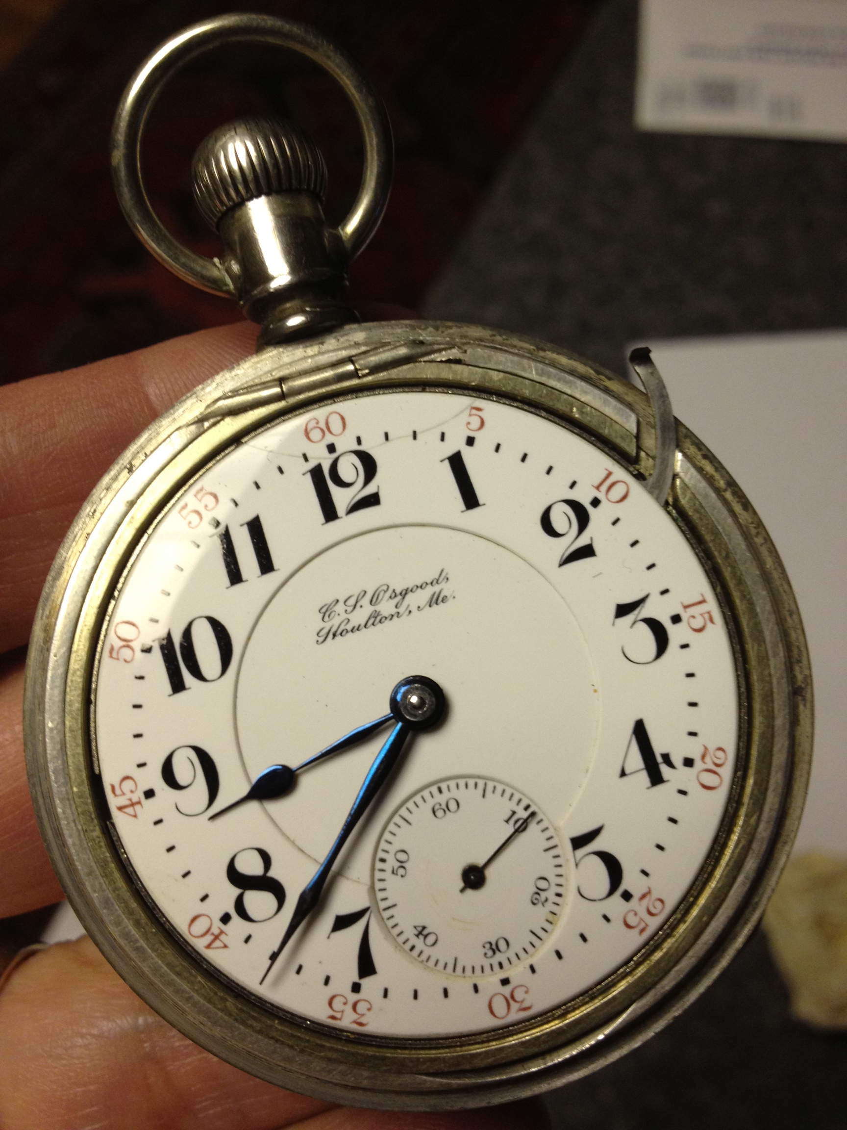 I did the job. It turned out far better than I expected it would. For the price I charged him, I didn’t replace the balance staff, so it was not possible to poise the balance wheel, but it now runs true and flat, and has been within two minutes in the last week. Not good enough if the job had come to me originally, or if the watch was being added to my collection, but good enough under the circumstances. I turned out rather well. I charged him $300.00 (Cdn.).