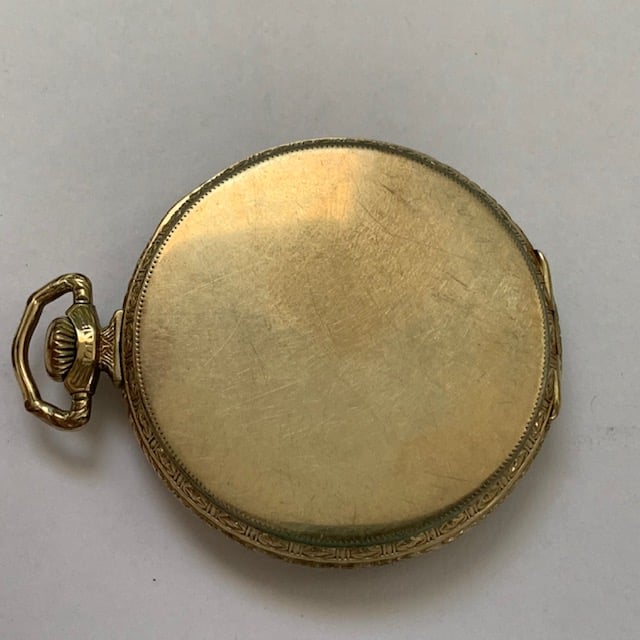 Gold colour cases are usually, gold filled, rolled gold plate, or electroplated. Your 25 year case is gold filled which means that about 5% (1/20th) of the weight of the case is hard gold alloy. 95% would likely be brass. GF and RGP material is produced by fusing a thin sheet of karat gold alloy to a thick sheet of base metal. The resulting block of metal is run through a rolling mill and annealed as many times as necessary to end up with a sheet of metal (still 5%gold) of the desired thickness. Punch presses form the sheet into components of the desired shape, and the item (watch case) is finished. RGP is formed the same way, but this material is 1/30th hard gold alloy.