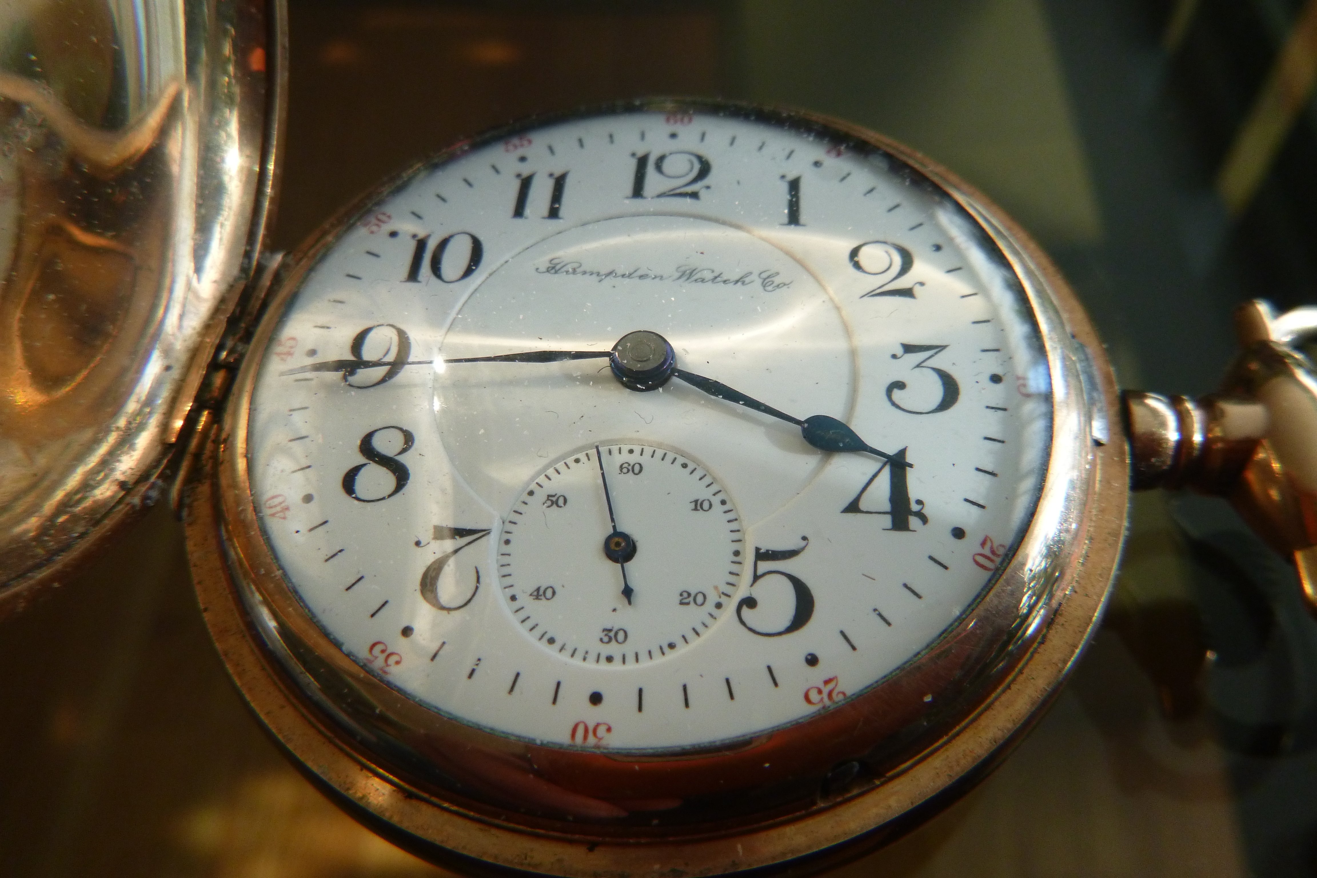 Is the movement in your railway Special marked Hampden, or Dueber? Indeed, there aren’t many of this model floating around. Peculiar that it is a railroad grade movement, but by the time this one was made, Roman numerals and hunter cases where no longer railroad standard. This one was likely for a non-railroader who was prepared to pay for a watch of exceptional quality. It looks to be in superb condition. A recent acquisition?