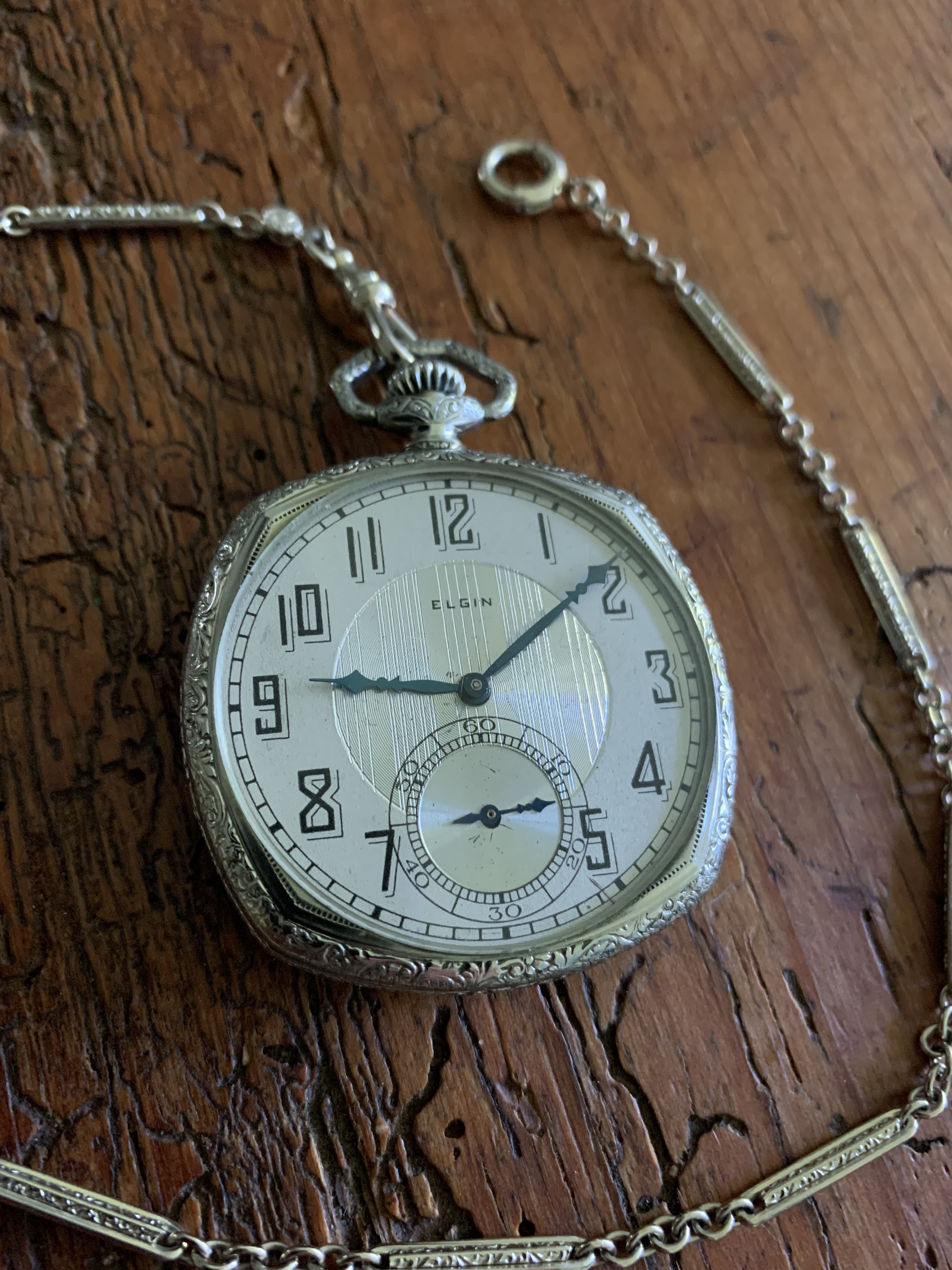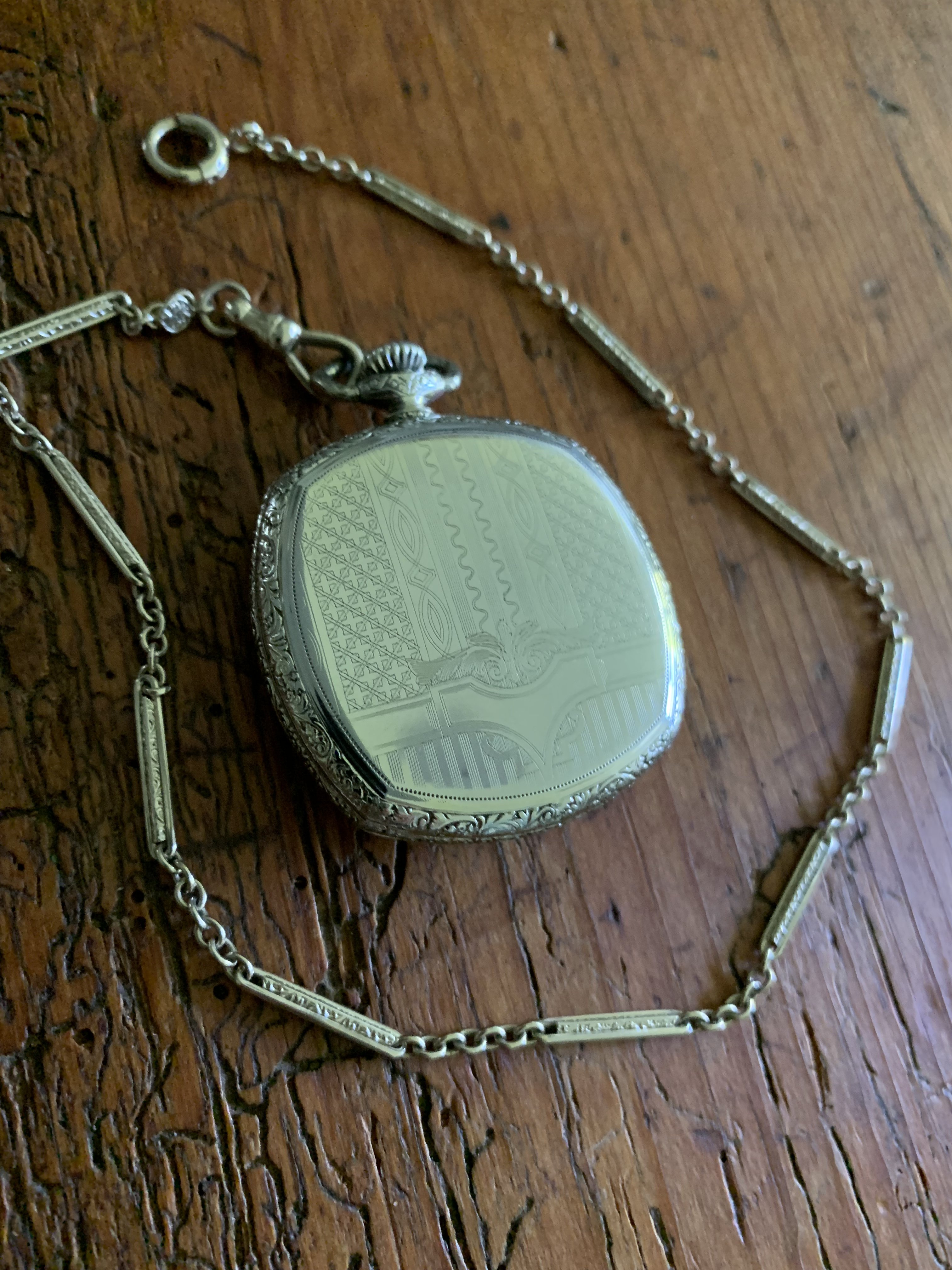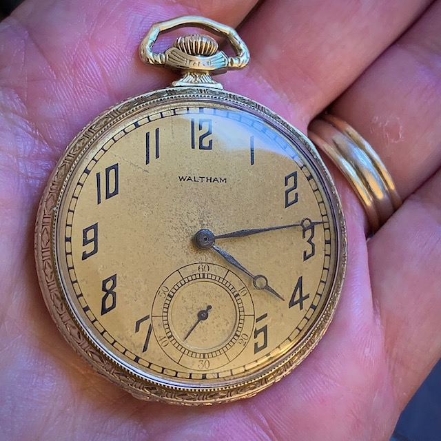 I won’t comment on the abilities of the tech who did the job, I’ll let a picture of my Waltham Colonial exhibit what your watch should have looked like with a thorough conditioning and cosmetic facelift.