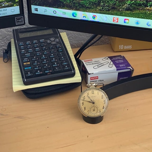 The work done during rehab was not as extensive as I might have imagined. The mainspring and balance jewel were replaced, and the missing screw was replaced by a newly fabricated one (I'll have to ask the watchmaker about what appears to be a newly missing screw). The hour and minute hands were successfully removed, cleaned, and re-installed. The second hand did not survive -- it disintegrated during removal, so what we see is a replacement and I think they did a good job on selection. An attempt was made to source a mineral crystal that would work with this watch but the search was not successful; a modern acrylic crystal was installed instead.