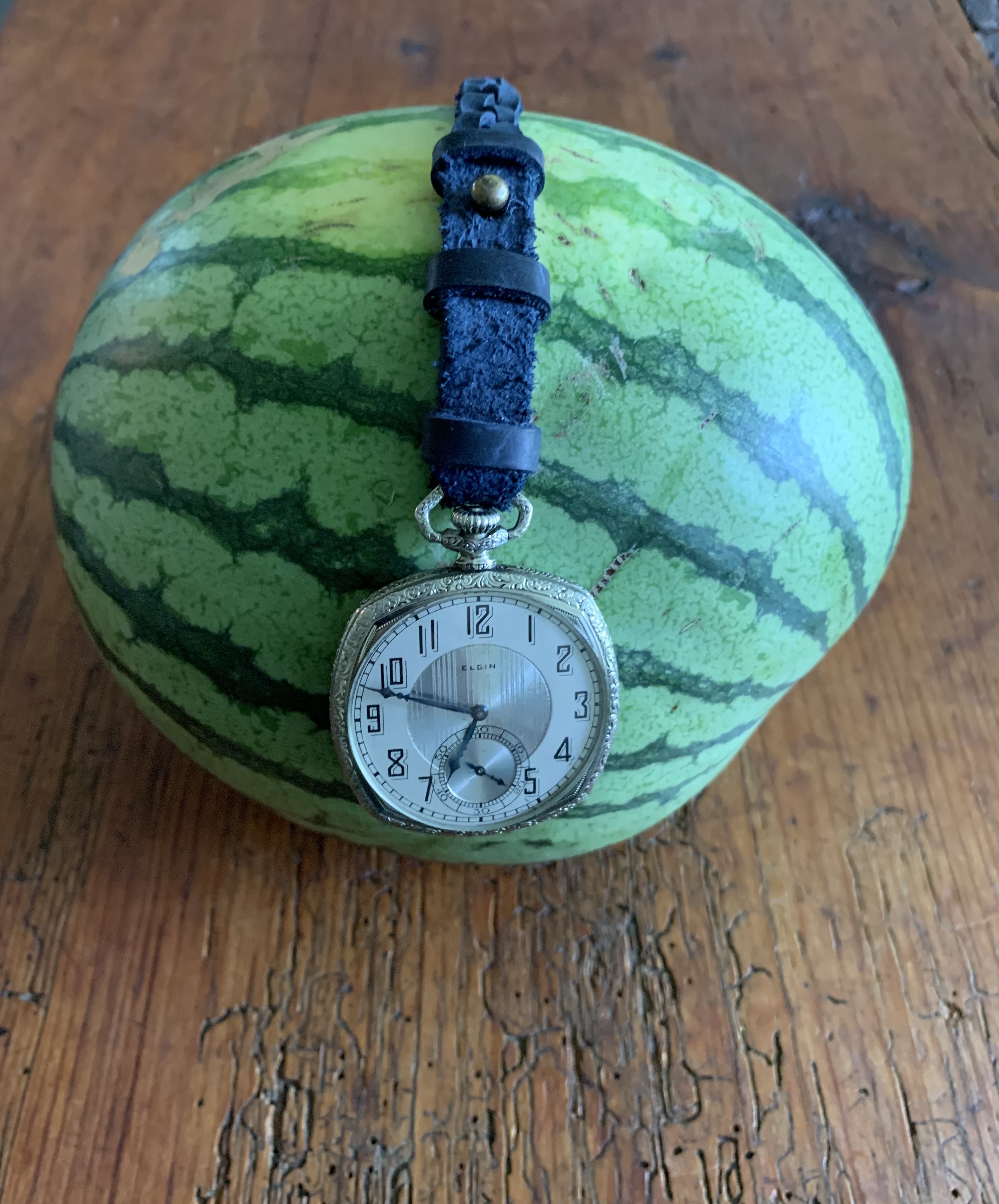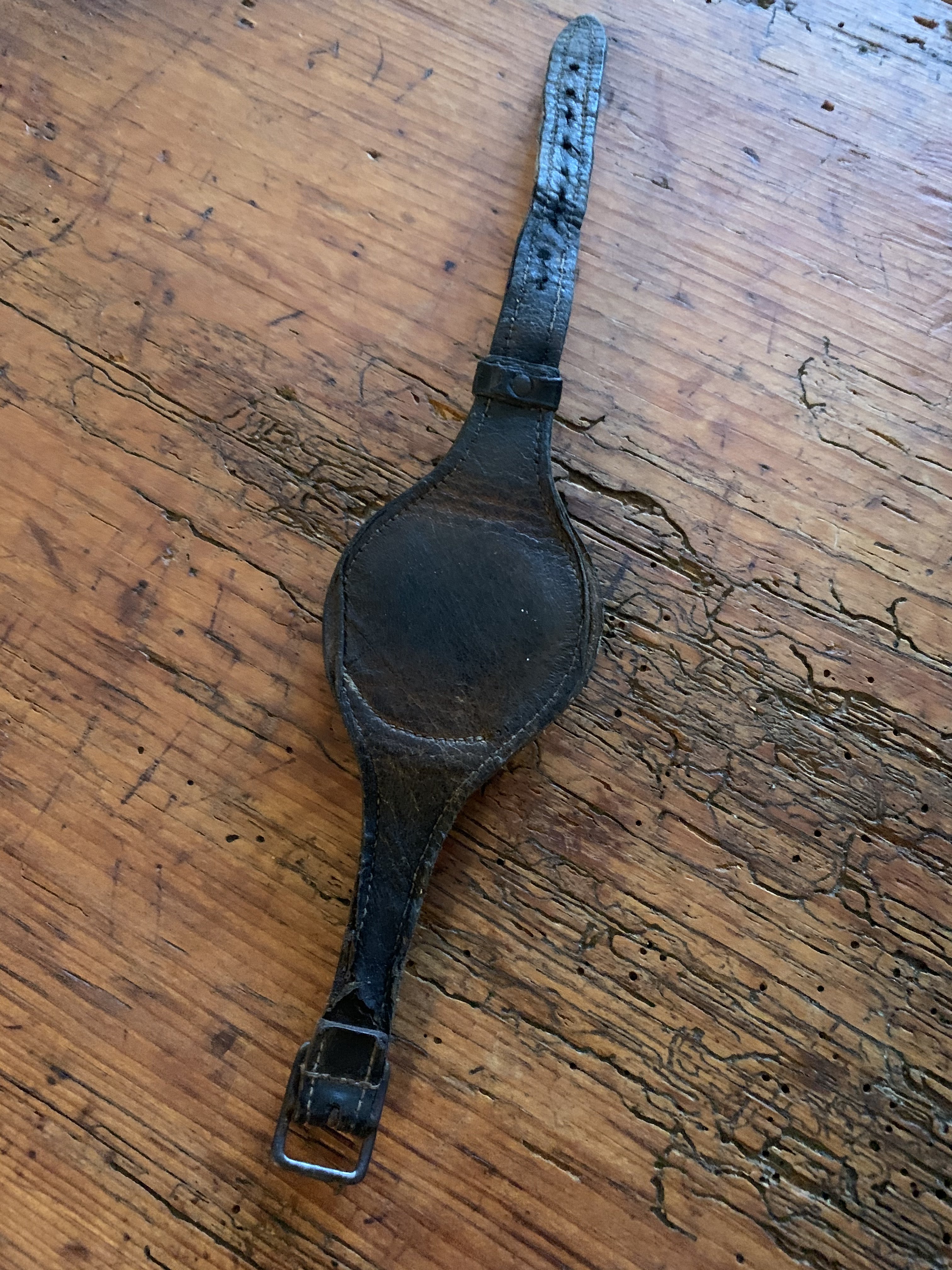 Annie's Dad, who was a forester, had a leather one on his belt that flipped down to open so he could see the time. The watch was held in the outer cover and secured by a strap and stud when closed.