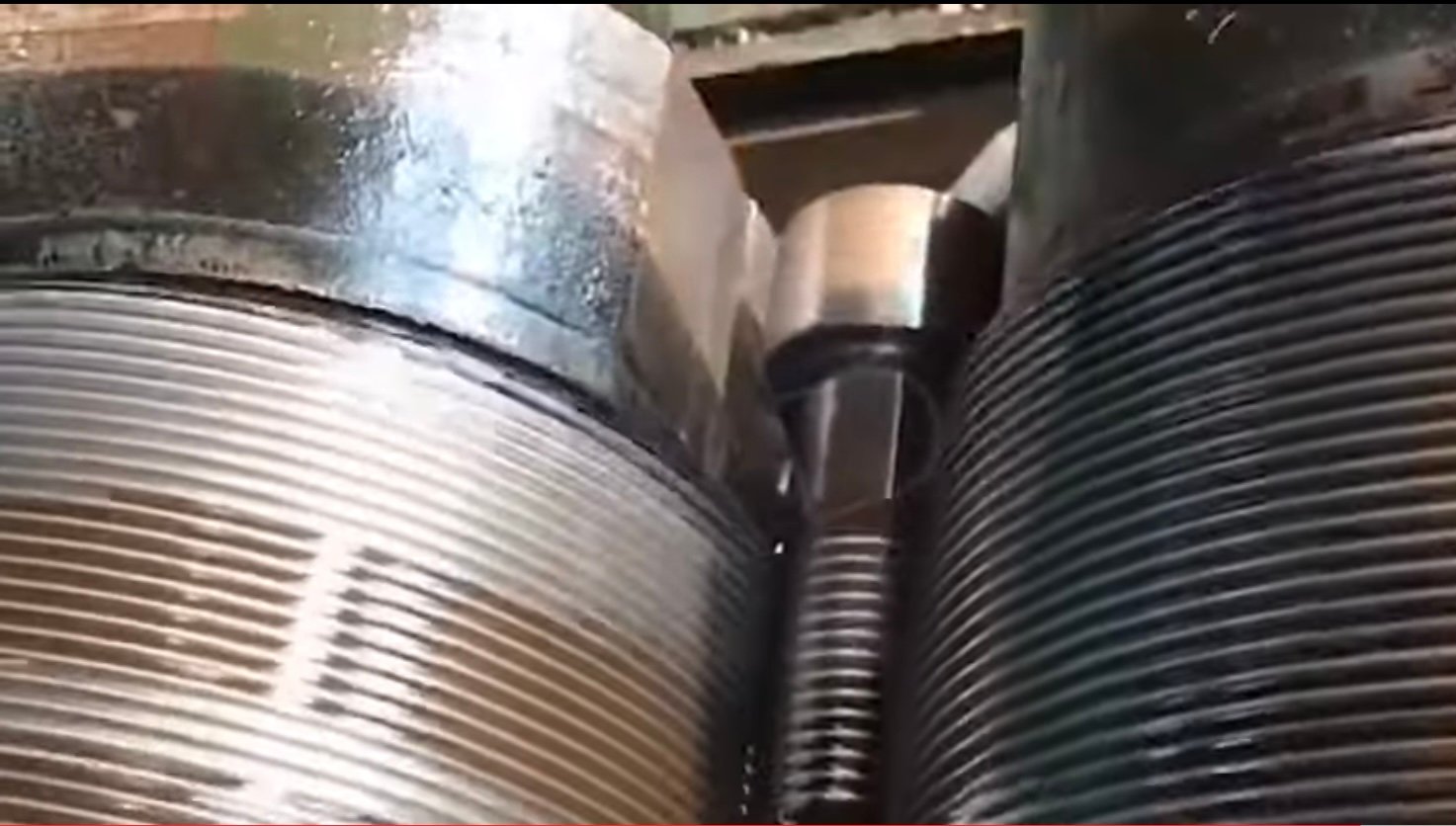 One might wonder how a die could be used to cut the thread because of the “bolster” at each end as indicated by the arrows! I wonder if, instead of a die, a “rolling” process as shown in the second photo might have been used.
