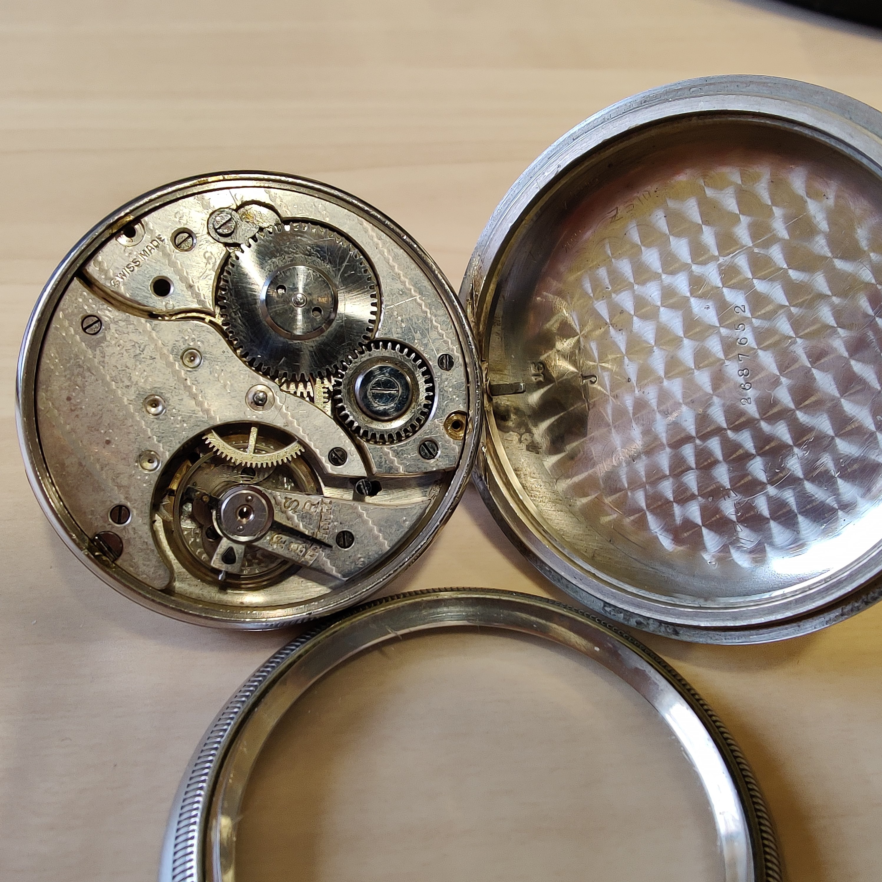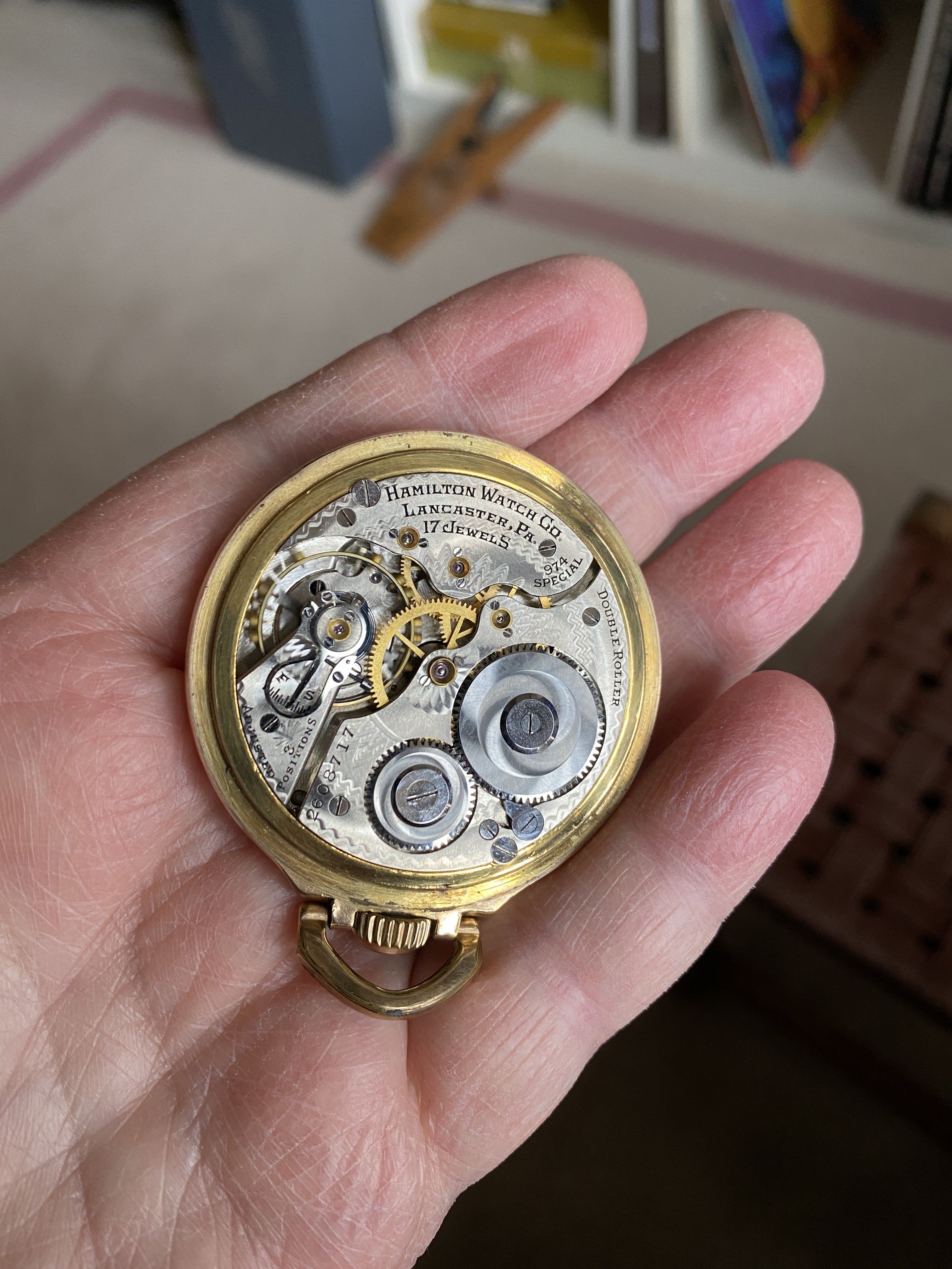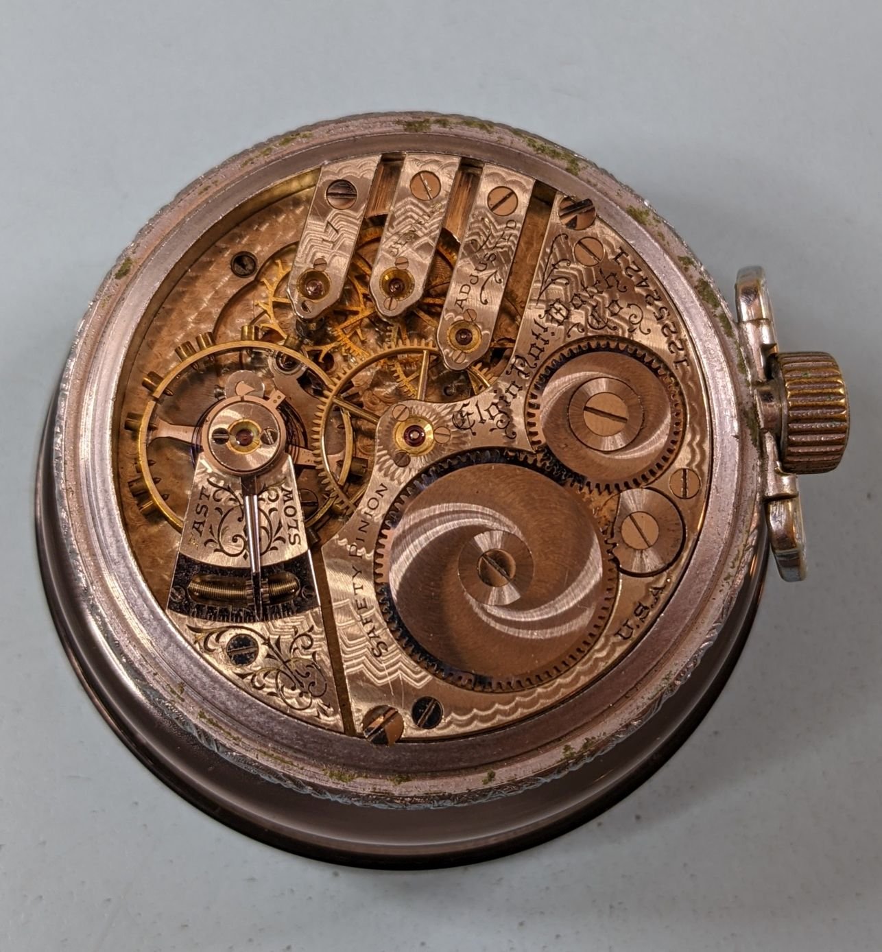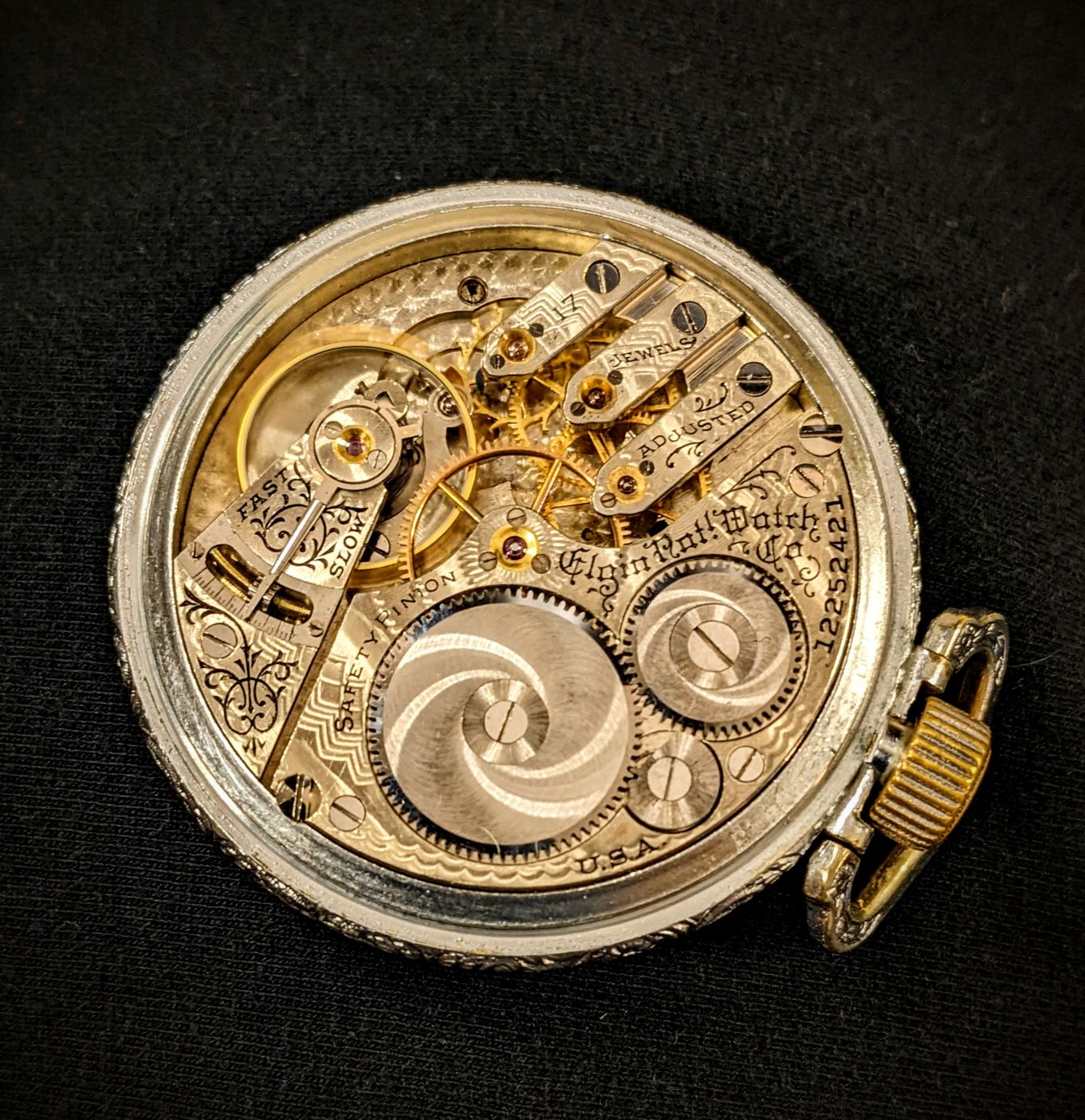 Elgin 241, c.1906. Not running, but good balance staff. See if a service can breathe some life back into it...