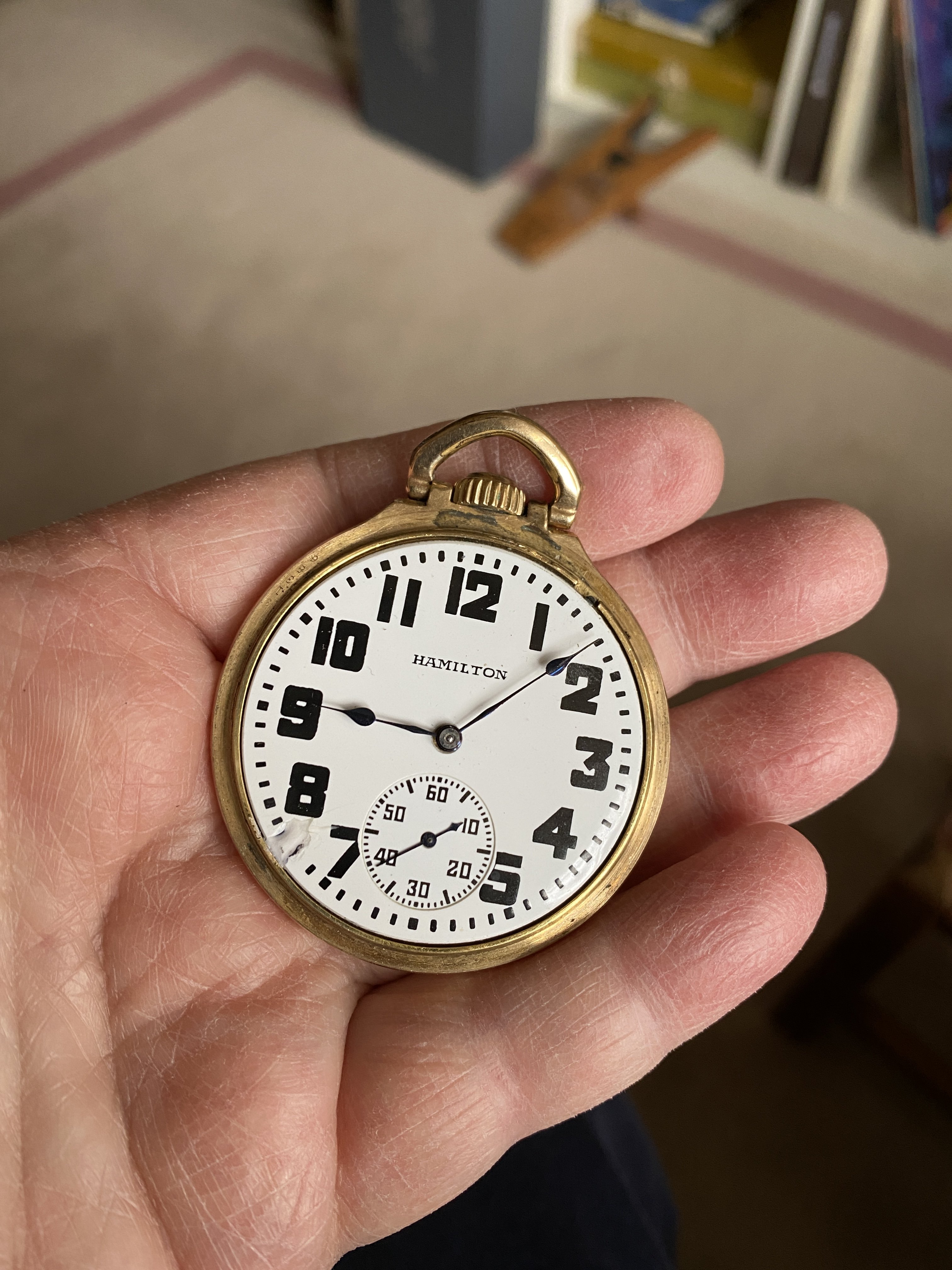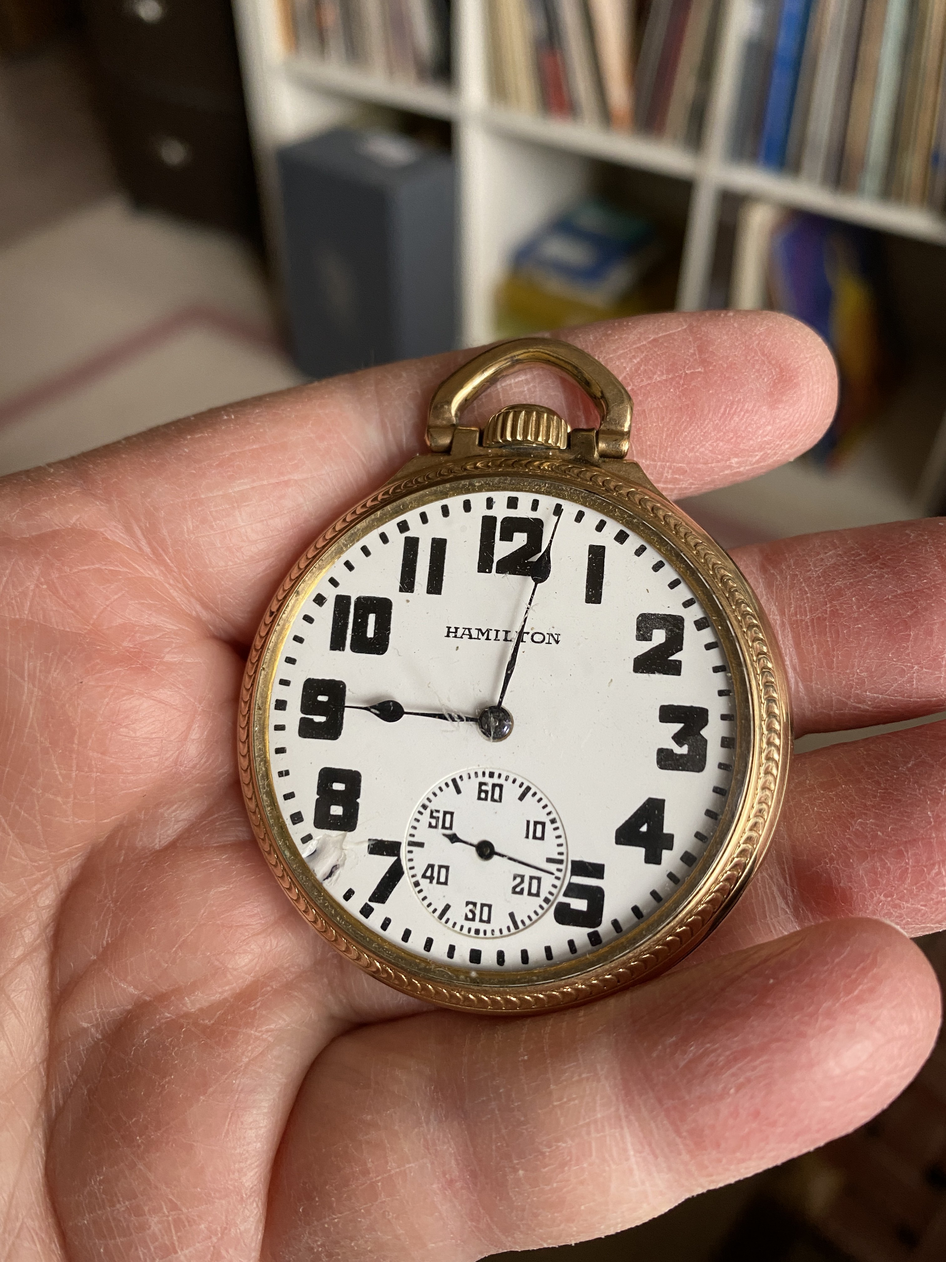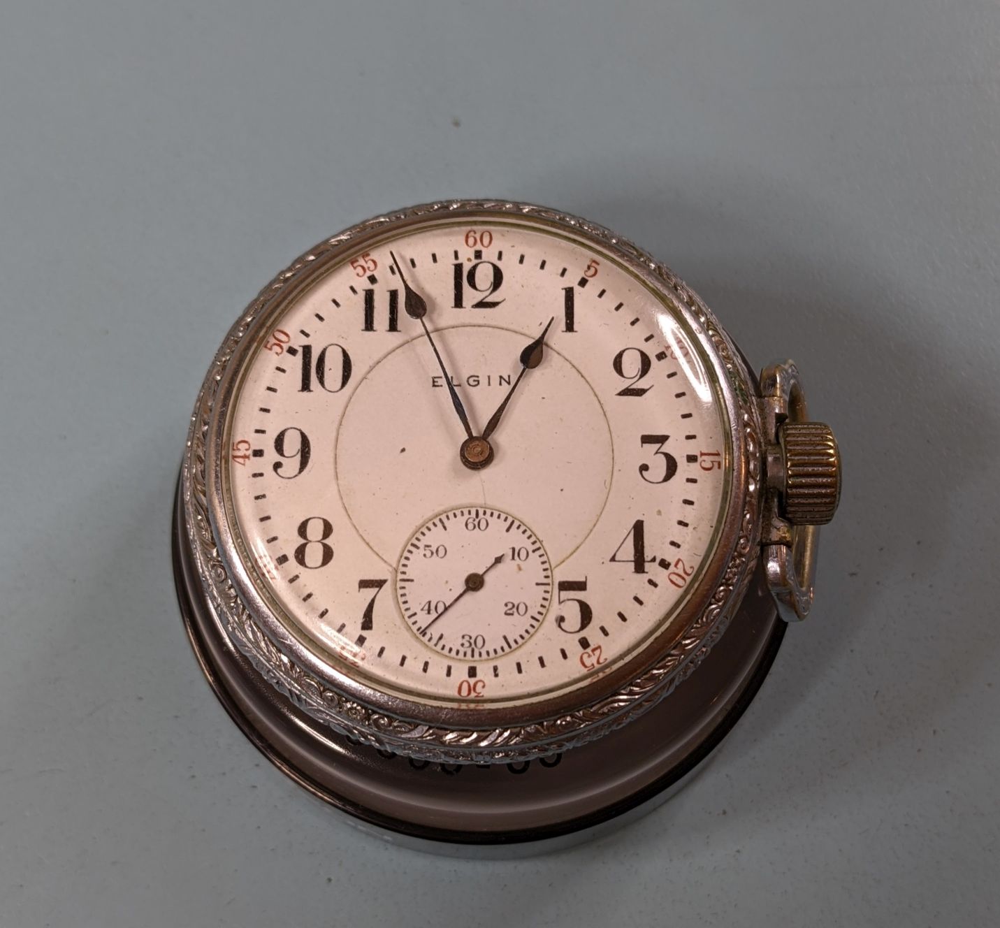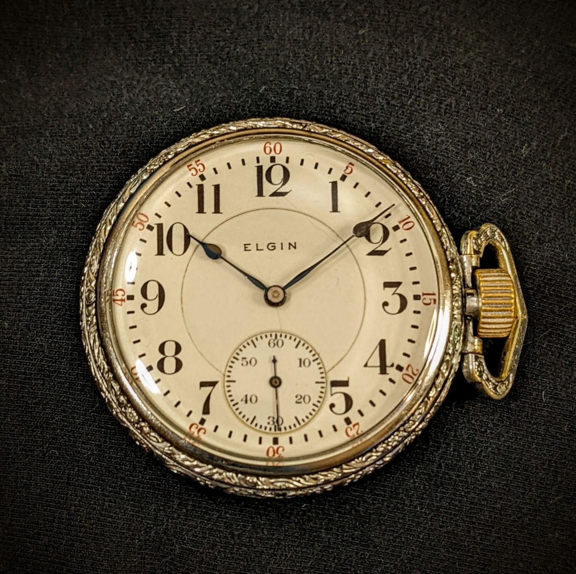 Elgin 241, c.1906. Not running, but good balance staff. See if a service can breathe some life back into it...