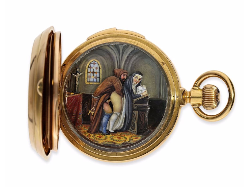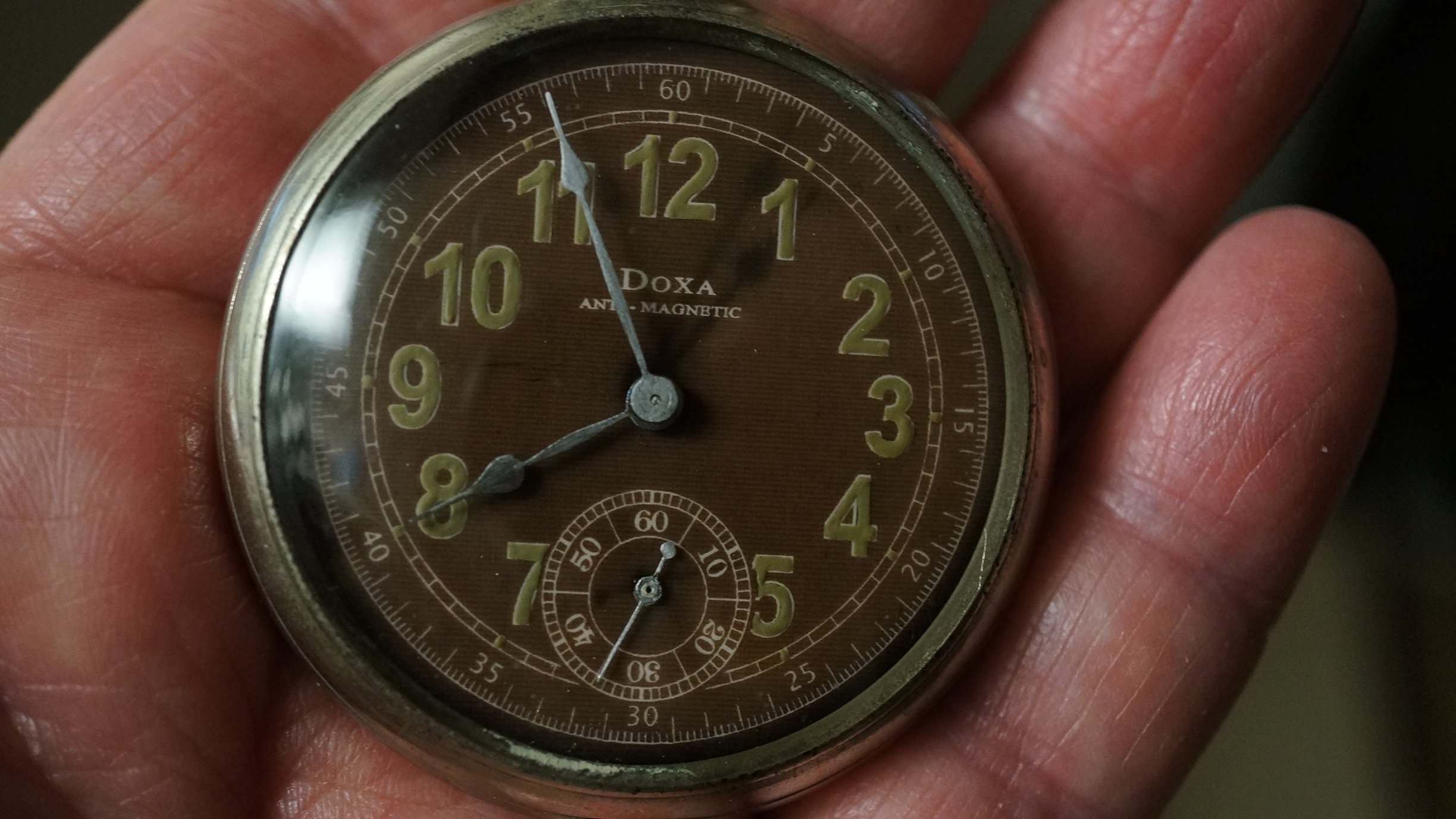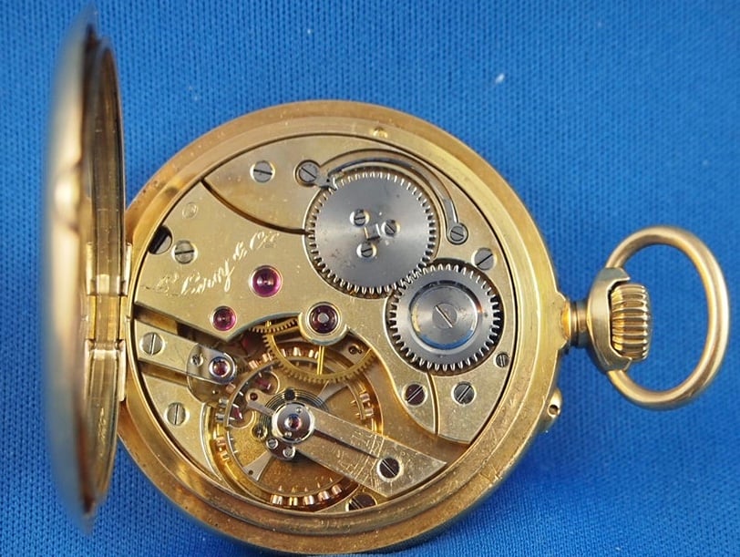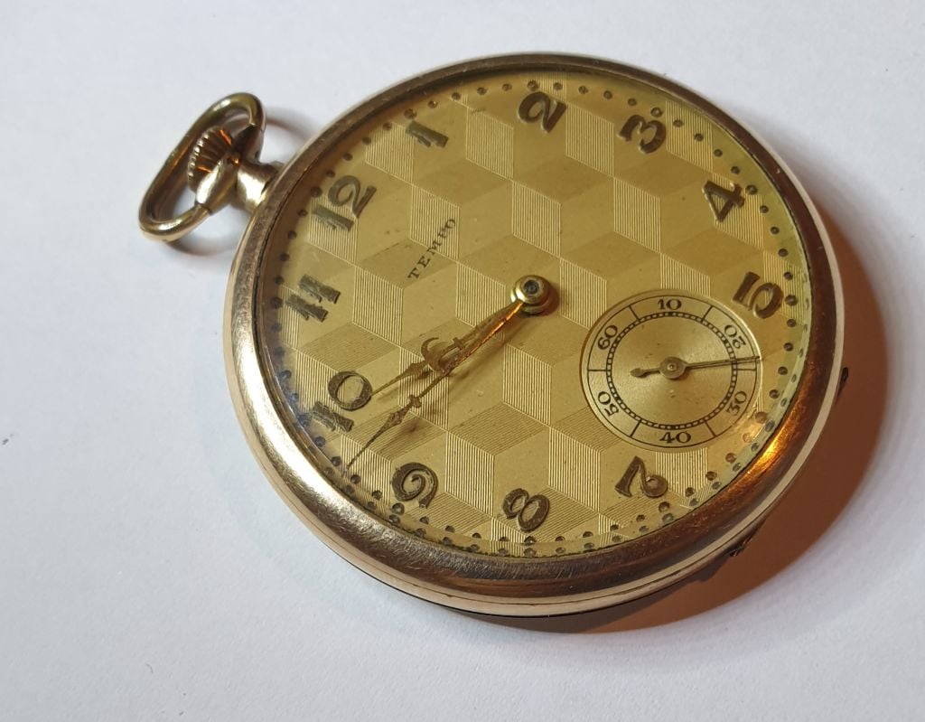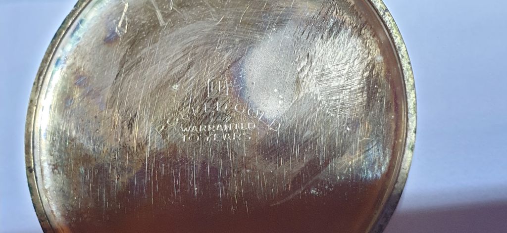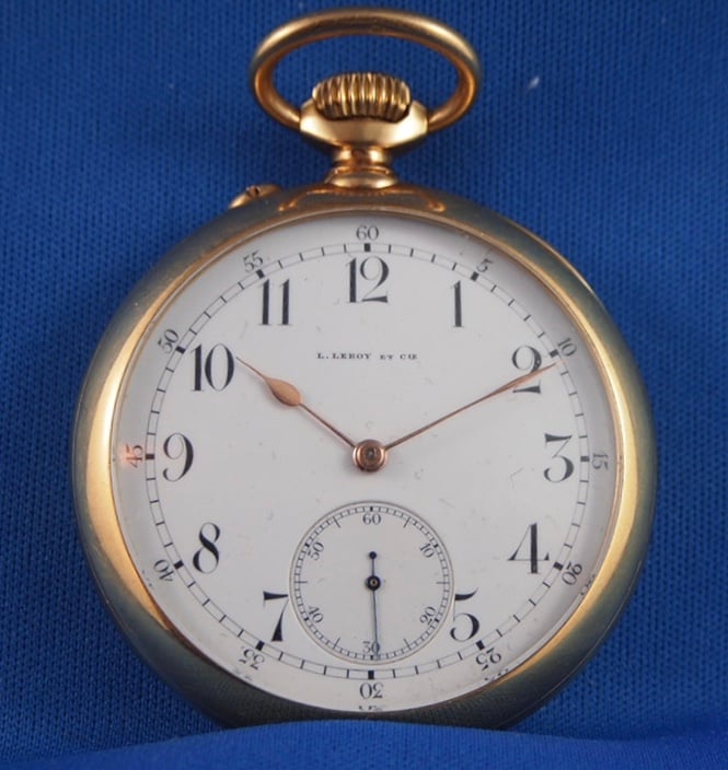 Now, the puzzle. 9 ct gold case, Pin adjustment, Swiss Movement with HJC stamped and a rather unusual face. All my life it has always been stored in a leather case with a French Jewellers address in Paris.