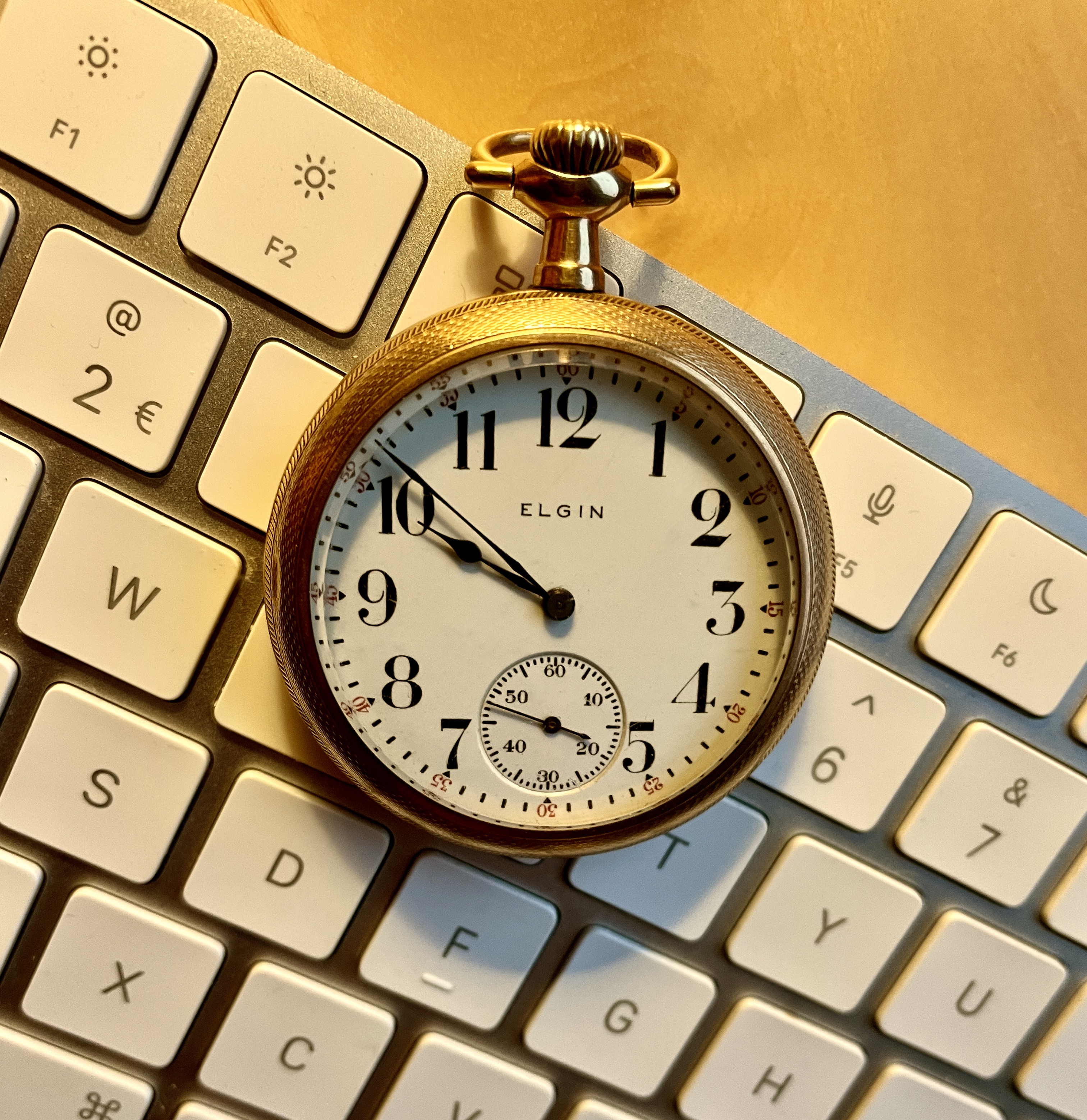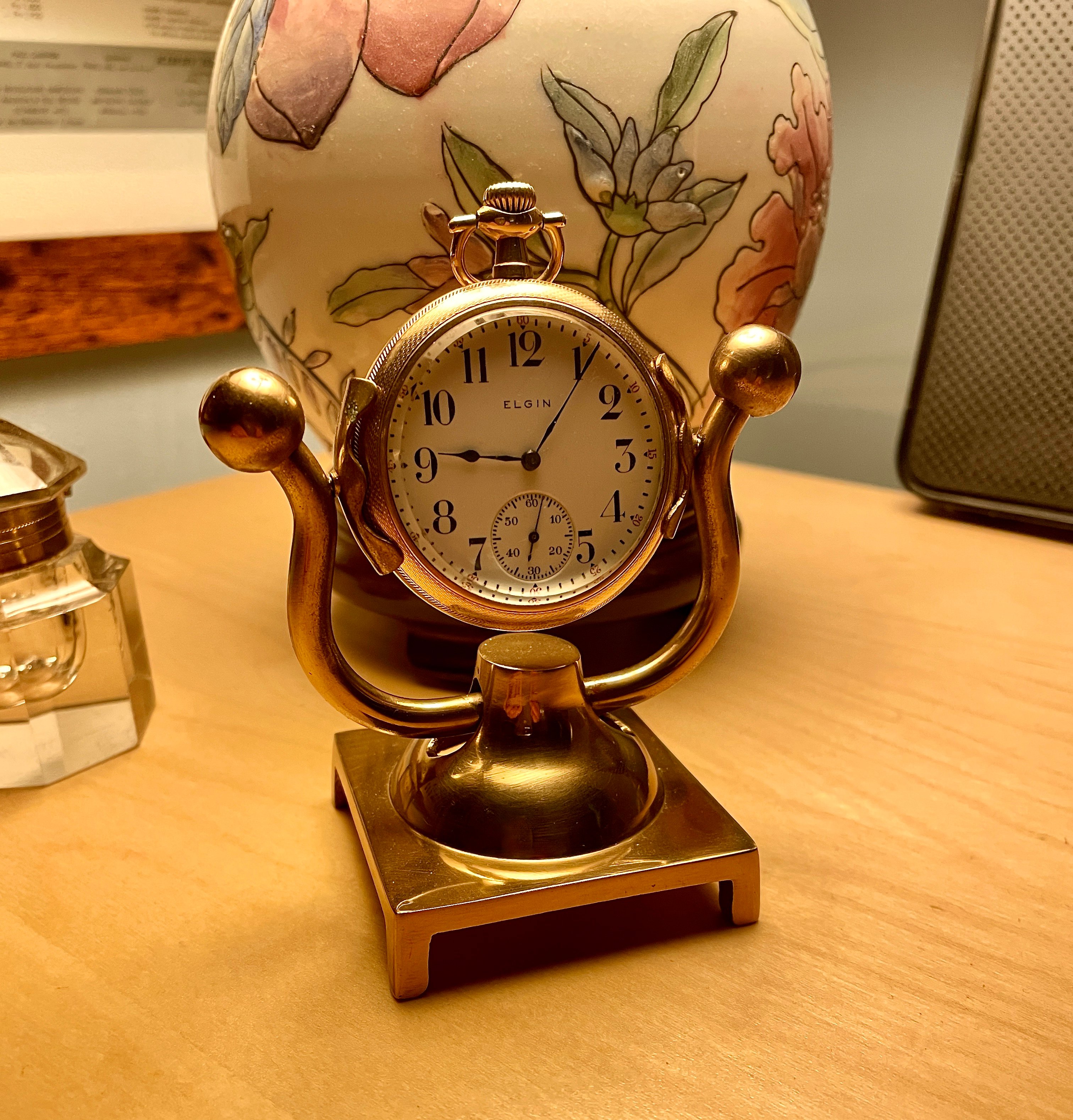 There really is no reason that you should feel you have to apologize for showing your Elgin, any time it pleases you to do so! I don’t recall if you have given us the movement s# so we can check the pocketwatchdatabase site to find out more about it.