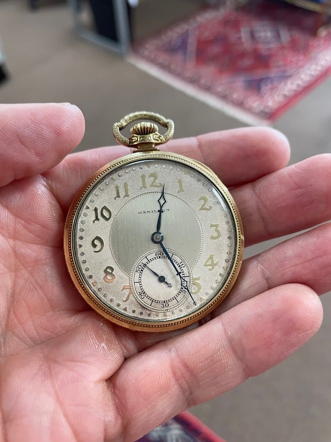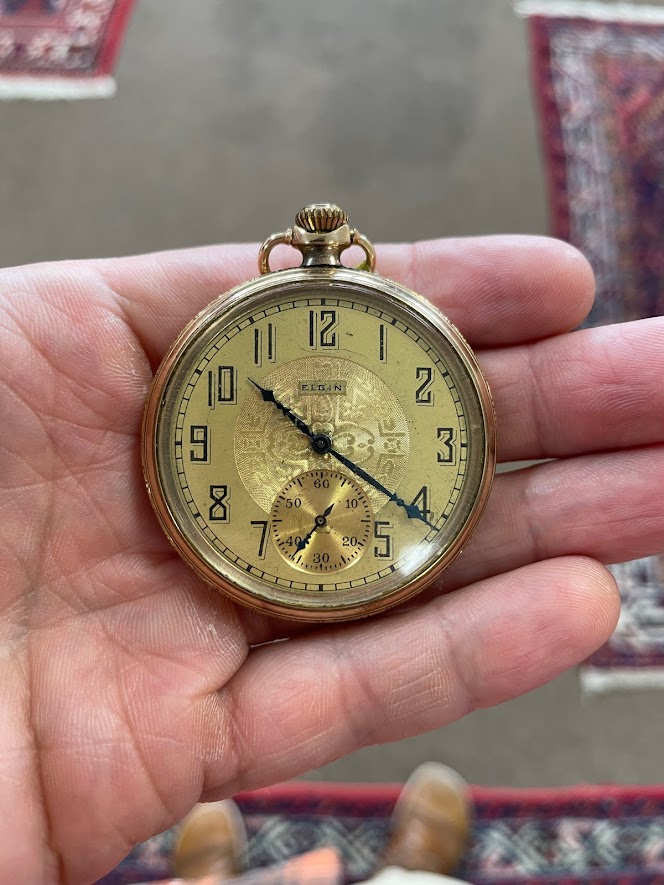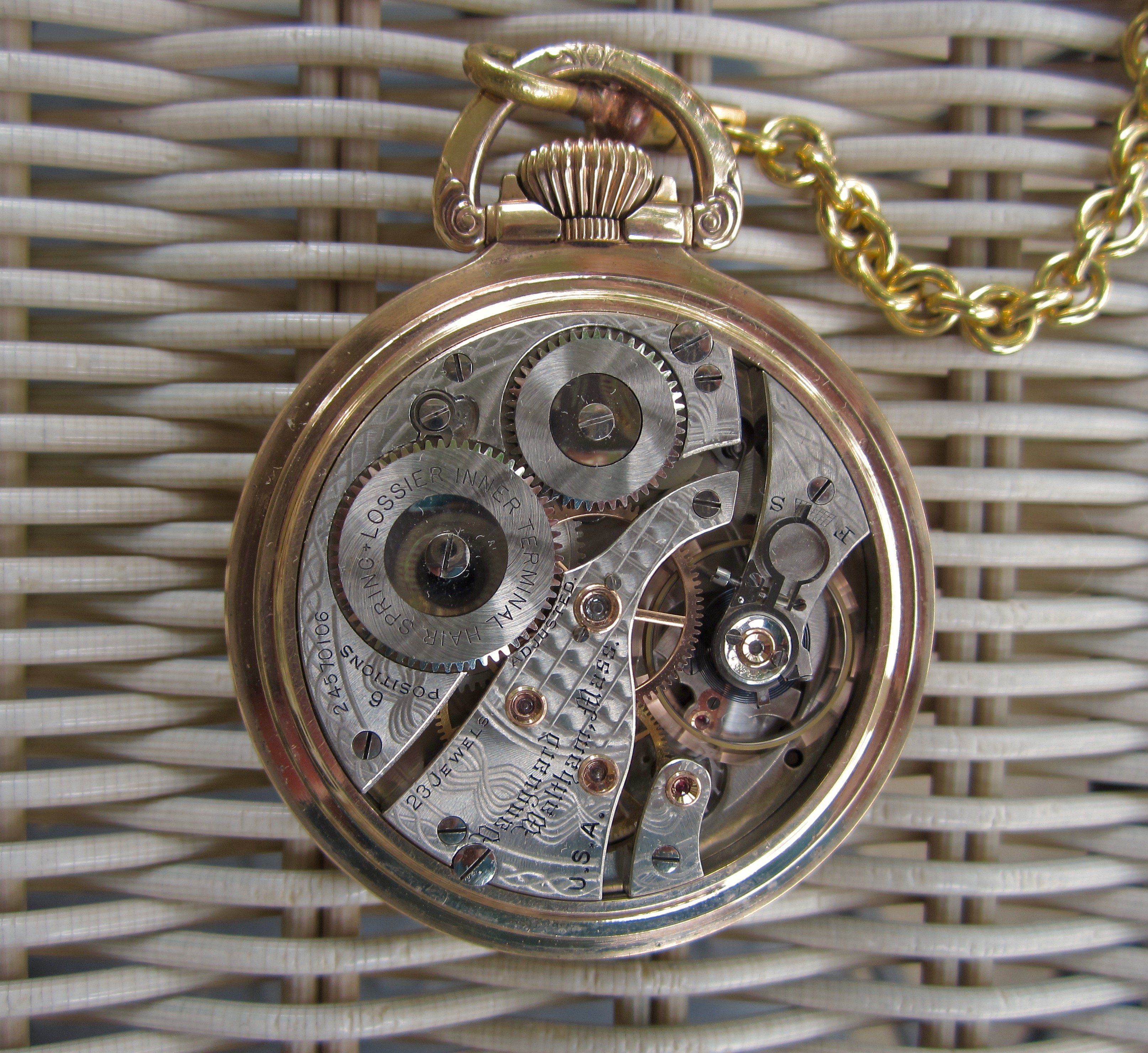 Several years ago I inherited a box of mostly Elgin pockets watches. A couple months ago I dug them out of their resting place to try and get a better look at exactly what each one is, of the 20 some pieces, 2 actually run. This one runs erratically, and surely has not be serviced in a very long time as evidenced by all of the dirt inside the movement.