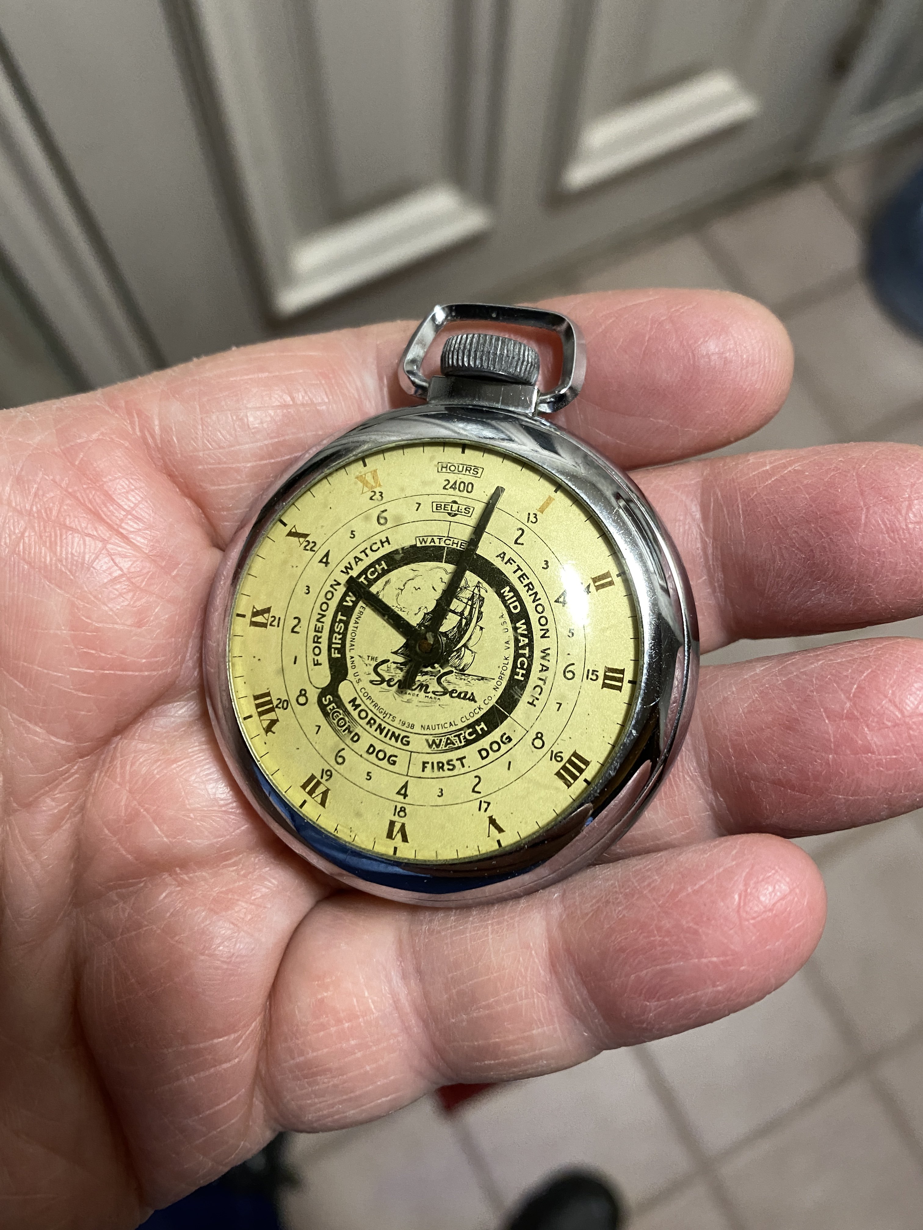Well, I went to my stash to see what I had. Not much as it happens! But the subject watch surfaced. A good vitreous enamel, 24-hour dial, a rough case, and needing some parts, and a bunch work.