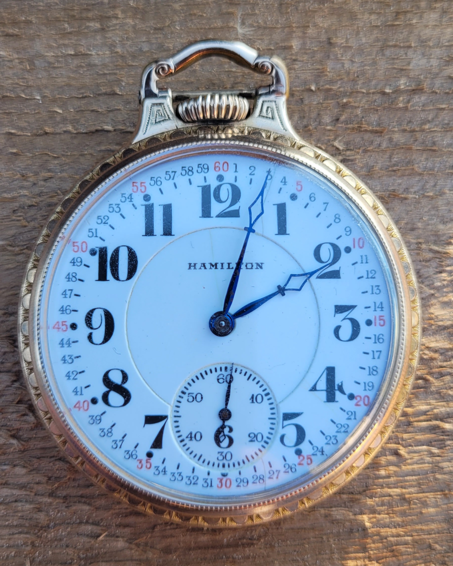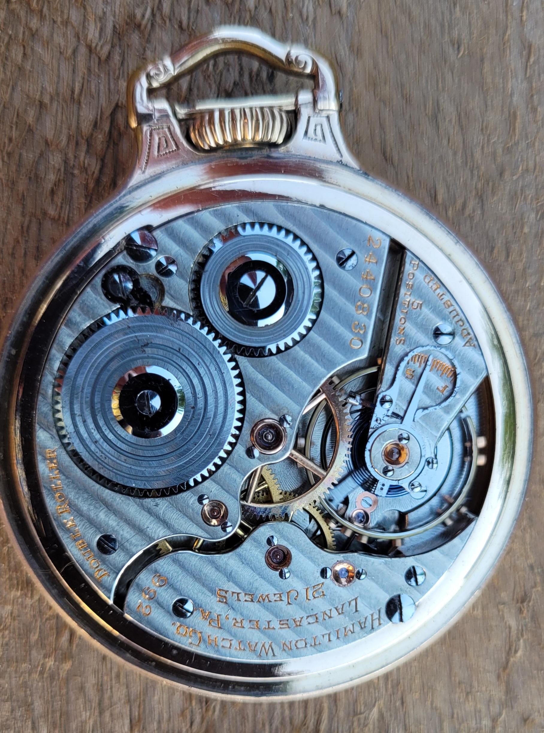 ·In my ongoing endeavours to make a railroad chronometer out of my scrap pile, 15-jewel, 18-size 1911 Elgin, I was finally able to spend some time on Wednesday, adjusting it. About 8:00 pm on Wednesday, I set it to time with my iPad. At 11:00 am on Thursday, it was within 5 seconds. That was a static test. Today, I am wearing it on my @DaveK lanyard, and will continue to do so for a few days.