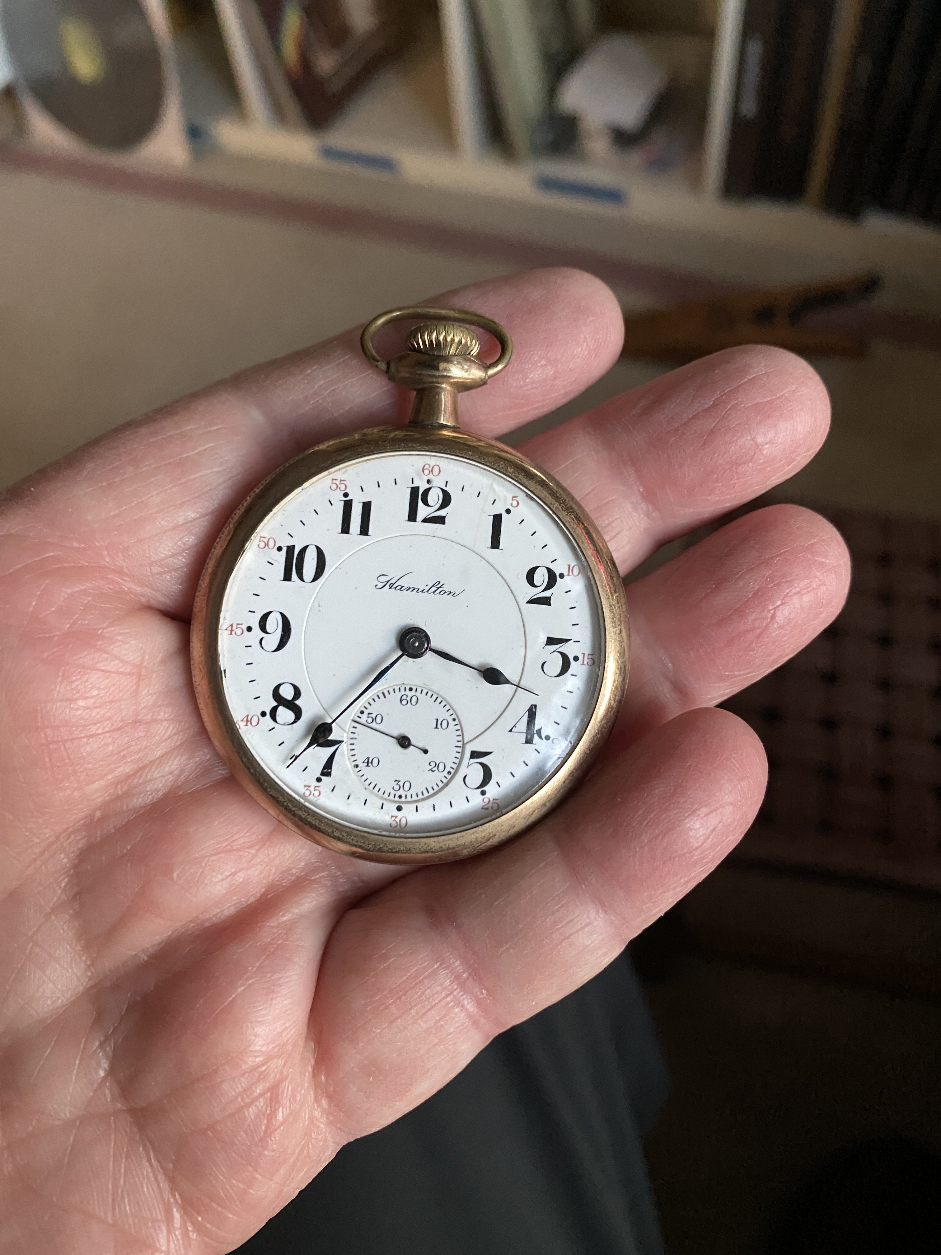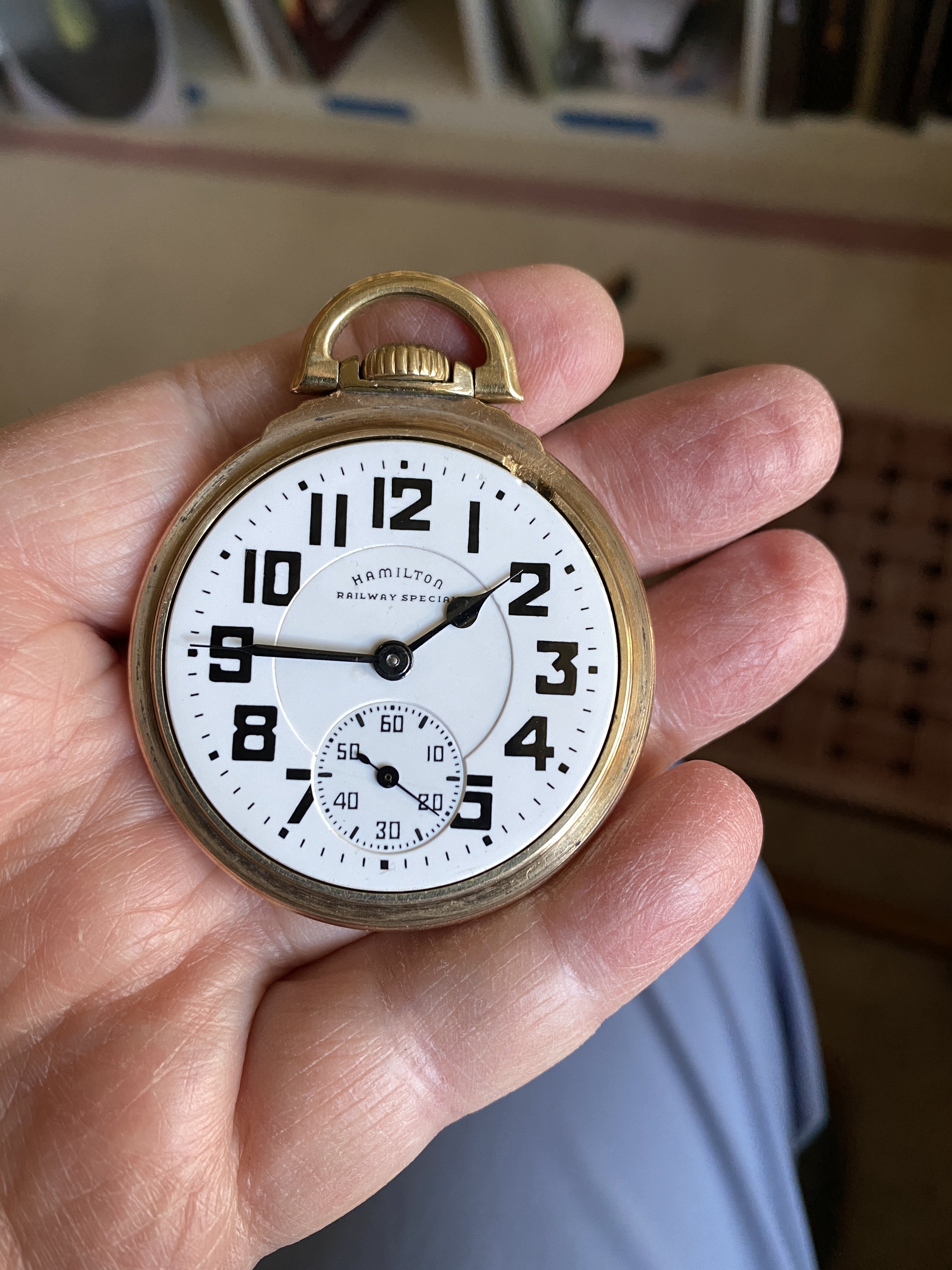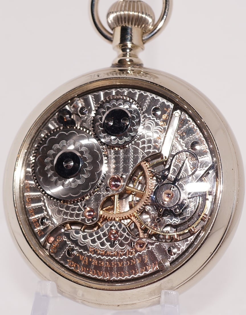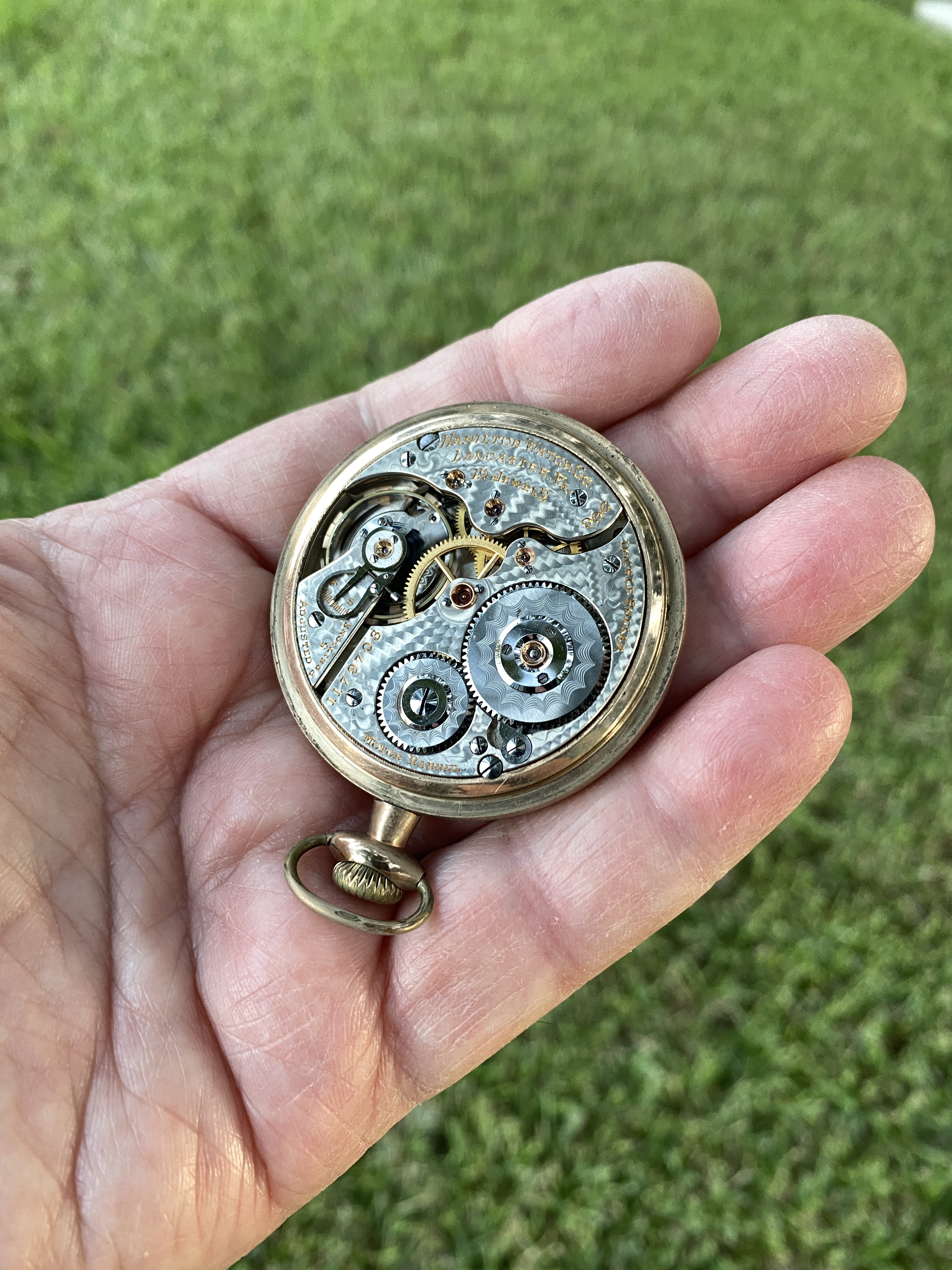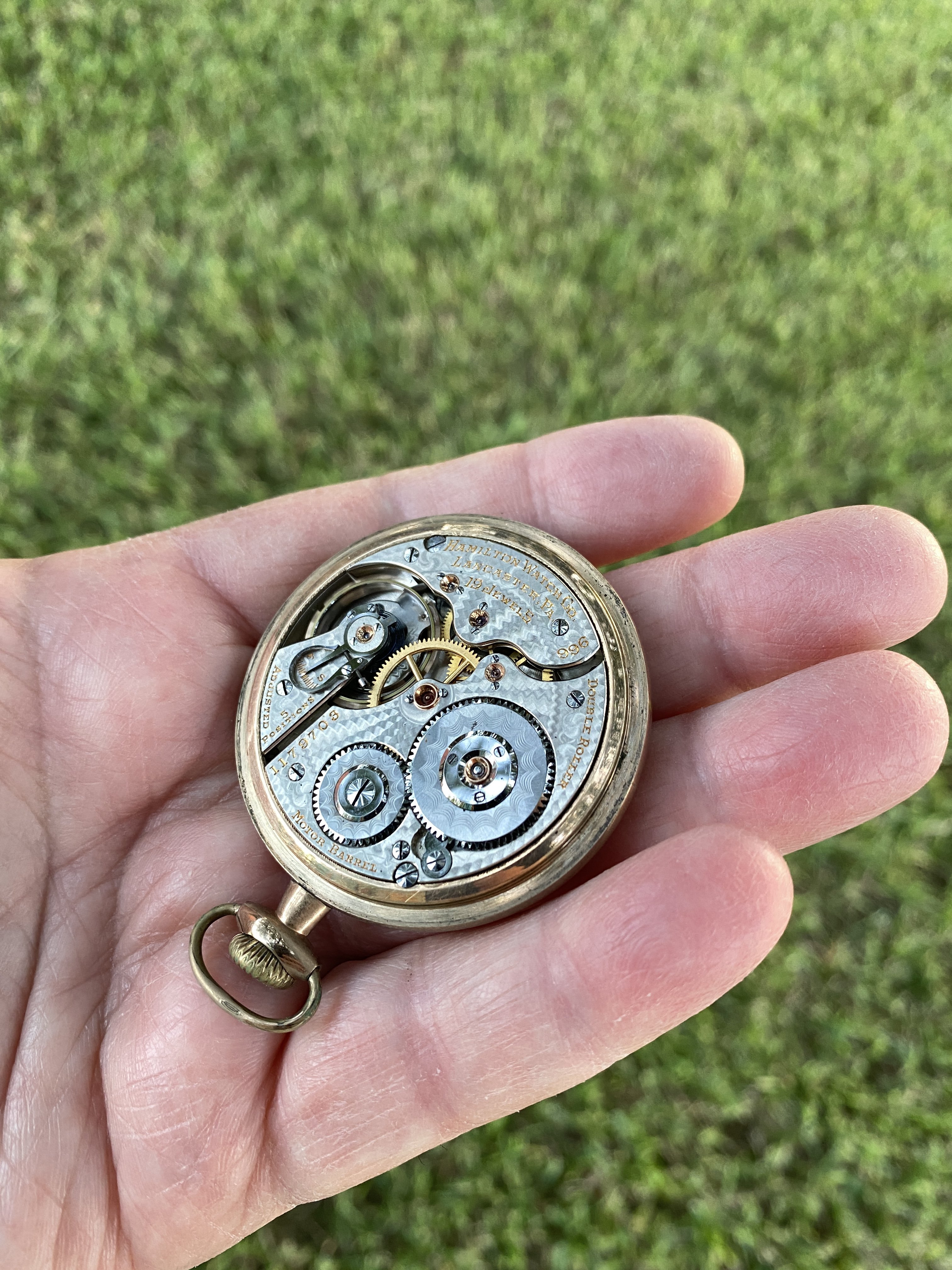 ·If you try to improve the worst areas, you run the risk of defacing the areas that are well preserved. Check with your shop and see what he says. But if it were mine, I’d leave it! (My Waltham Colonial from 1937 sends salutations.) mine came to me, complete with its original linen sachet with the Keystone Watch Case Co., label, the vinyl display case, and outer shell. It appears Mr. Kobel who received it as a presentation, never used it!