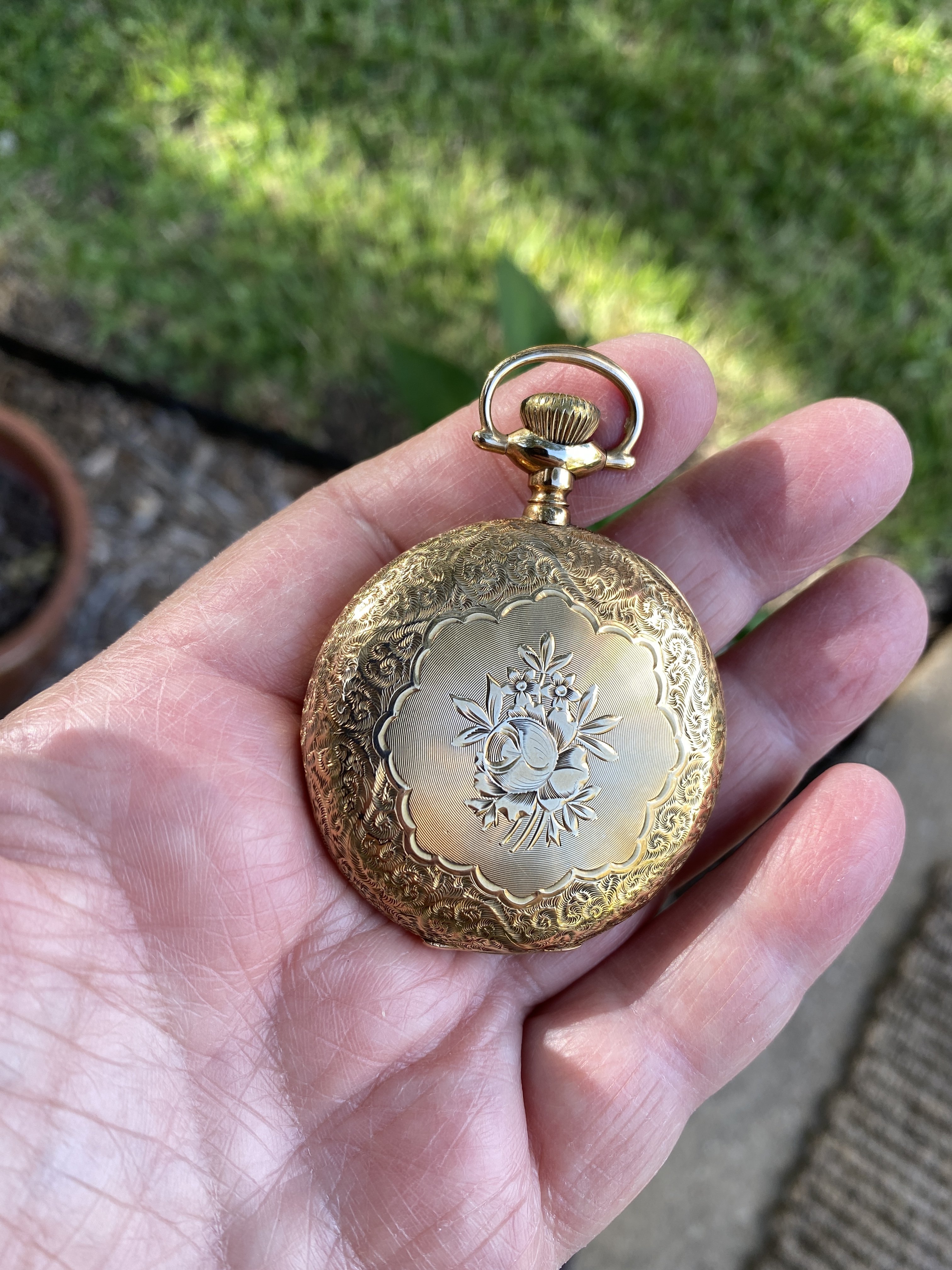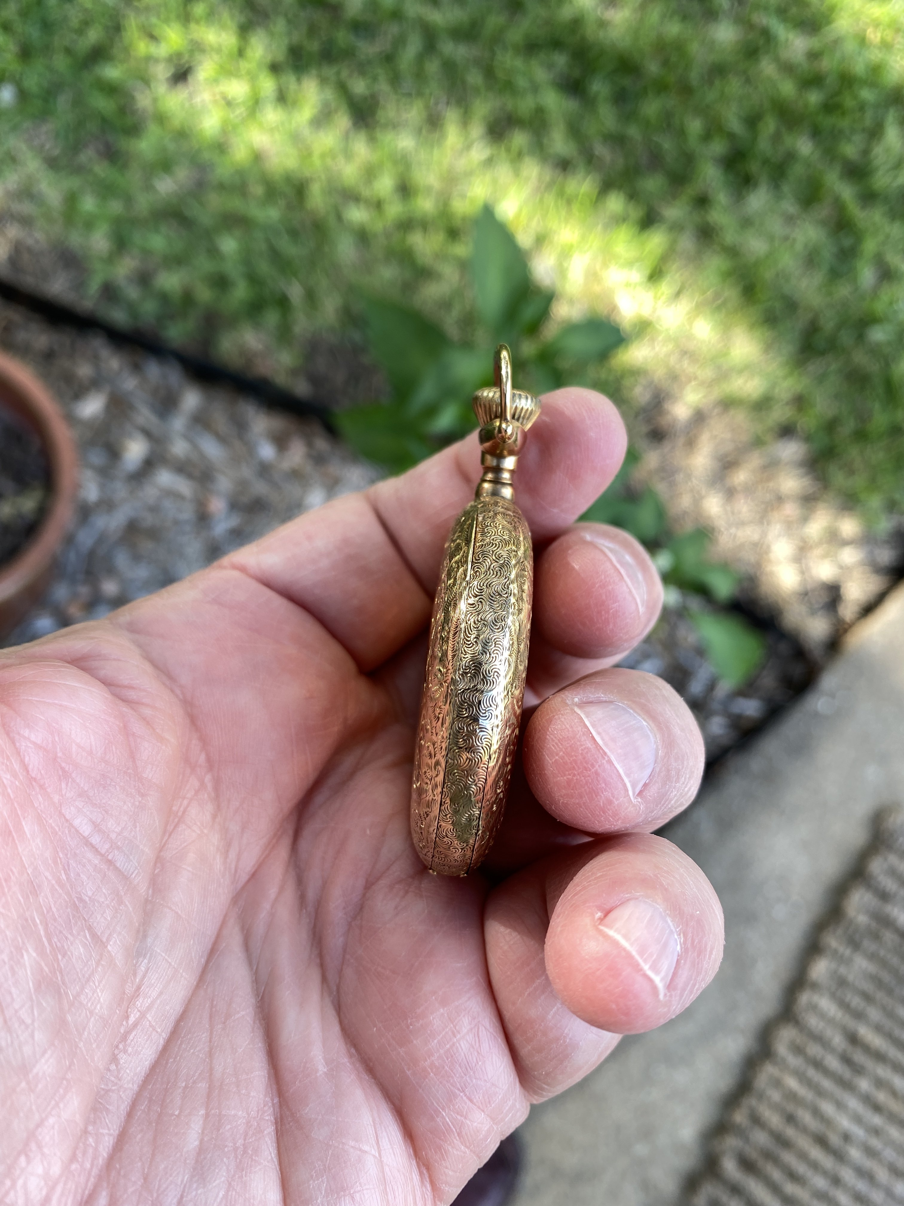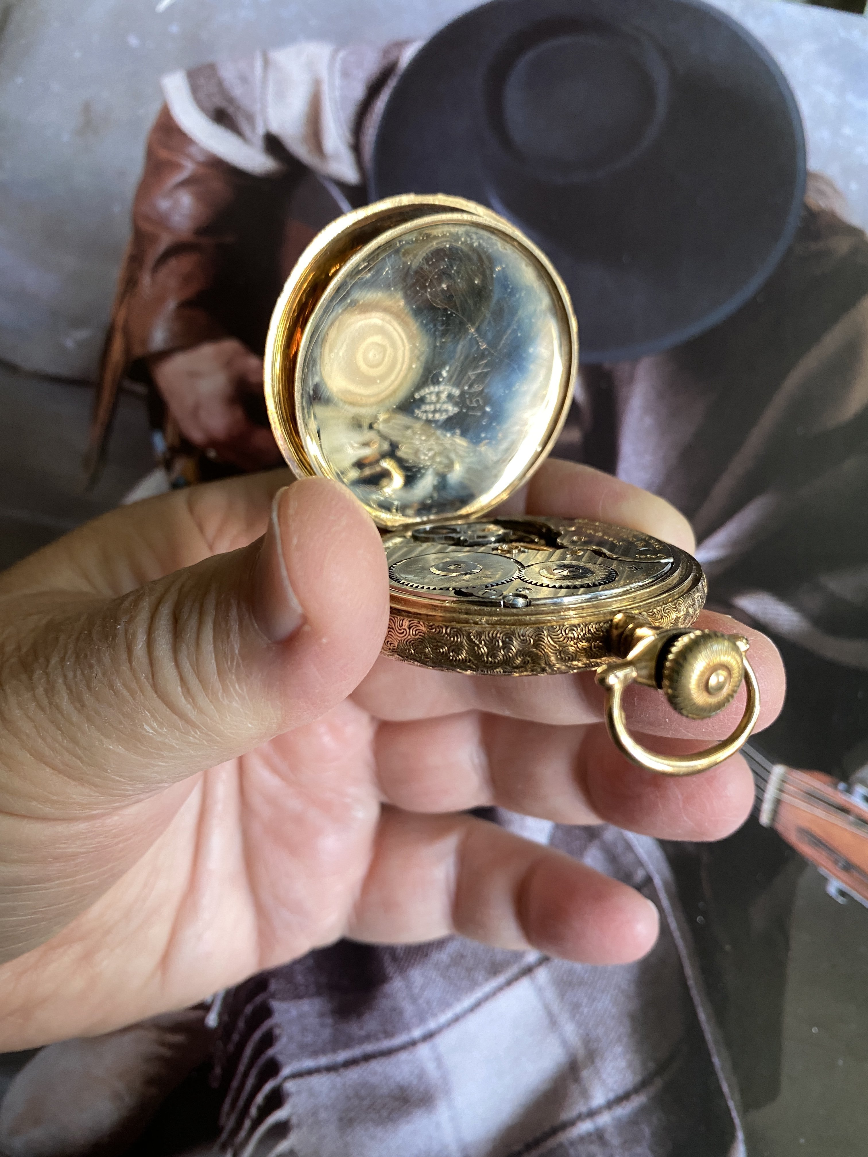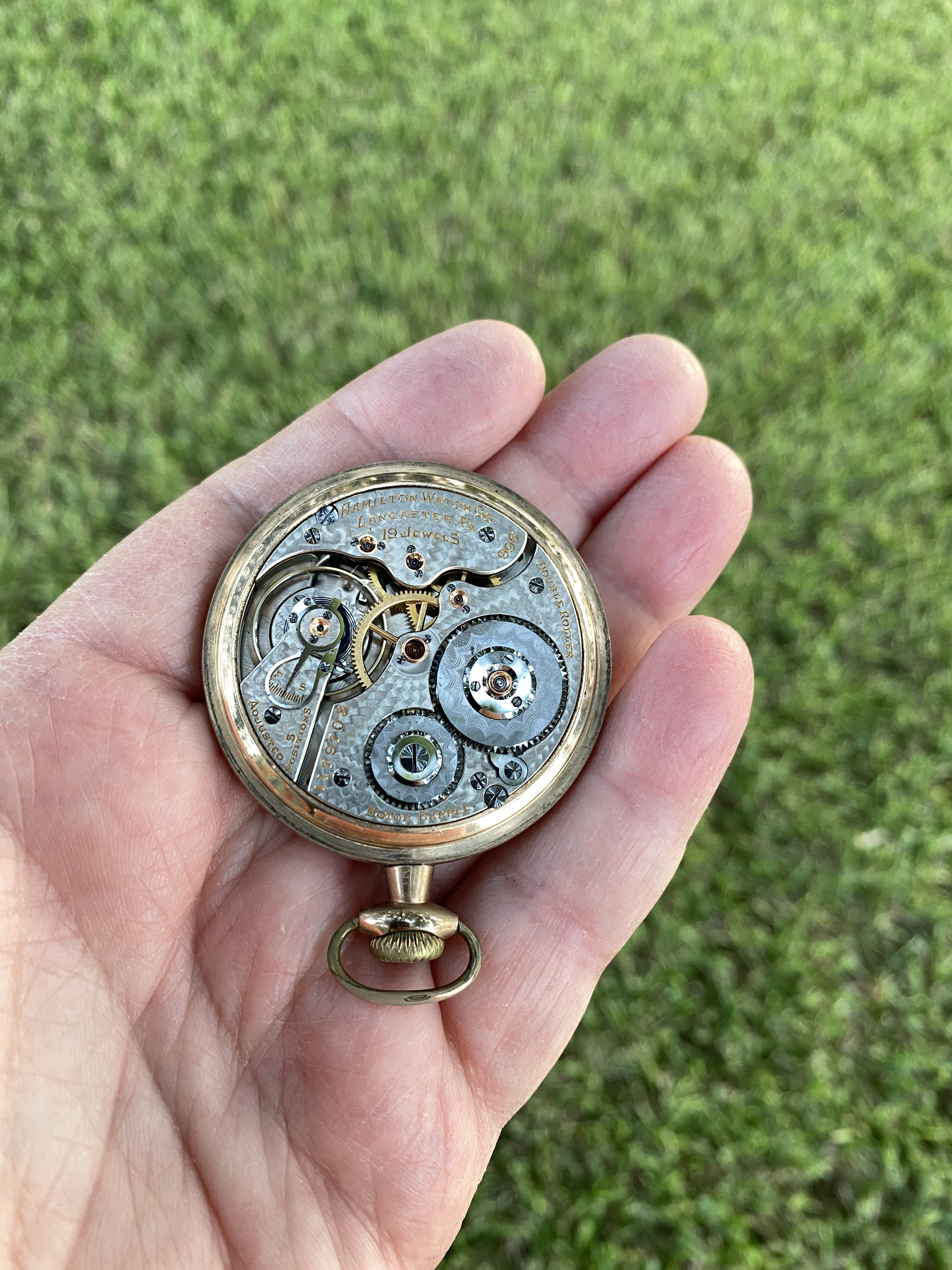 ·If you try to improve the worst areas, you run the risk of defacing the areas that are well preserved. Check with your shop and see what he says. But if it were mine, I’d leave it! (My Waltham Colonial from 1937 sends salutations.) mine came to me, complete with its original linen sachet with the Keystone Watch Case Co., label, the vinyl display case, and outer shell. It appears Mr. Kobel who received it as a presentation, never used it!