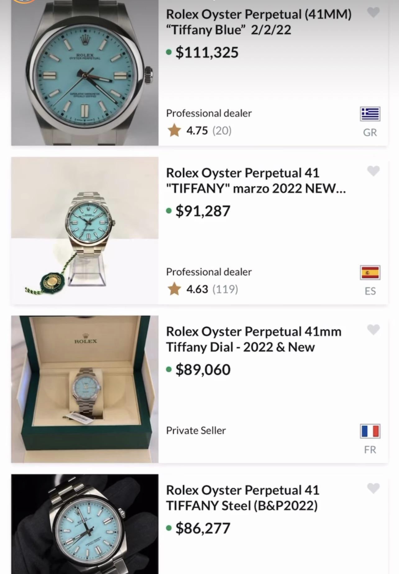 B). The market is stupid enough to pay this much money for a dial that is clearly a sky blue colour and not Tiffany blue to begin with, has no relation to Tiffany, and is probably being heavily faked on other colour OPs now that the price is this high.