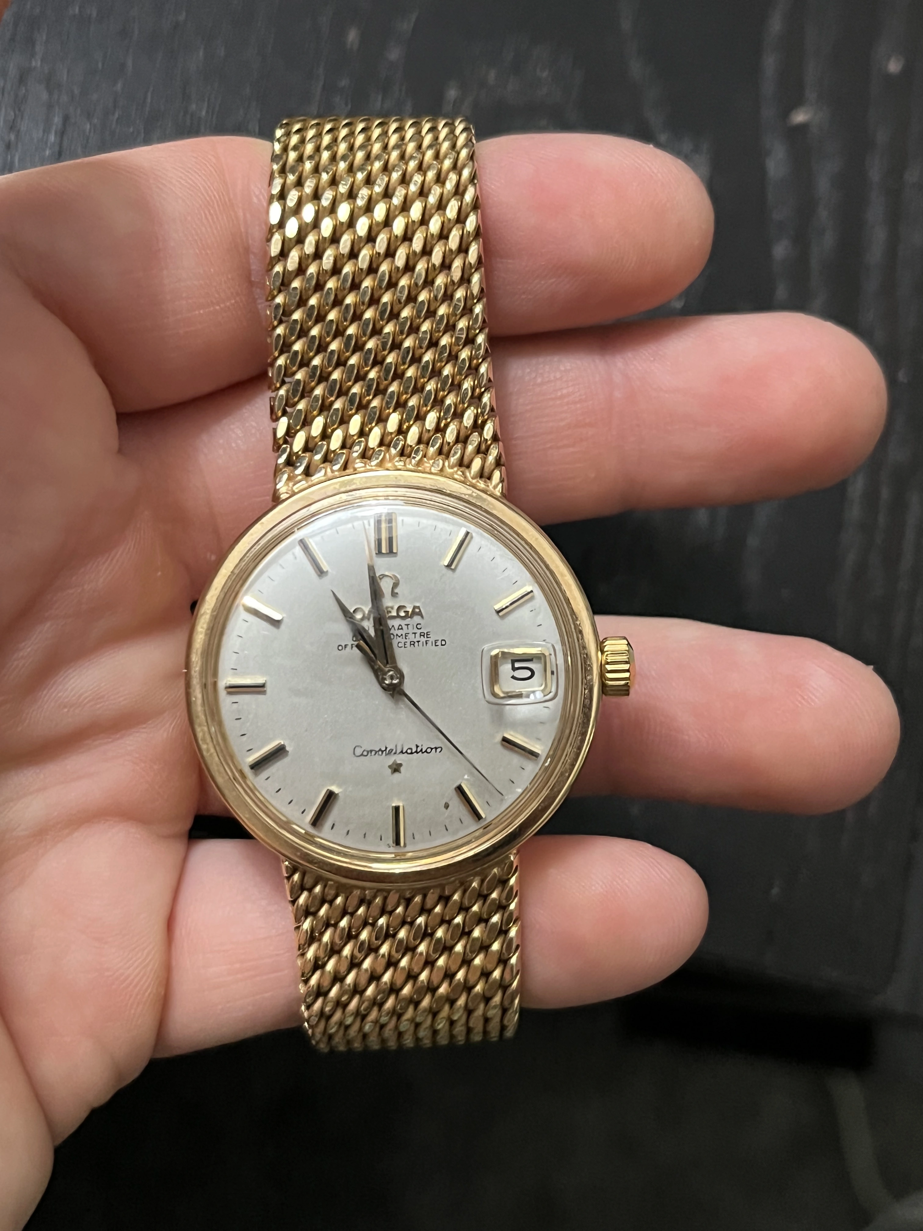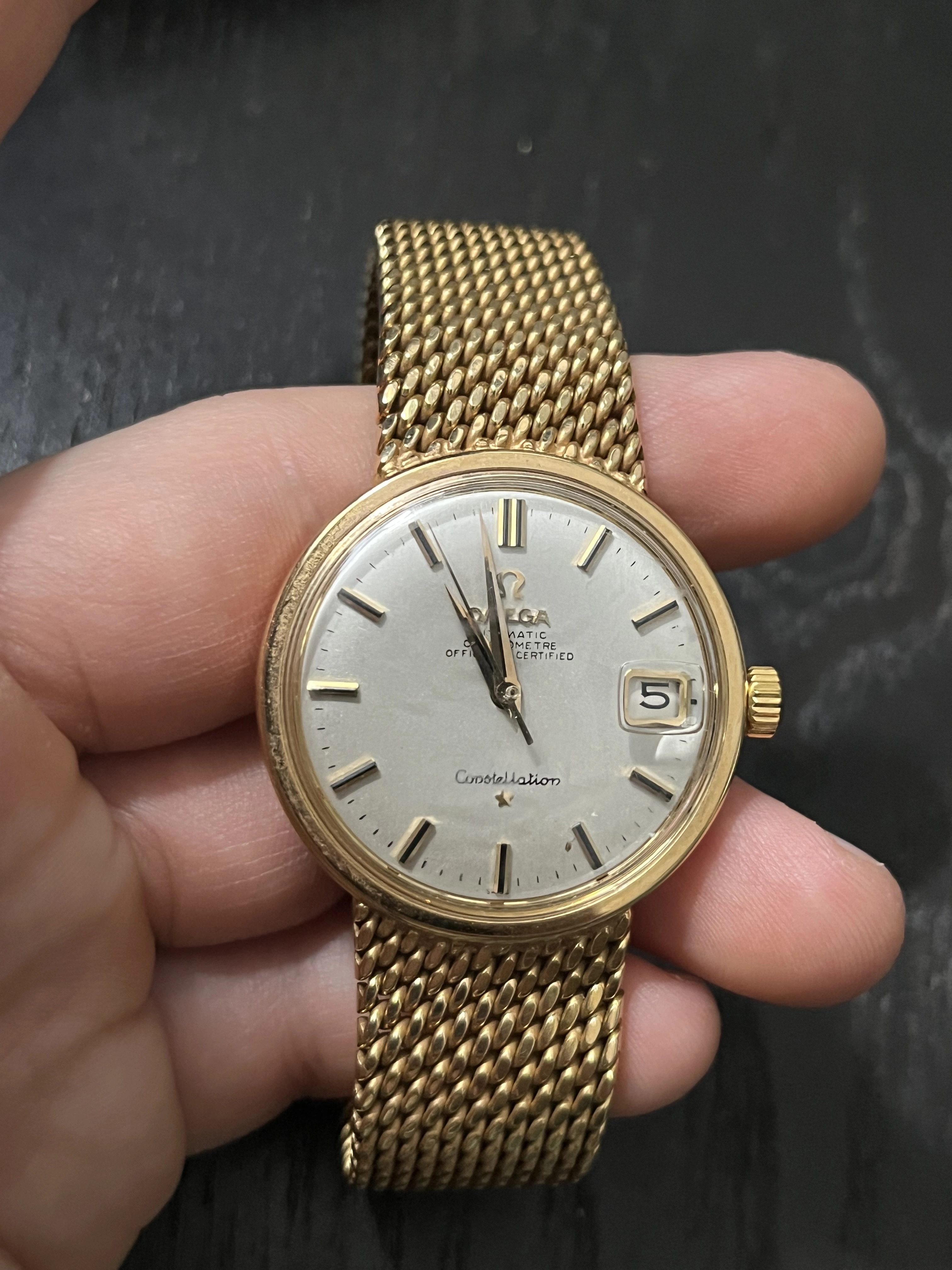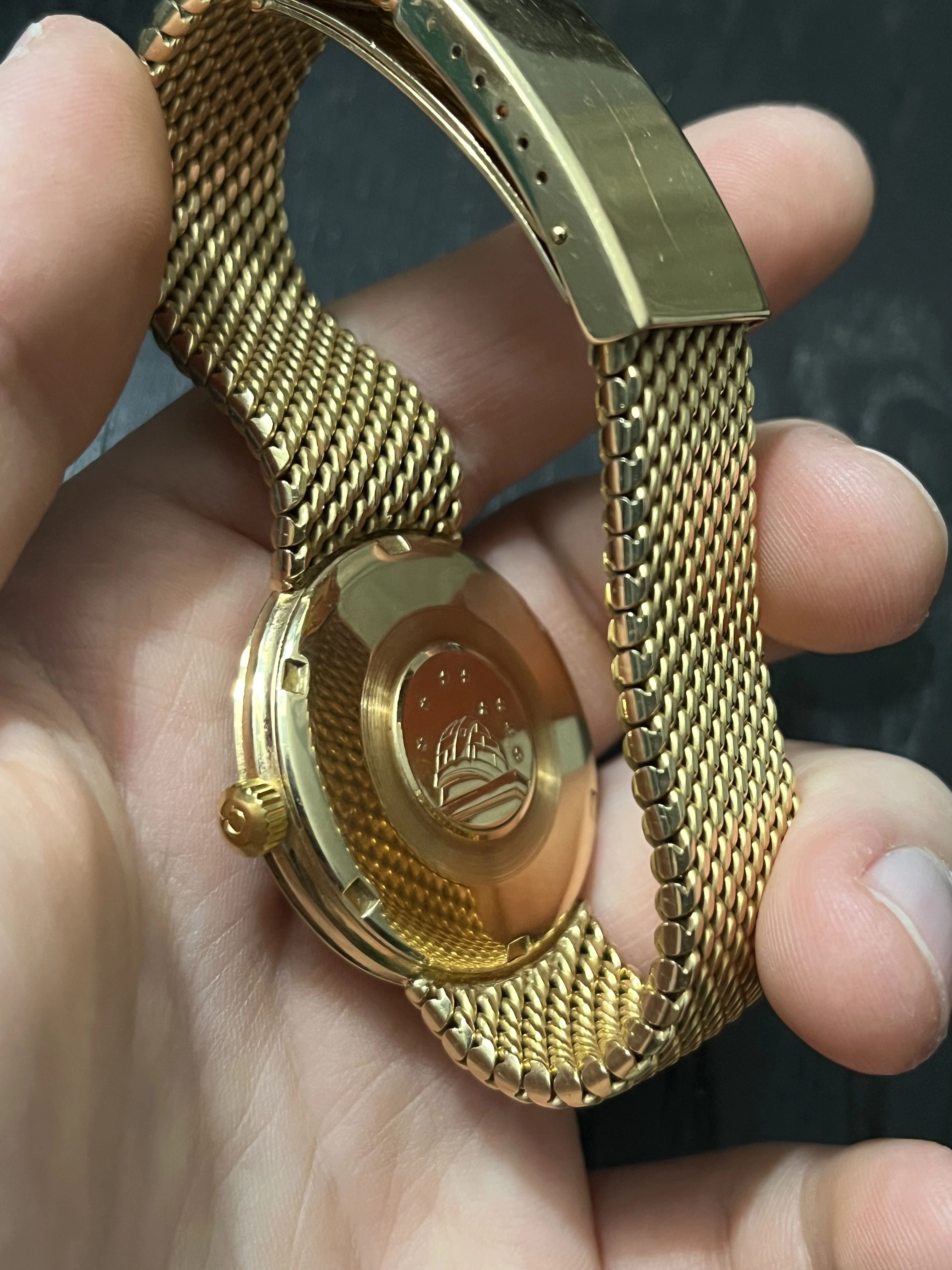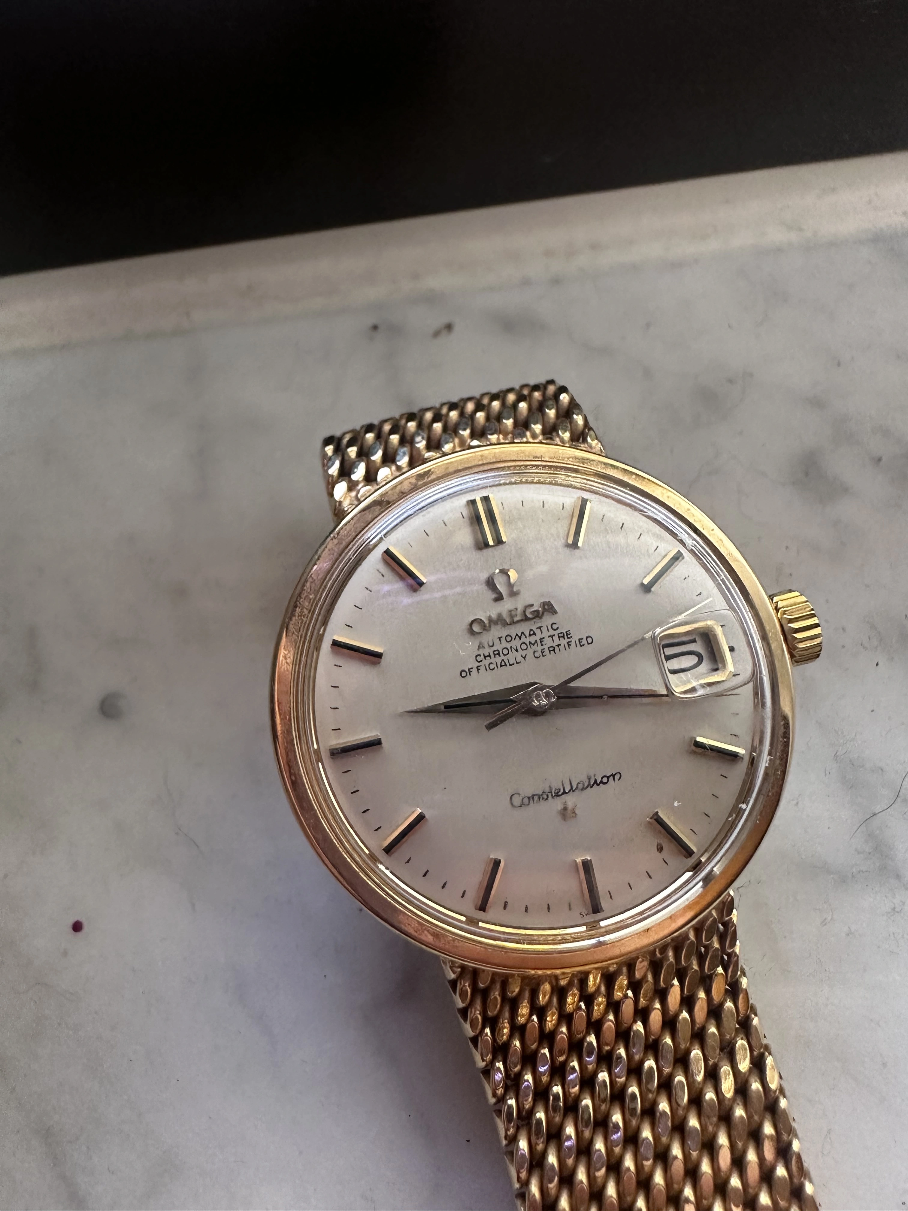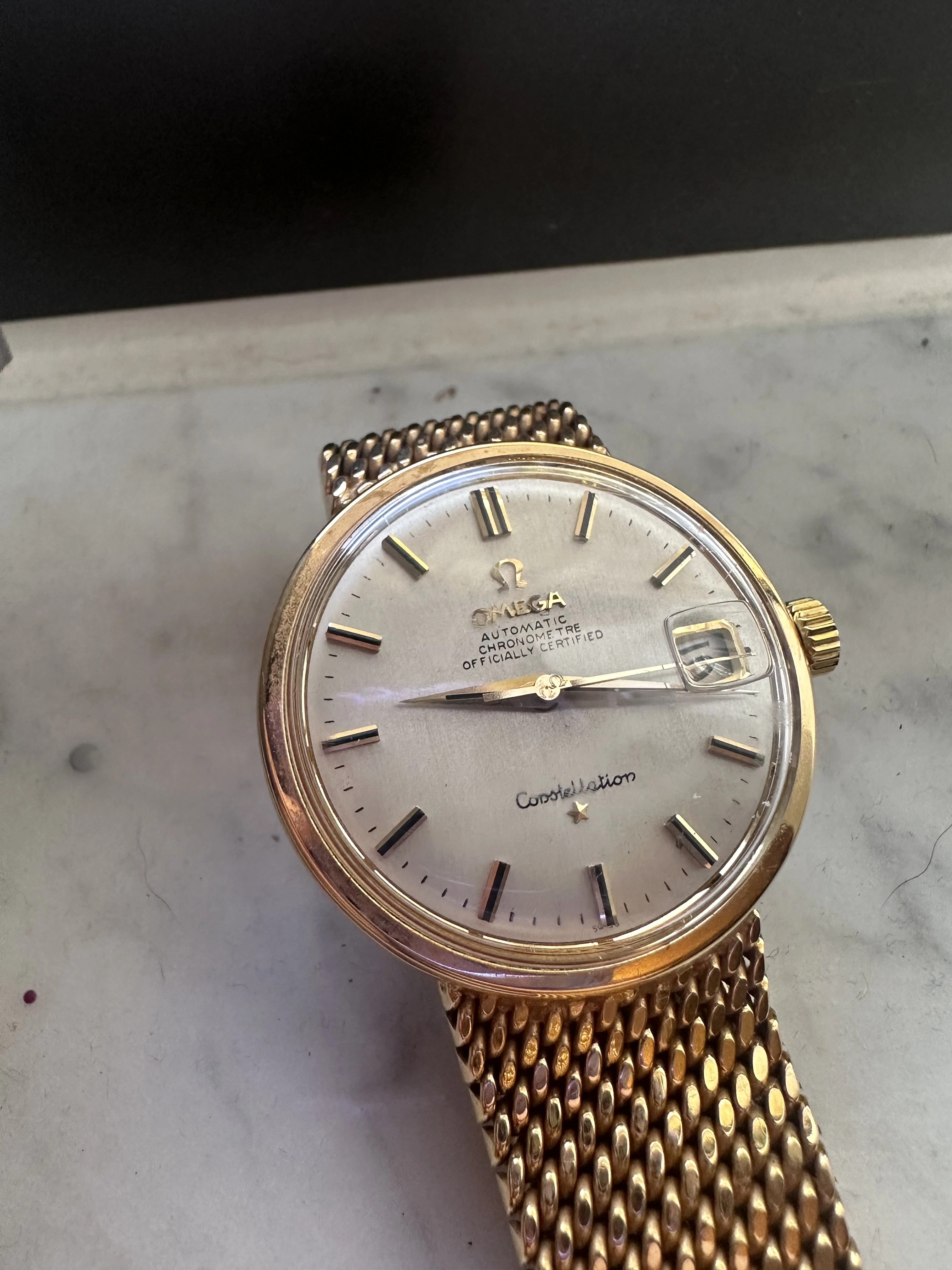 The bracelet clasp is not of the quality expected. (it would normally be solid gold and have the Omega symbol and the gold level hallmarks)