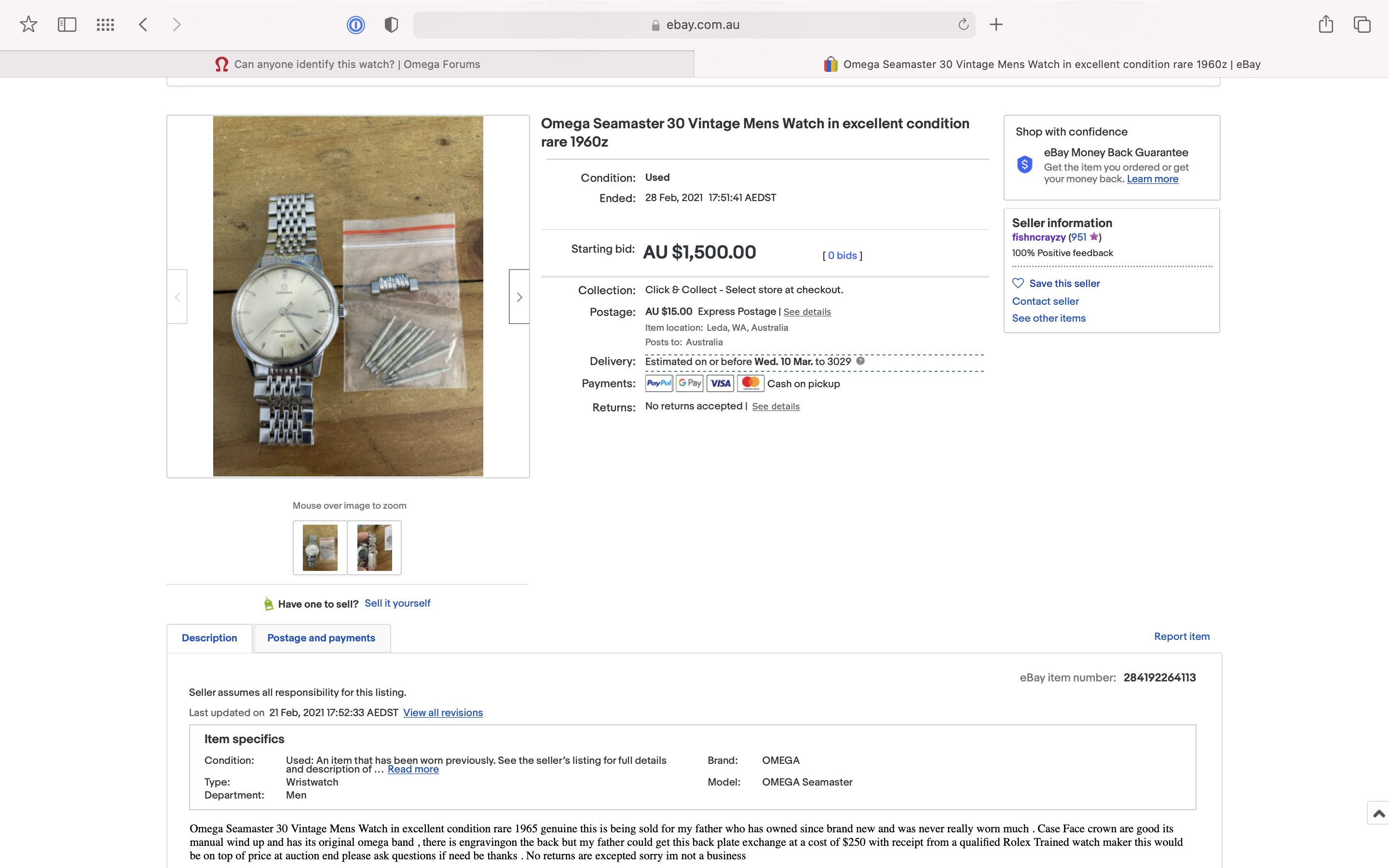 I have searched Ebay but I cannot find an Omega watch that has the same face as this one.