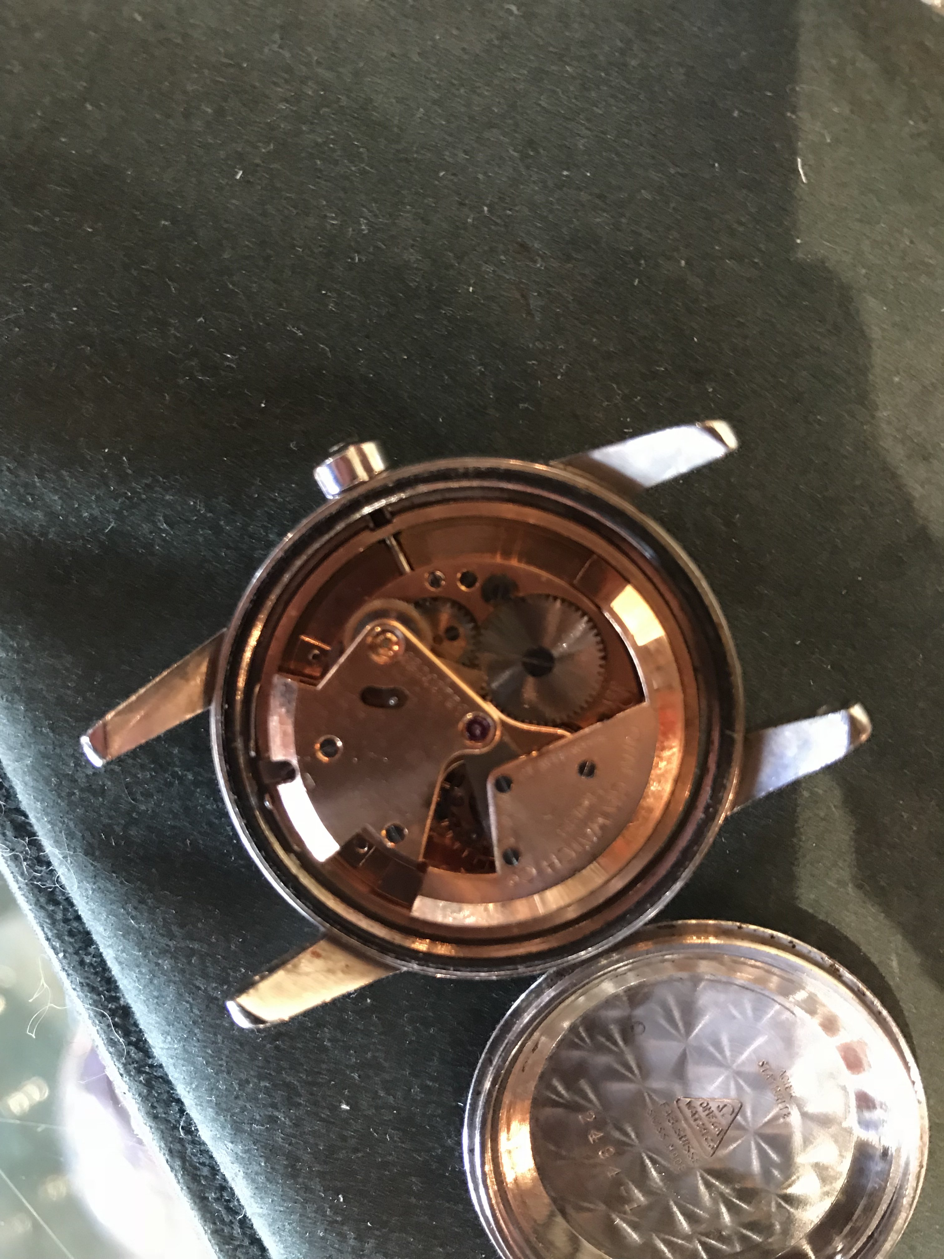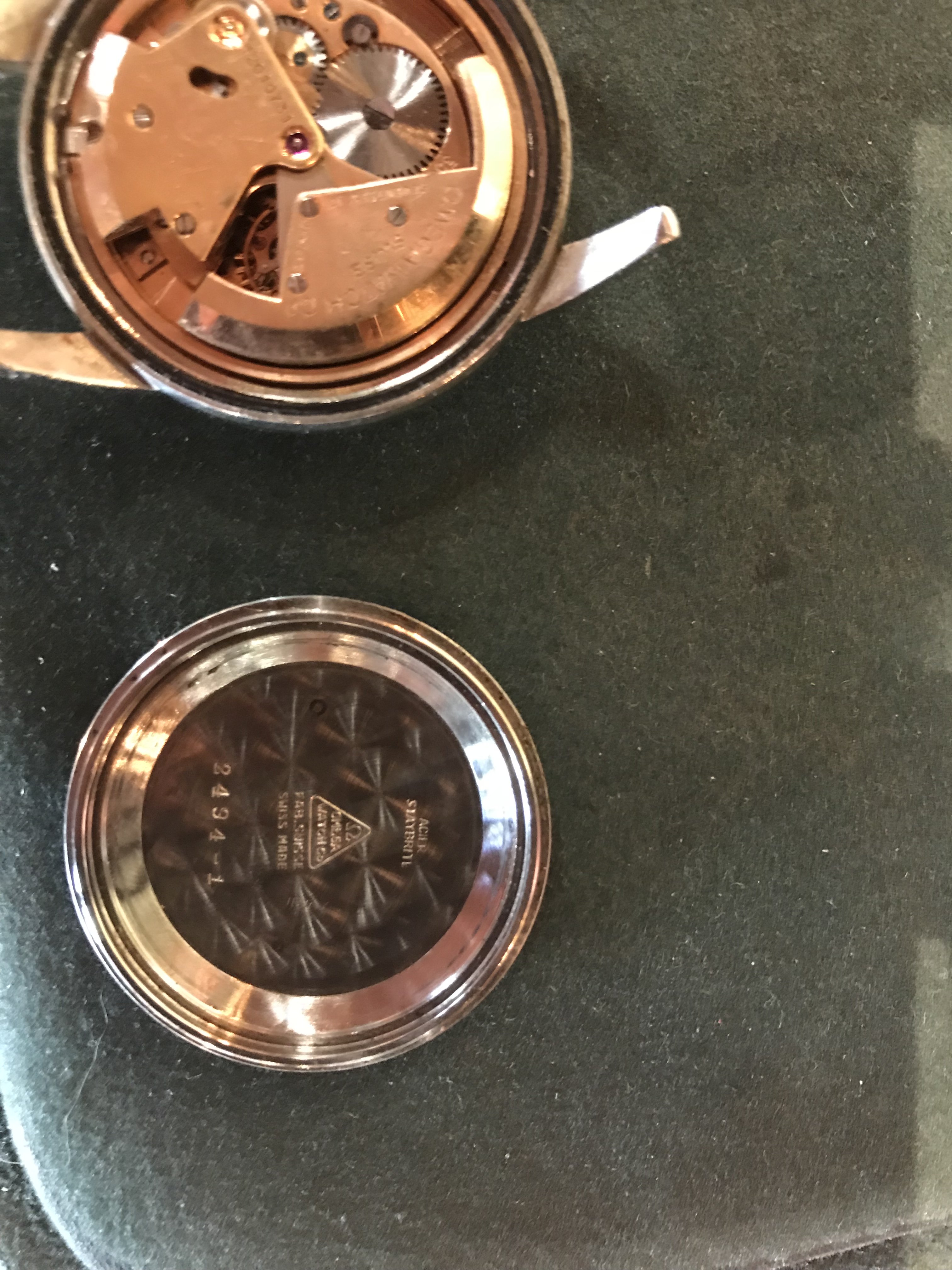 It should have a bumper automatic movement, perhaps a caliber 351. Case reference I’d guess to be 2577. Have a local watchmaker open it up to confirm.