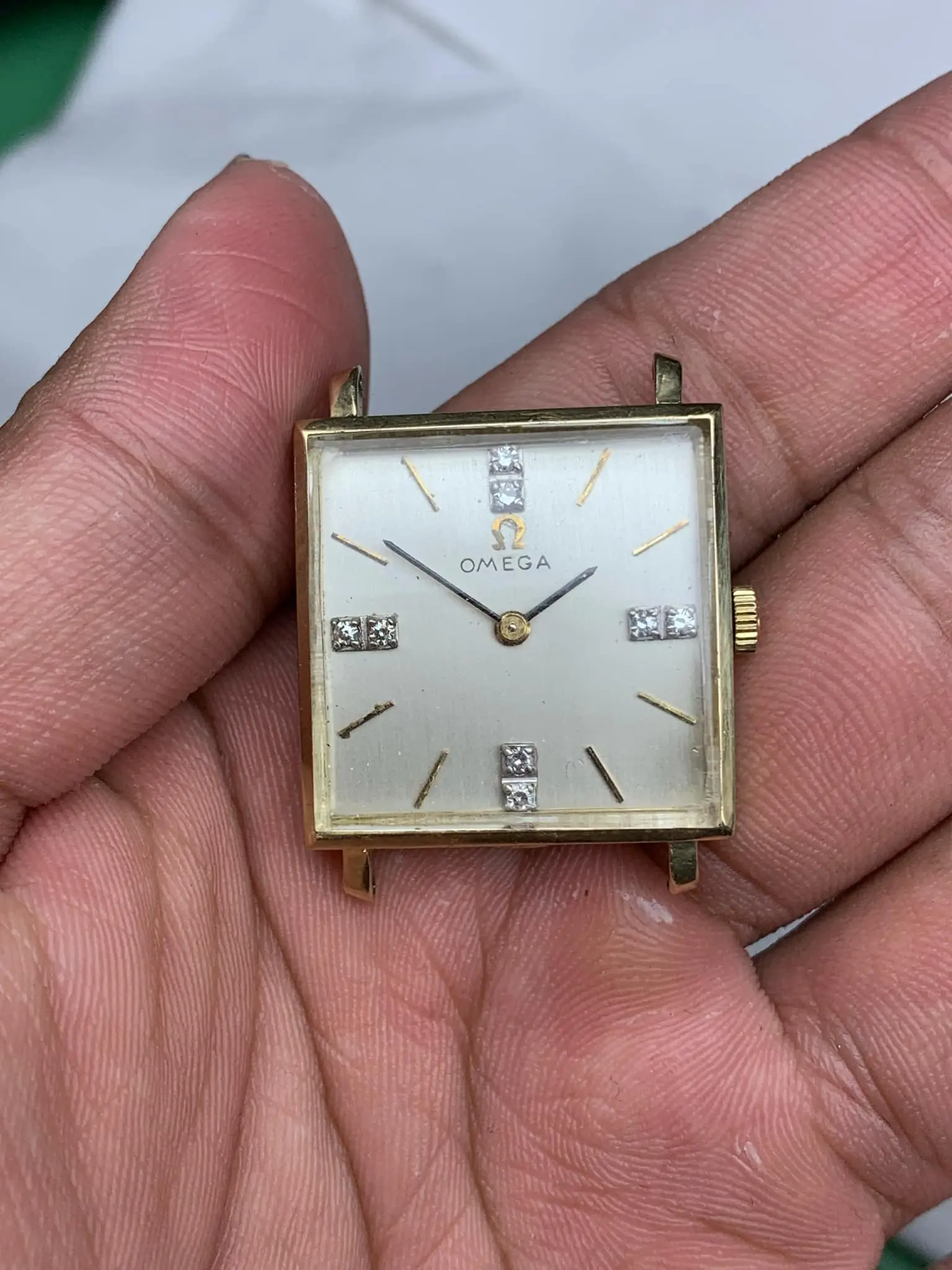 I have looked everywhere and can find very similar omegas except mine has the 3 diamond chips at the 12, 3, 6 and 9. My brother bought it at a 2nd hand store and gave it to me just knowing it had value. He said do the research. Any info would be appreciated. Thank you