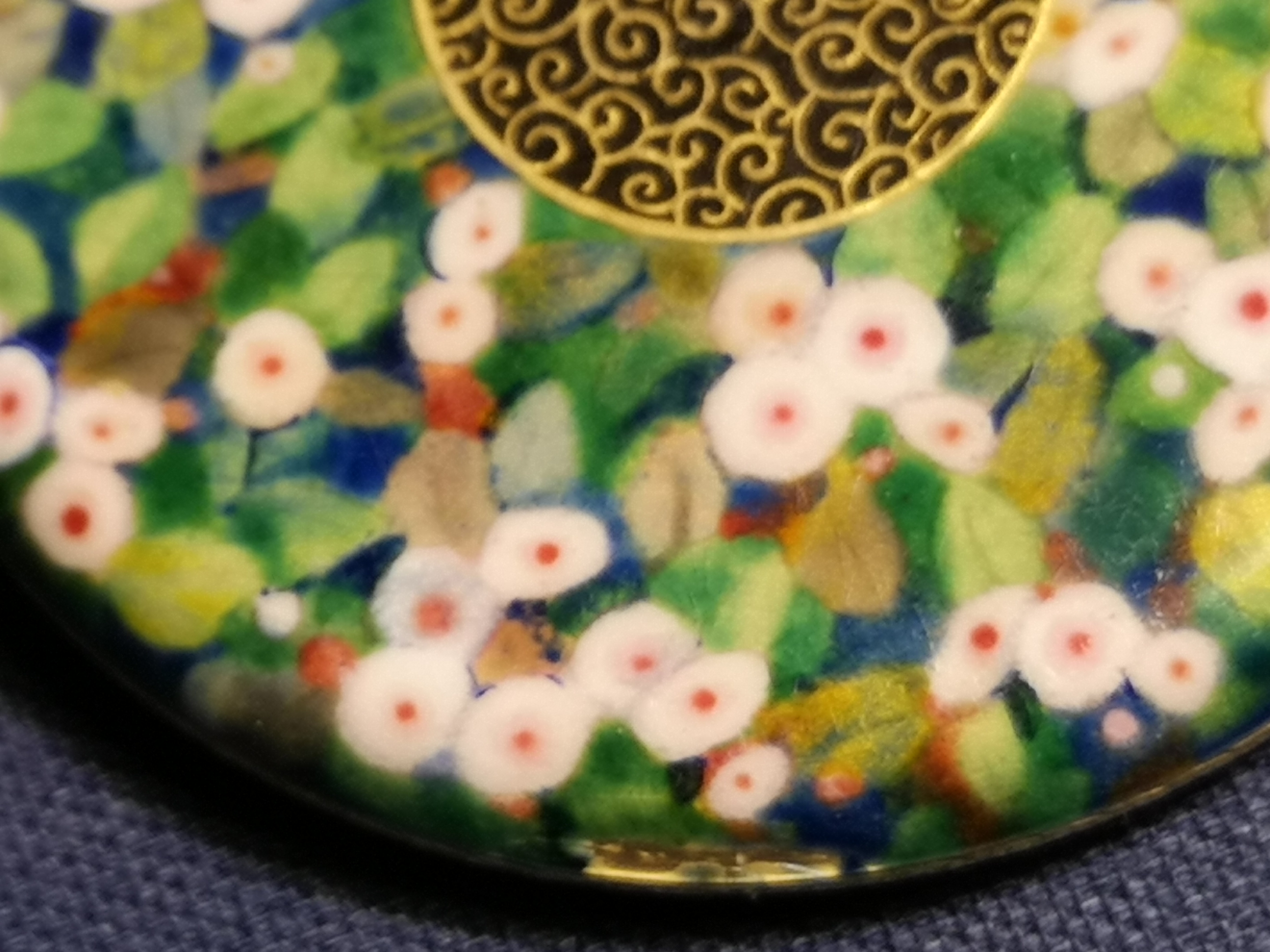A mix of a sort of millefiori style enamelling and the contrasting centre panel of cloisonné looks like it is jumping off the screen -all in all , absolutely splendid.