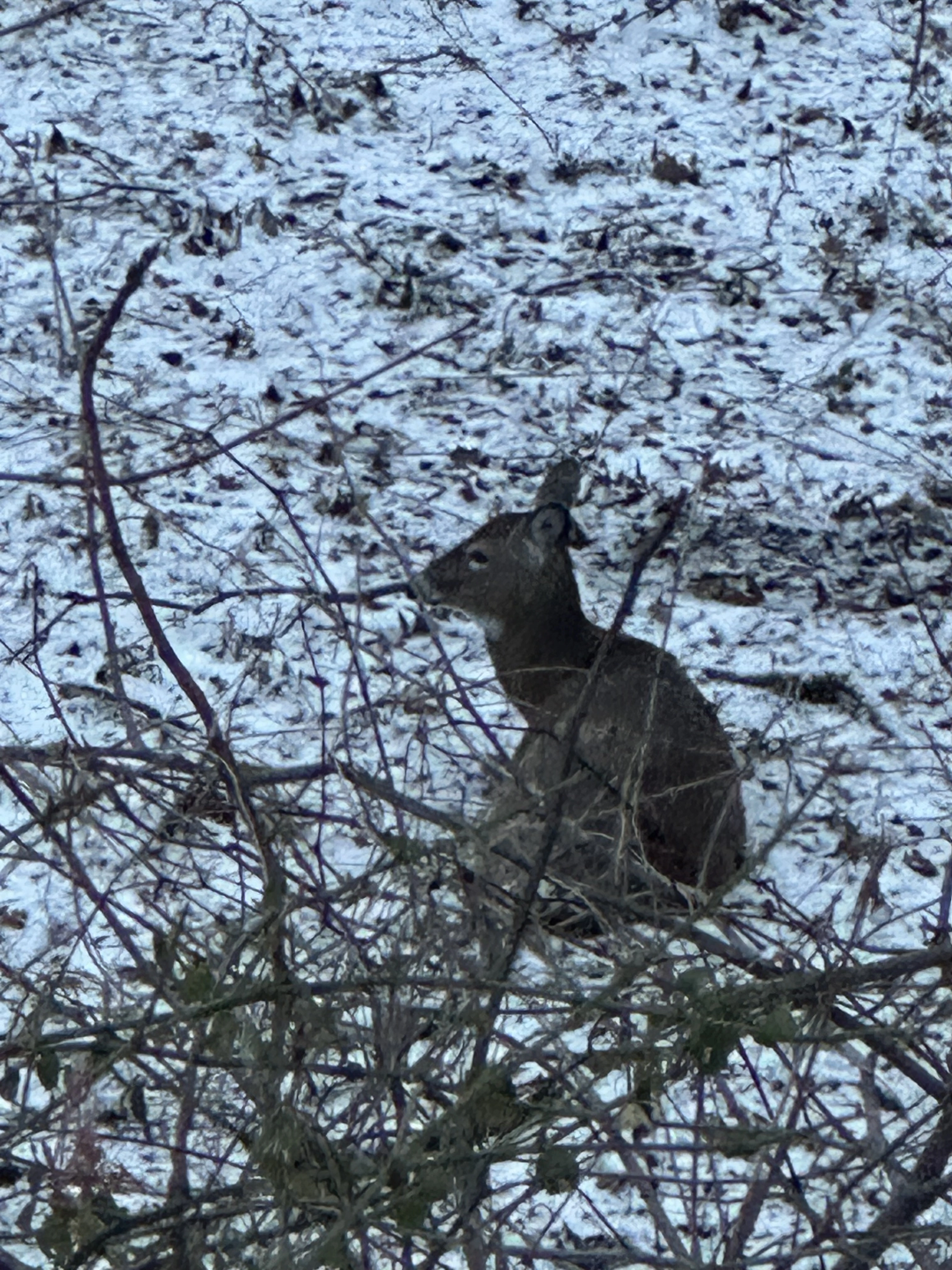 I have added a few photos from last week, for comparison (the ones with snow and deer).