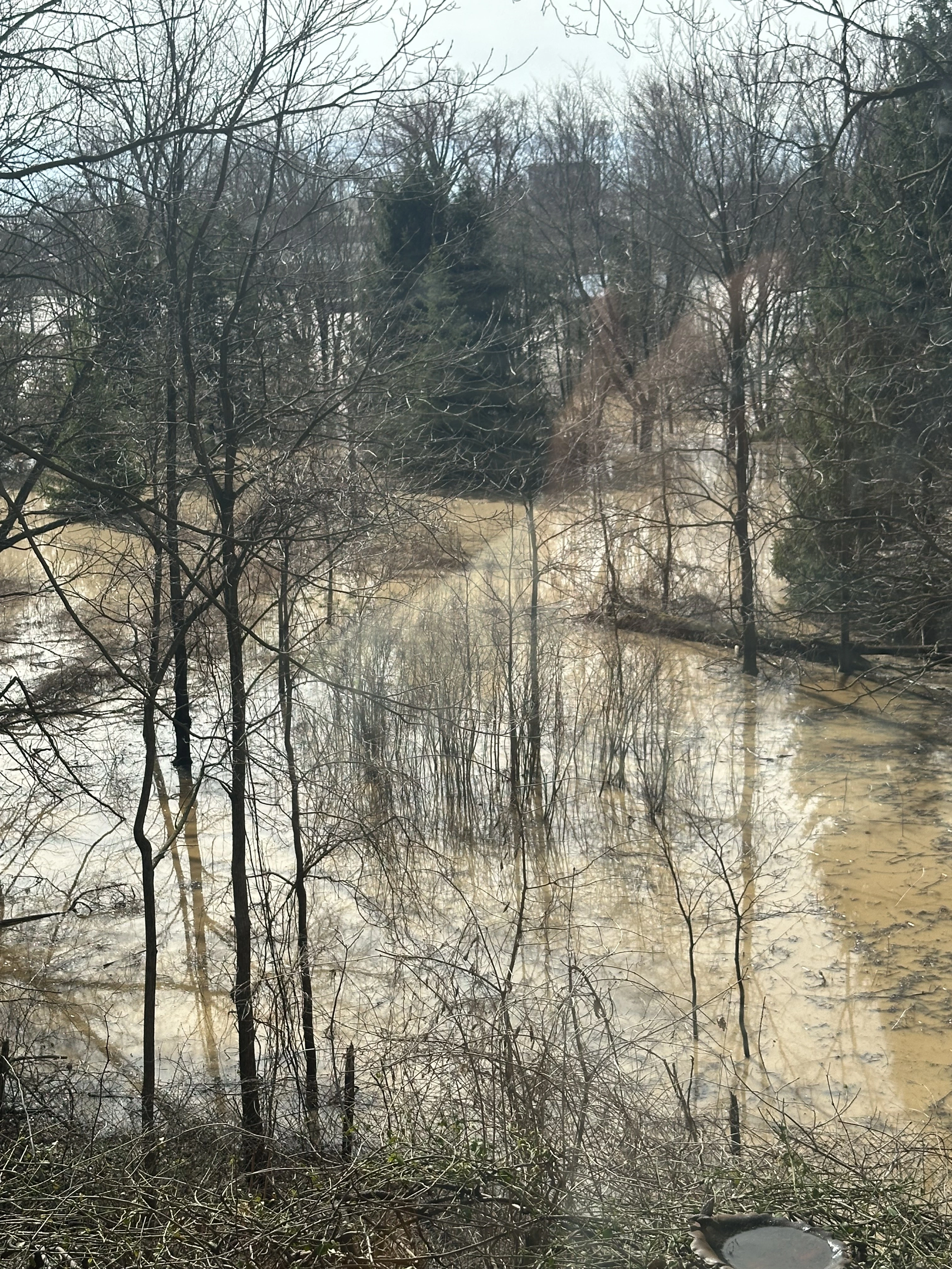 Our little town is flooded as a result of torrential rain and still frozen ground.
