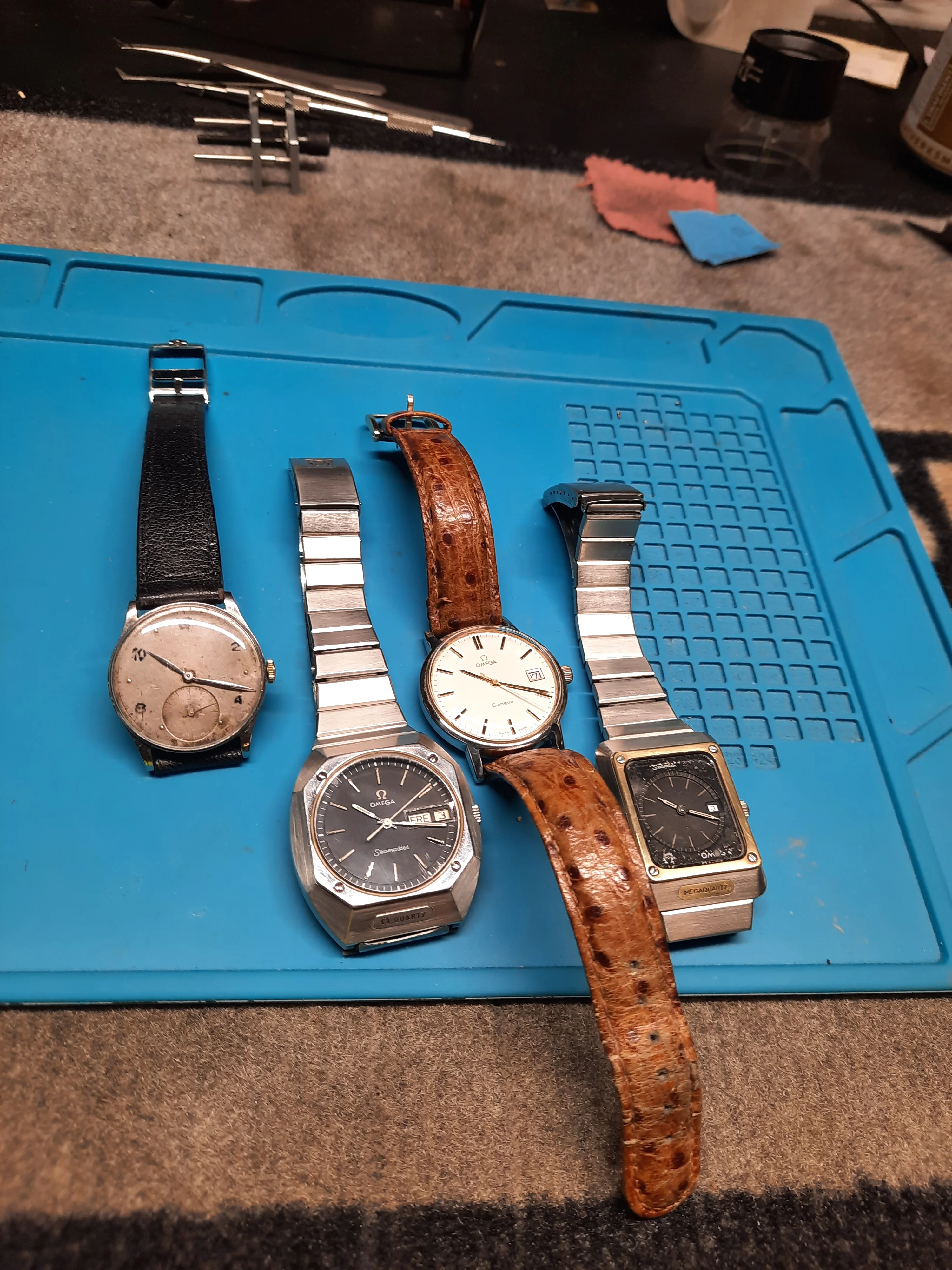 I have no Idea how many Omegas I have. I think there are 40 or 41 serial numbers in the text file. Those have cases. Then there are the rust rats mostly 55x and 56x. Keep buying cheap worn out case. Which never seem to fit the movements at hand. Half a dozen or so 134x quartz movements, many with cases.