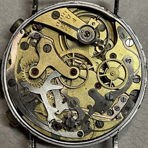 The diameter of the watch is around 37.8mm and the movement seems to be a huge Landeron movement.
