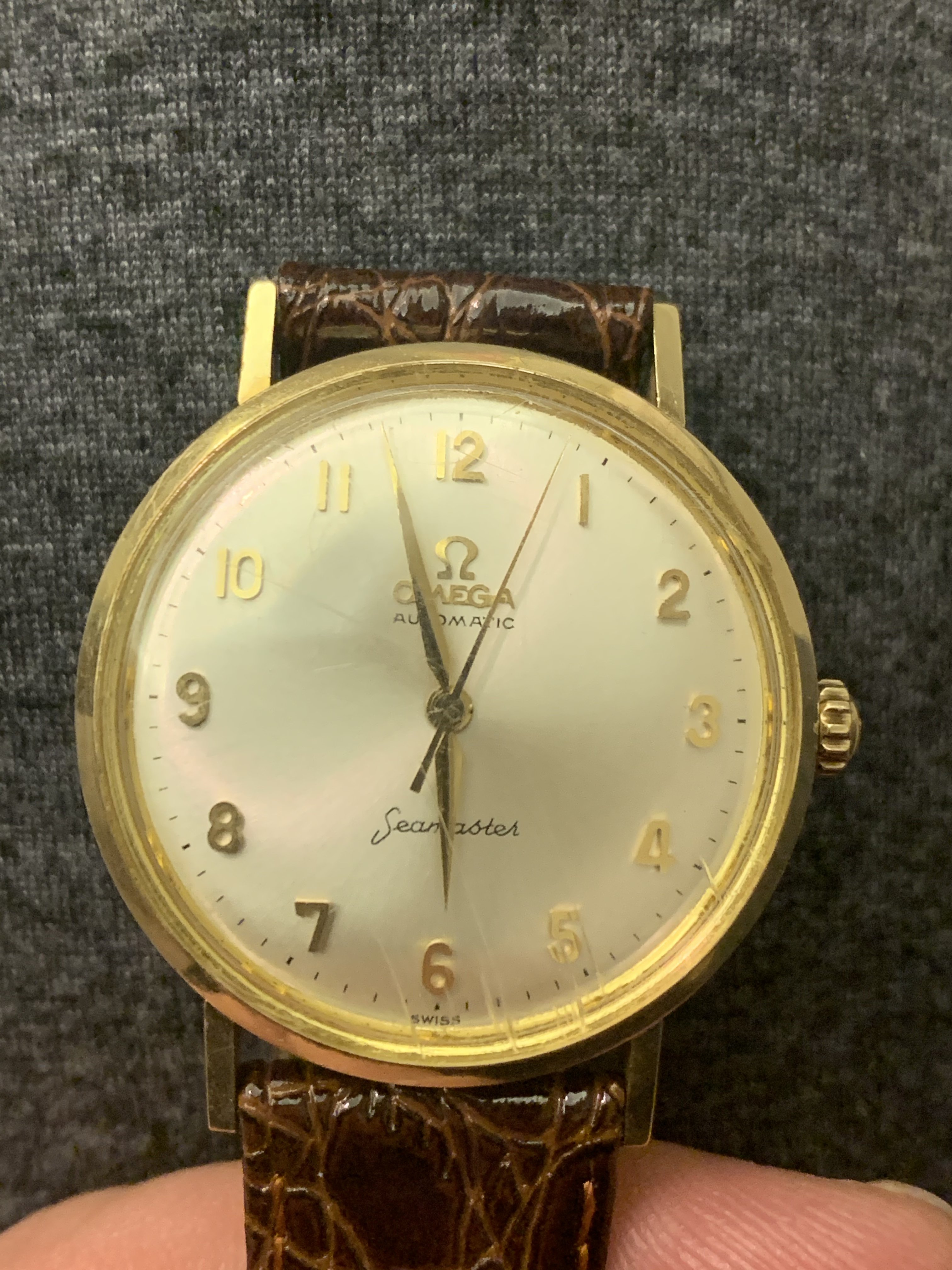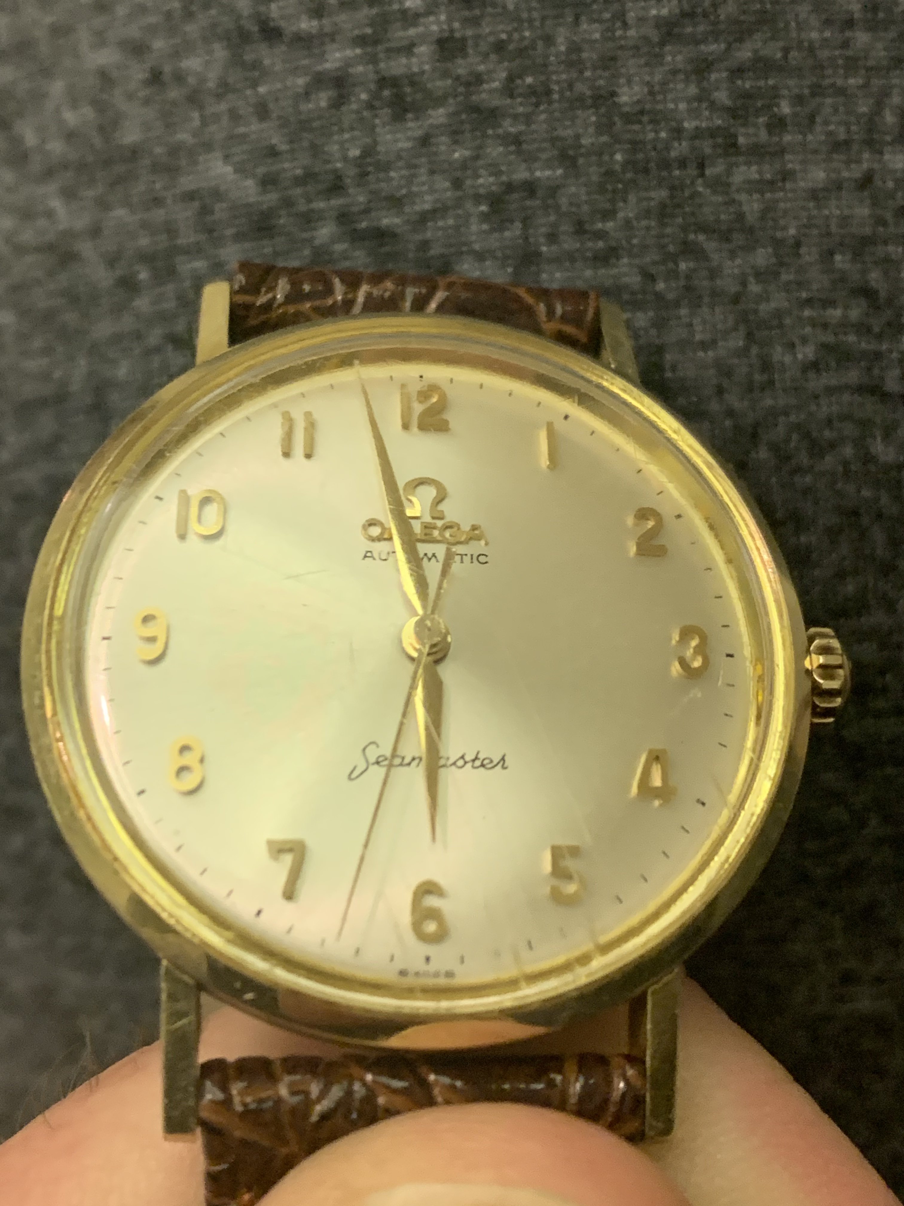·I got this from my grandpa when I was 13. I’m 45 now. He and his brothers were in the watch case business in NYC. I have no idea if this was a watch his company was involved with or not. I know it’s an Omega Seamaster but I don’t see much about watches with the numbers on the face (Arabic?) of this age. Any info would be very helpful. Kindest regards.