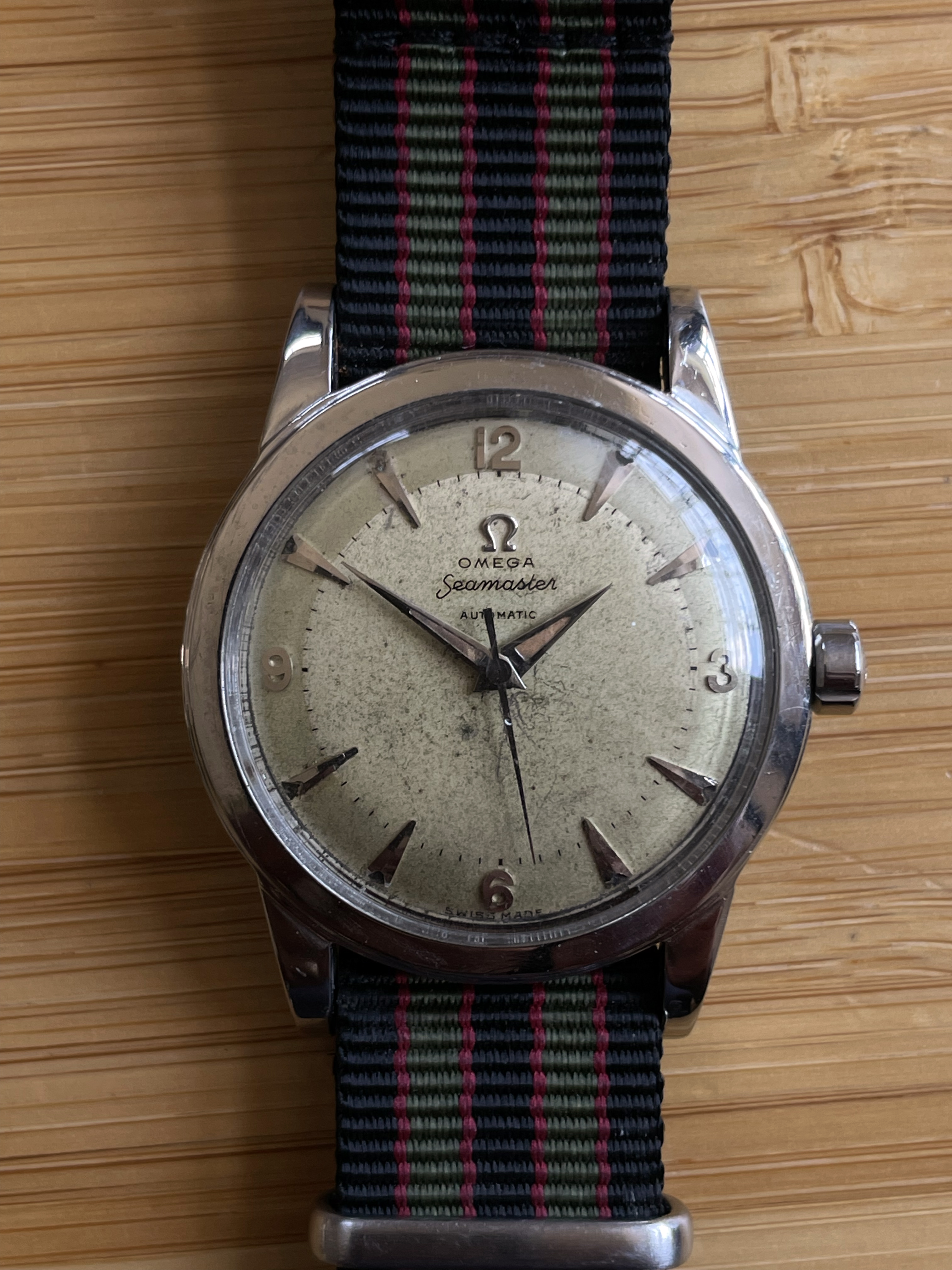 Posts 3,406 Likes 13,201 MtV ·Apr 23, 2022 And the fact that it says “Seamaster” in the top half of the dial means it’s from about 1950-1951. After that, they moved the model name to the bottom half, which is the more common layout.