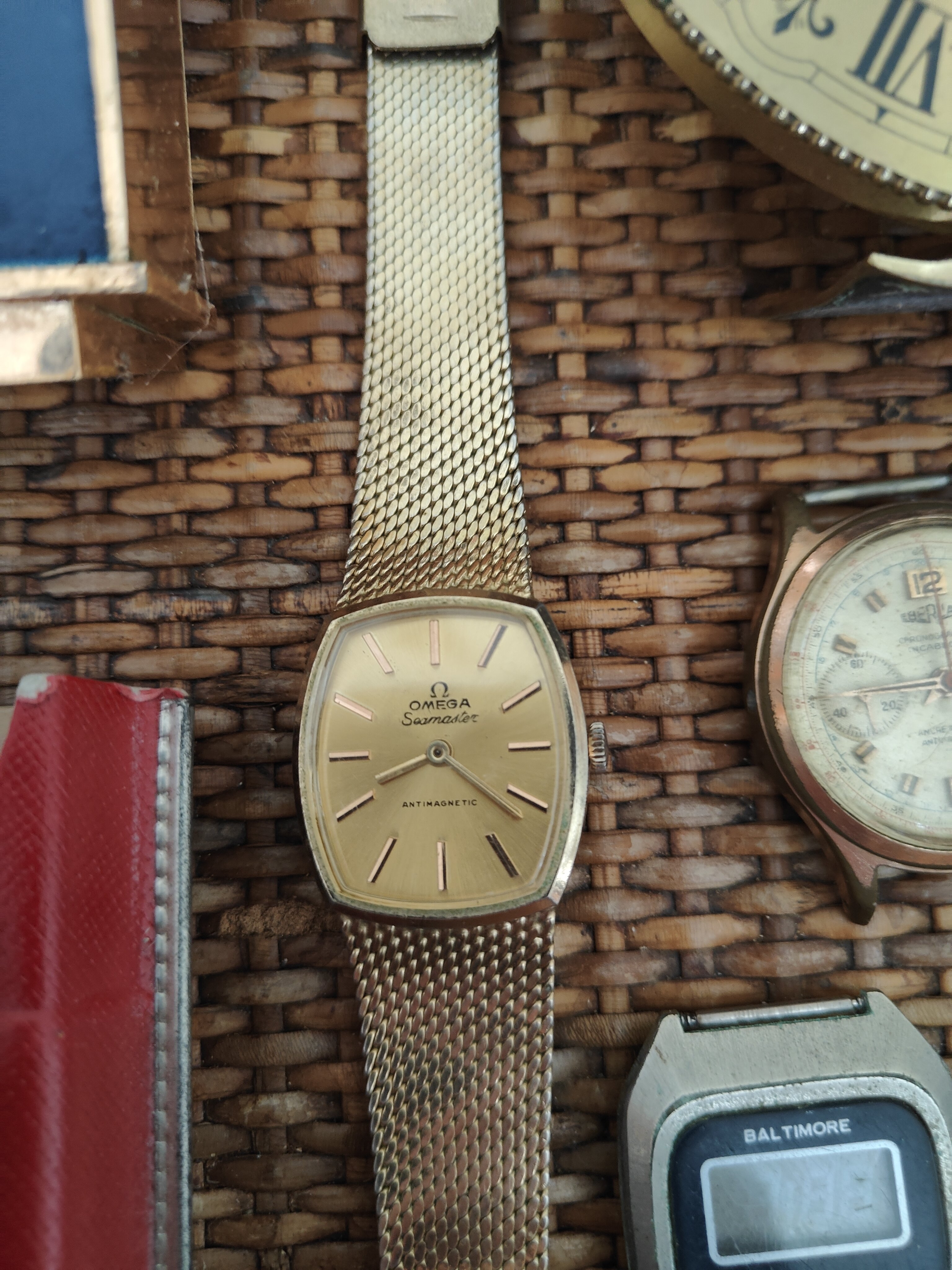 I recently found an Omega Seamaster at a yard sale for 1€. It was from an old french lady. The movement and logo seems off, but I'm not an expert and it looks old. It even has some of the gold stamps. Could some of you please help me get more infos on this ?