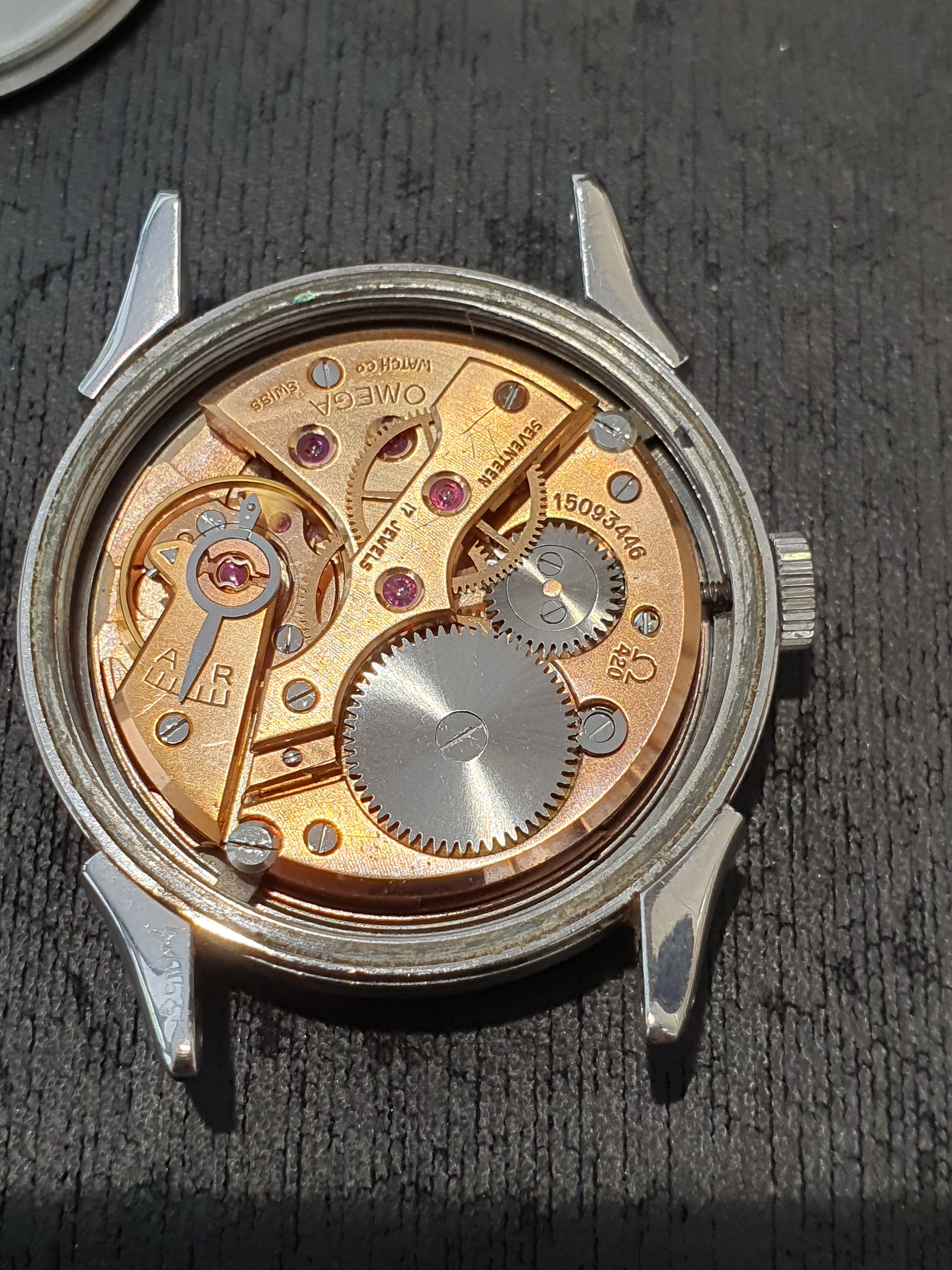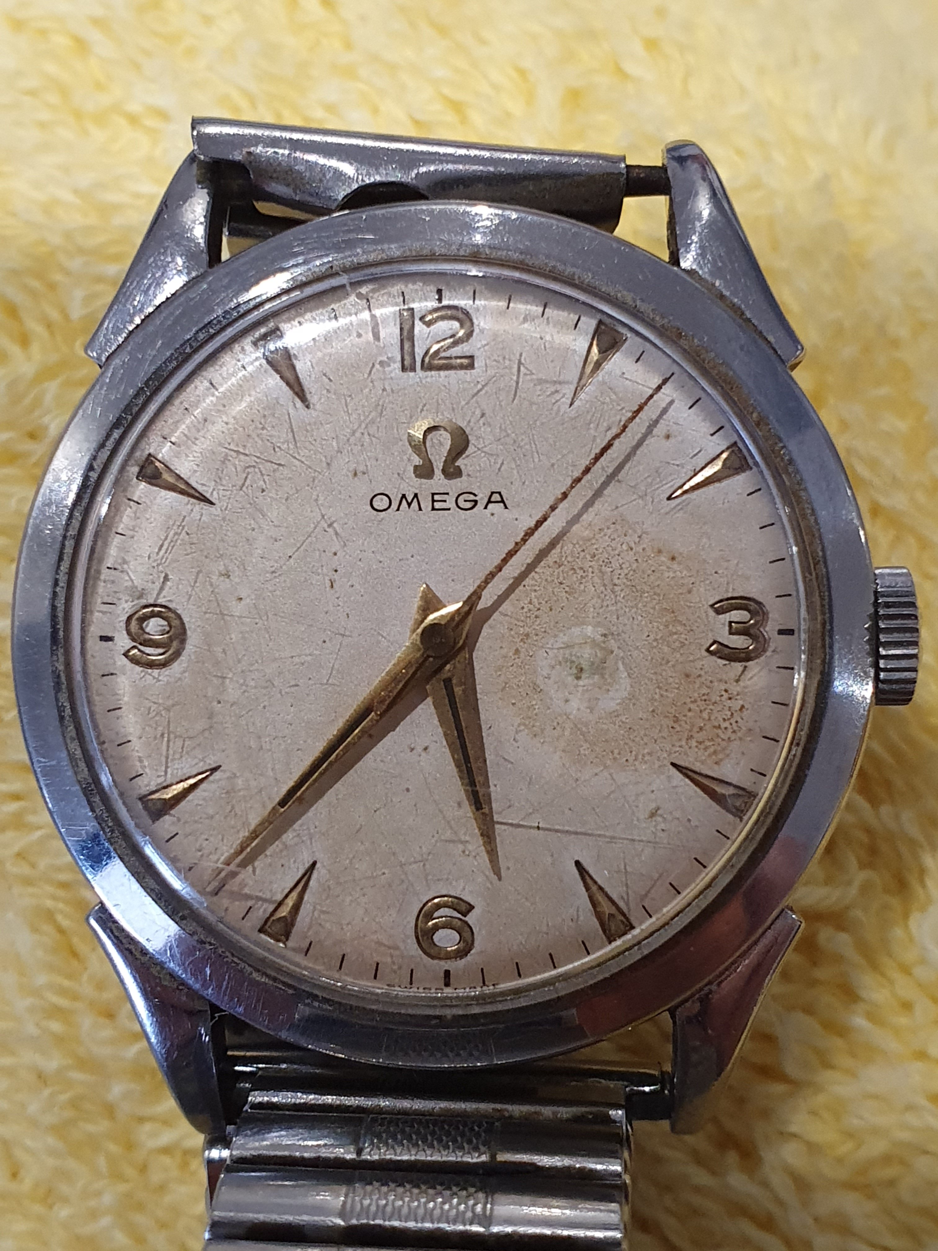 Lot's of Omegas from this era are "no names" that don't fit into a line such as Seamaster and Railmaster (and yours isn't the latter). The serial number dates it to 1956. Not all watch variations can be found online, but Arabic numerals at the quarters and arrowhead indices are not that uncommon though. I suspect that maybe the back cover has been replaced. Models from this era usually have four digit reference numbers.