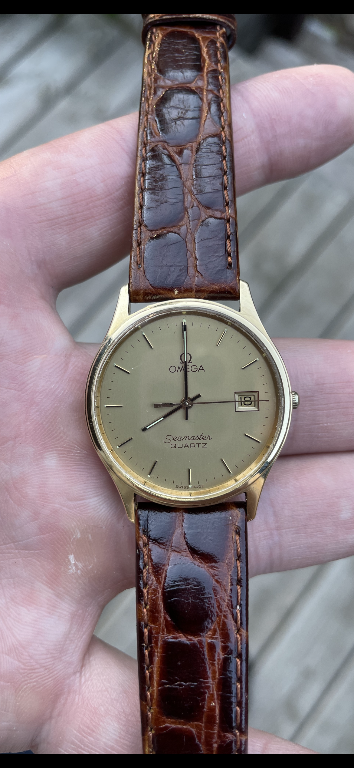 I was recently passed down an Omega Seamaster Quartz watch. I just can’t seem to figure out what the reference number would be even after spending hours on the internet. The closest I have found is the 196.0775 Seamaster. However, my case back looks different. I haven’t been able to find once case back that looks like mine. I also haven’t been able to find a case back that has a case where there are four screws on the back. Here are some photos.