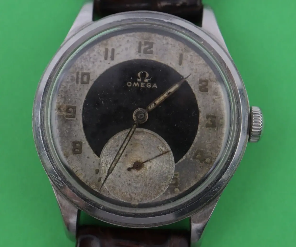 Dial original, case original. Crown replaced. Second hand appears to have been replaced, but hard to tell in fuzzy photos. Poor condition overall, and this would be best kept (or sold) as a parts watch to help repair something that will have some value.