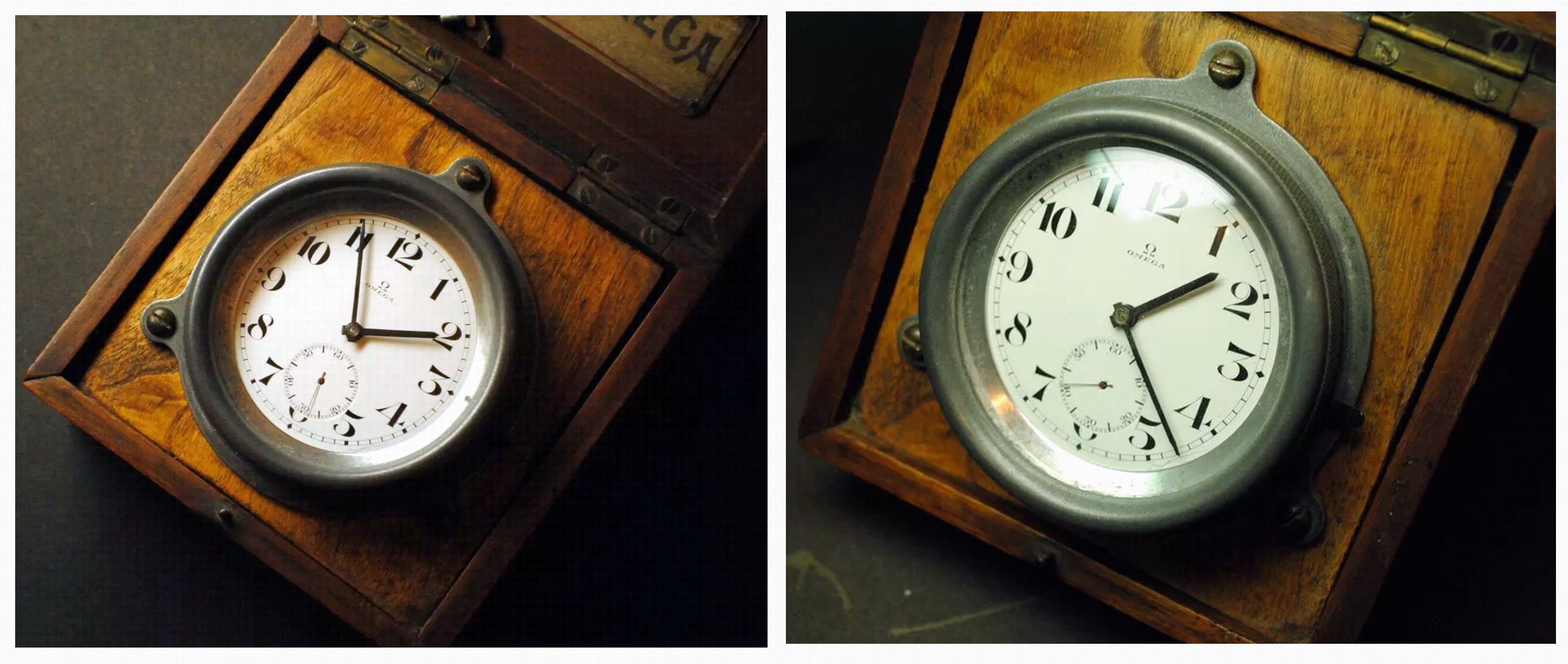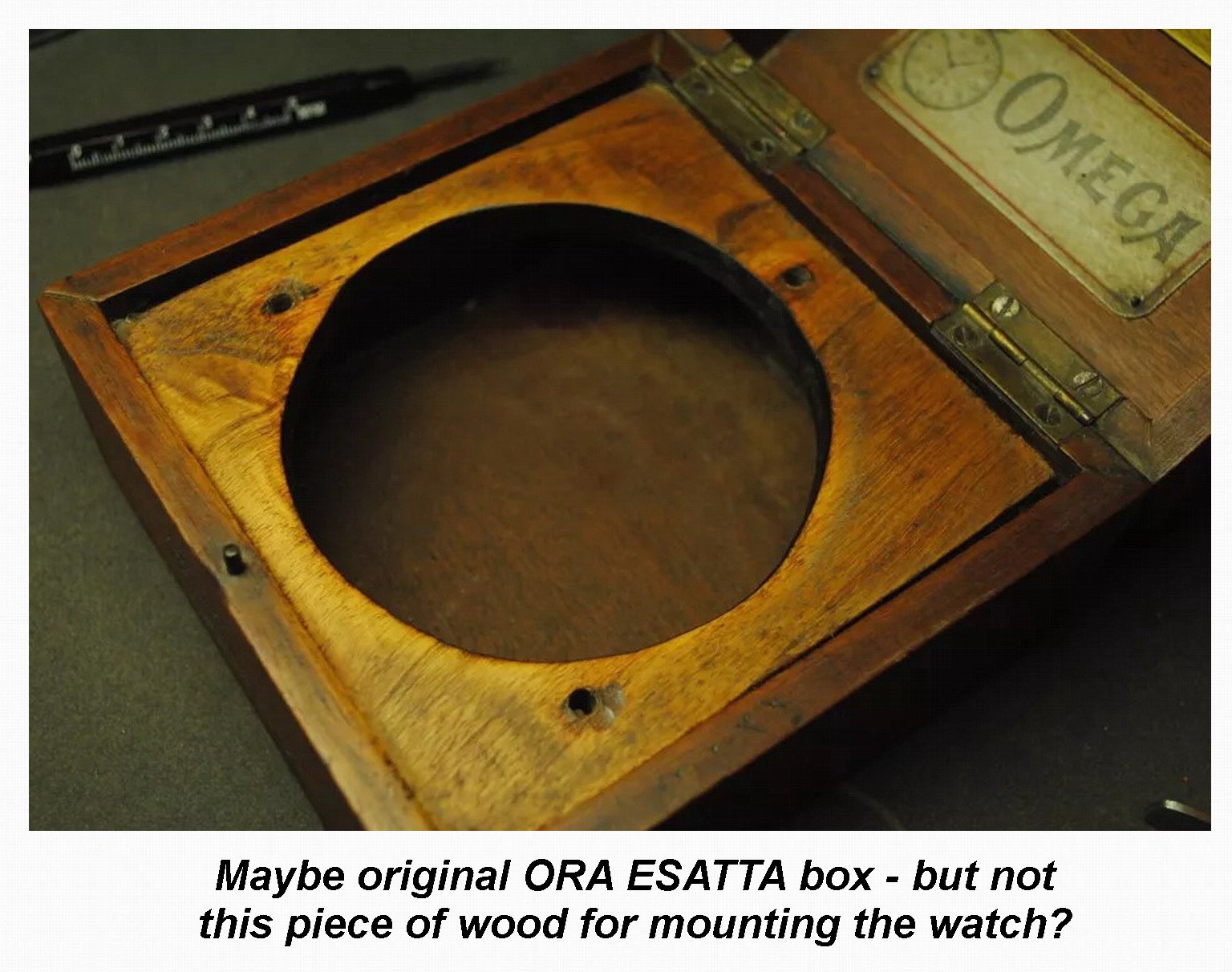 My suspicion is that the Ora Esatta box may be original - but the piece of wood on which the car clock is mounted in not - and the car clock was not the original chronometer!