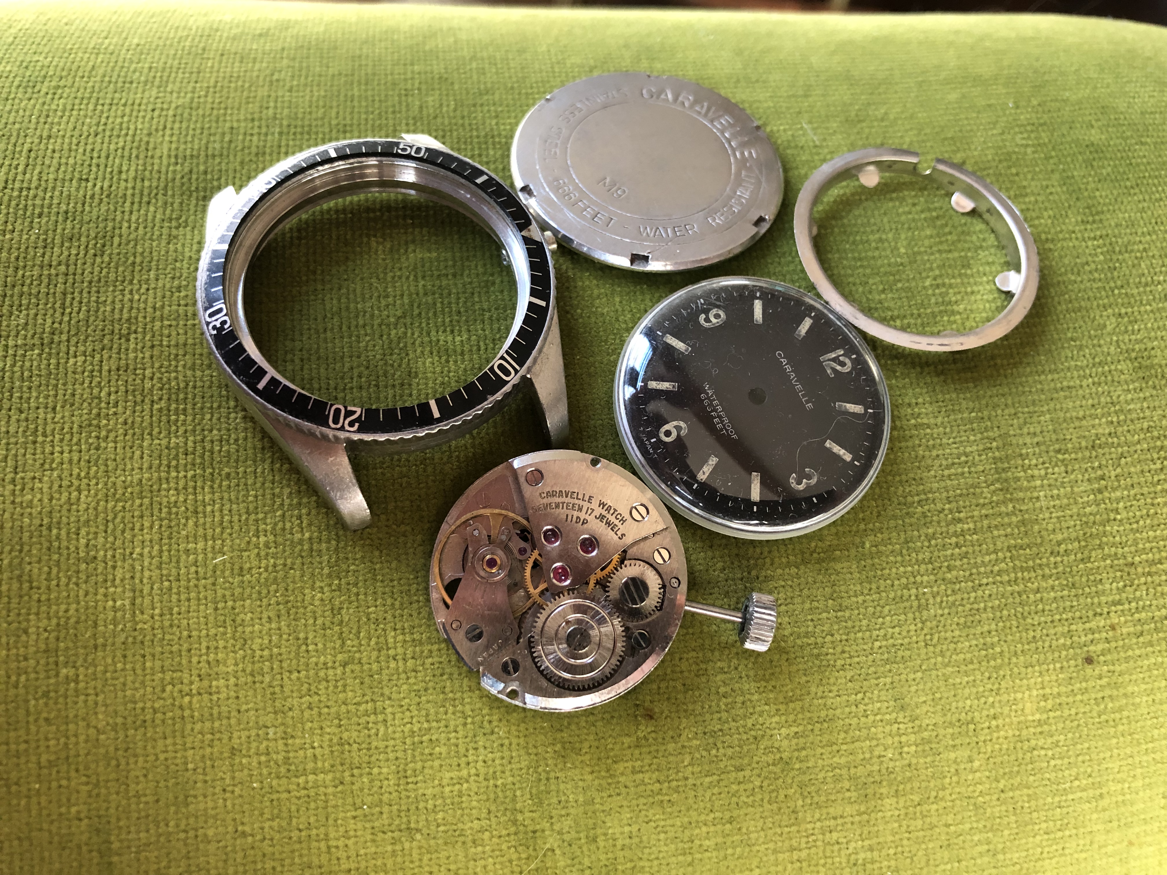 Here's a piece that has blown up in popularity recently. Why, I do not know. Everyone's saying that it's because of shared similarities with the Rolex Explorer 1016. Personally, I think it has more to do with the depth rating. What I do know for sure is that this piece in particular could tell one hell of a story if it could talk. I live far away from the USA, 7649 kilometers to be exact(distance measured between NYC, where these were sold and my country's capital), so it traveled a long way. This one also has an engraving which says:"Love, Lynn" which in my humble opinion gives it a charm of its own. This is a no frills piece, being powered by a Bulova 11DP handwound movement, which is actually a "Caravelle" branded Citizen 0241 running at 18000 A/h with 17 jewels. Timekeeping is in the ballpark of +30s/d so no complaints there, maybe I'll have it inspected one of these days. Movement clean and all.