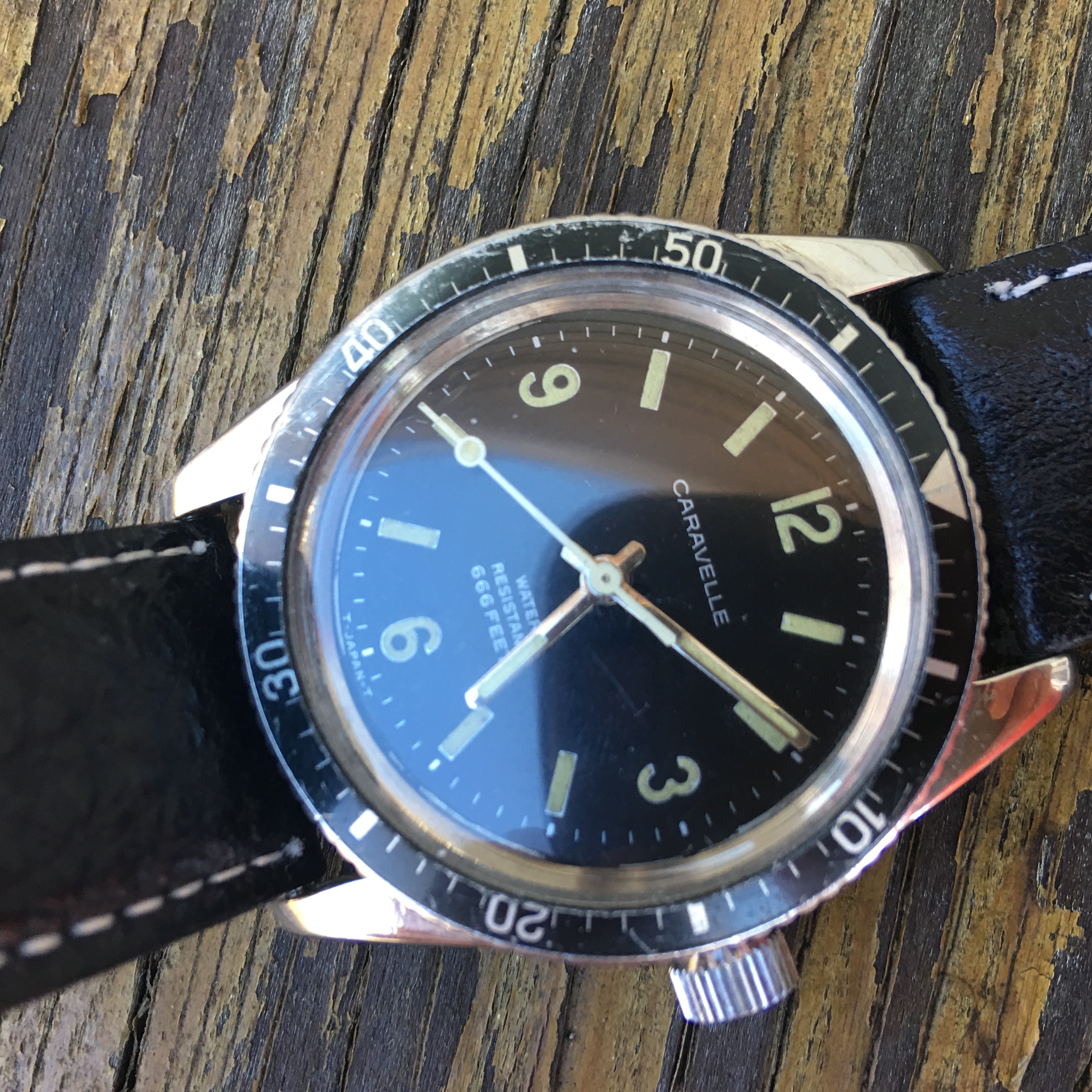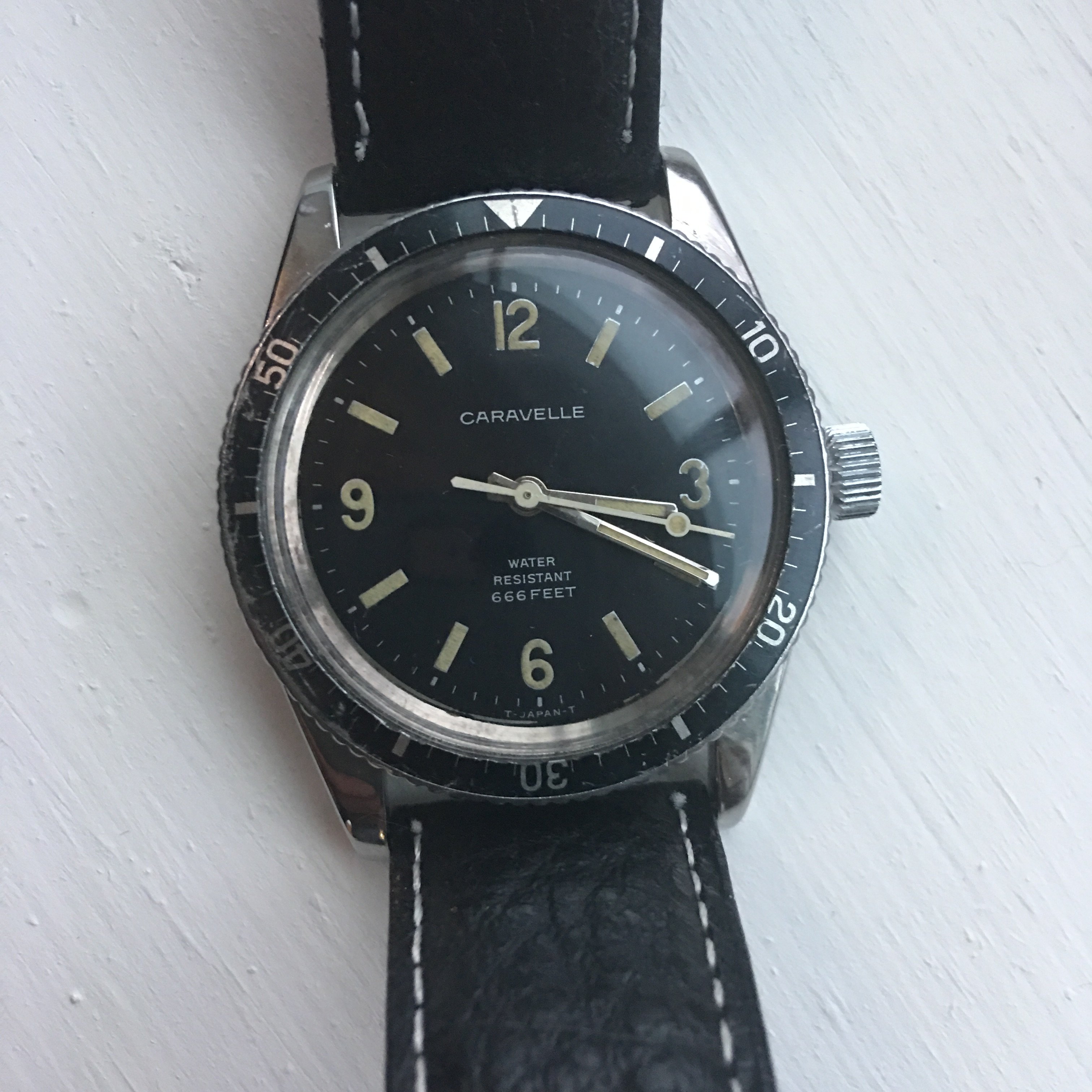 ·For your consideration, a Caravelle Seahunter 666ft 1970’s dive watch. The 666 ft water resistant marking gave it the nickname “devil’s Diver”.