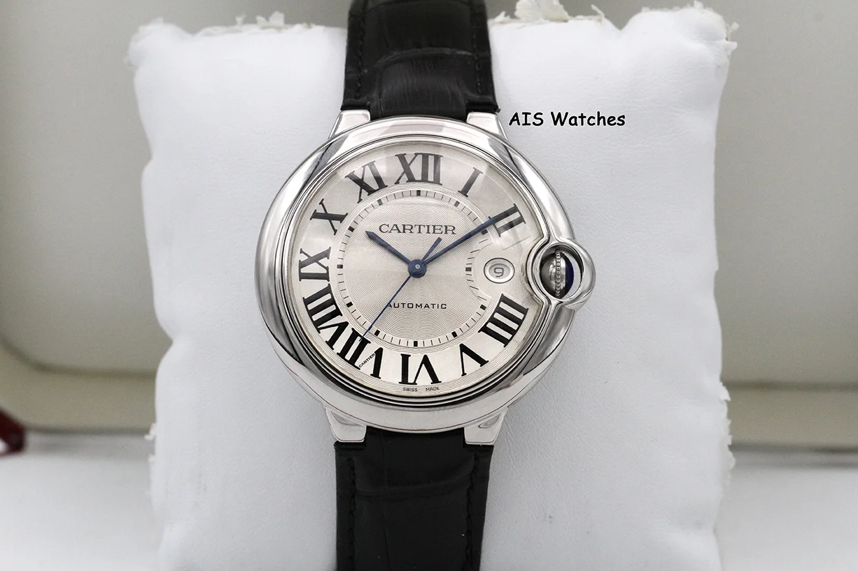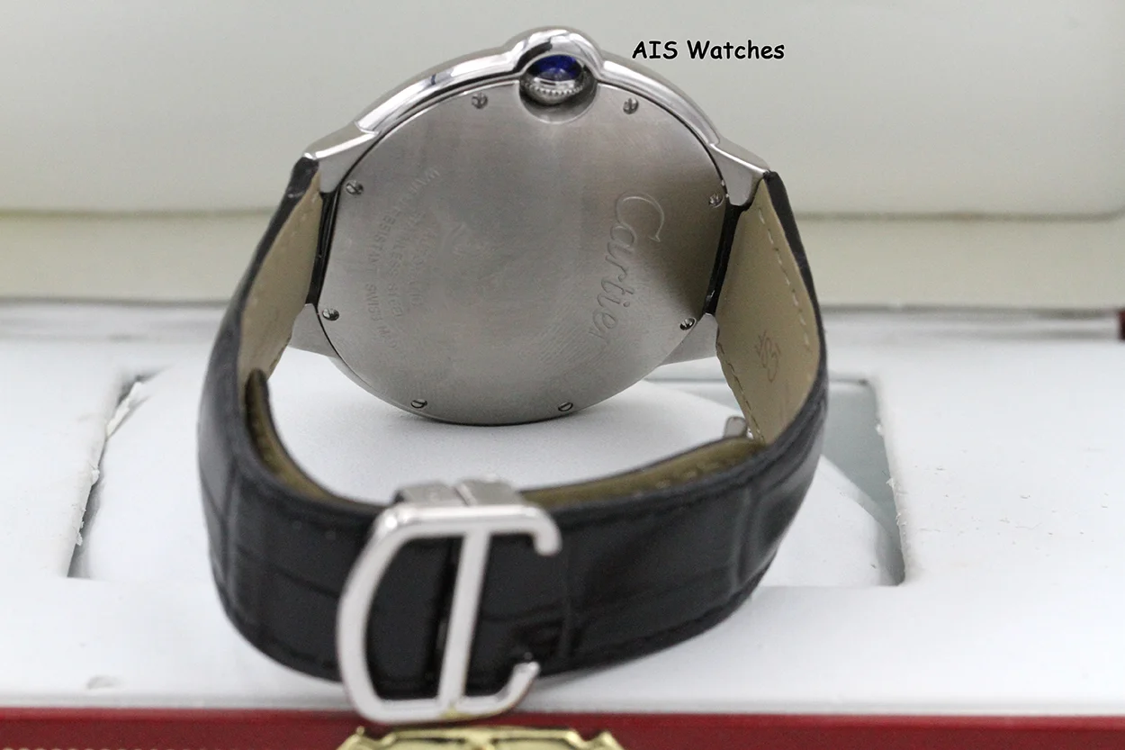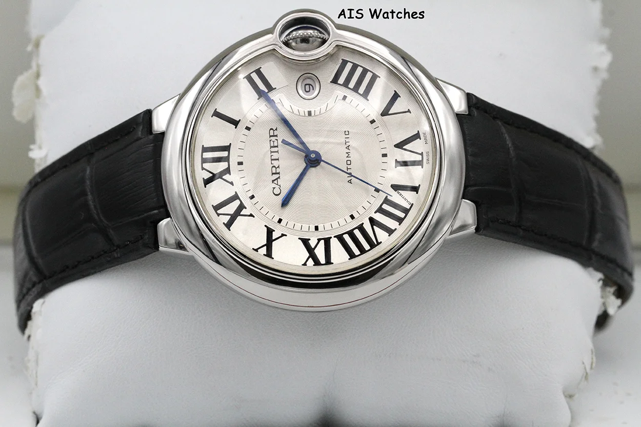 ** Cartier Ballon Blue de Cartier 42MM W69016Z4 Automatic SS Silver Dial / Black Leather Strap